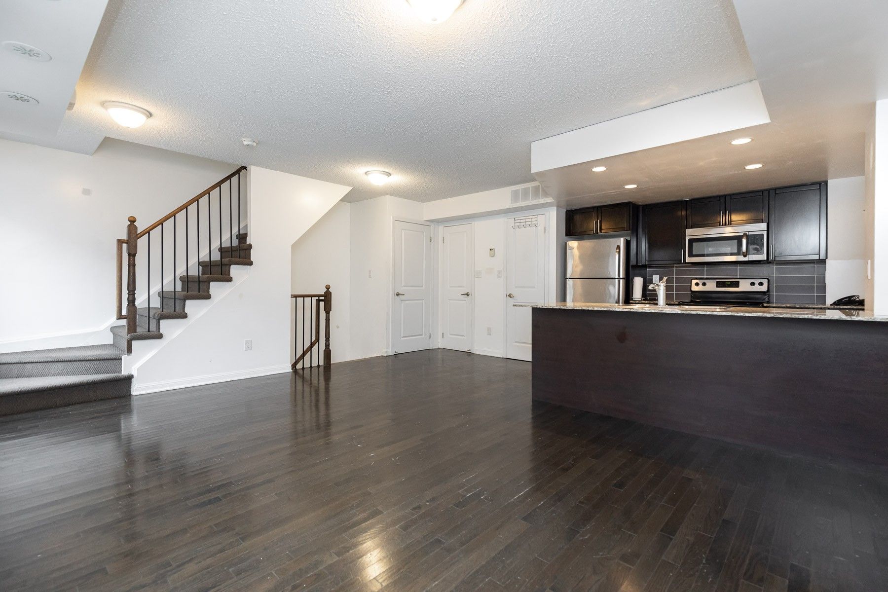 Strong prospects with immediate occupancy may be eligible for promos. Premium townhouse with 3 levels of bright sunny space. Open concept main level with hardwoodunderground parking available & locker are at additional costs. Unit is pet friendly. Floors, powder room & modern kitchen. Walk-in closet in the master bedroom. Third floor with family room, office or bedroom & walkout to huge terrace. (gas line to bbq included). There is a children's and dog park with a splash pad across at walking distance. Young professionals and young families. Schools in the neighborhood. Appliances include: fridge, stove, dishwasher, microware. Central hvac ideal forenjoy a coffee at belzac's or enjoy an evening at the travern irish pub. One bus to the subway.