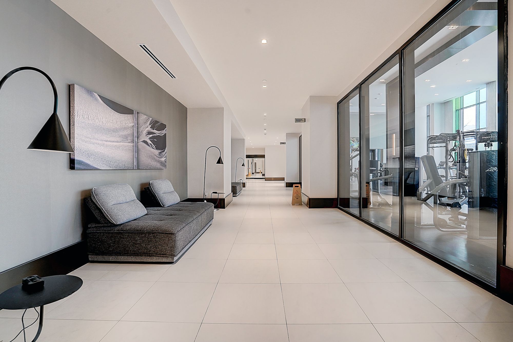 • Features 9-foot ceilings and panoramic skyline views throughout the unit.