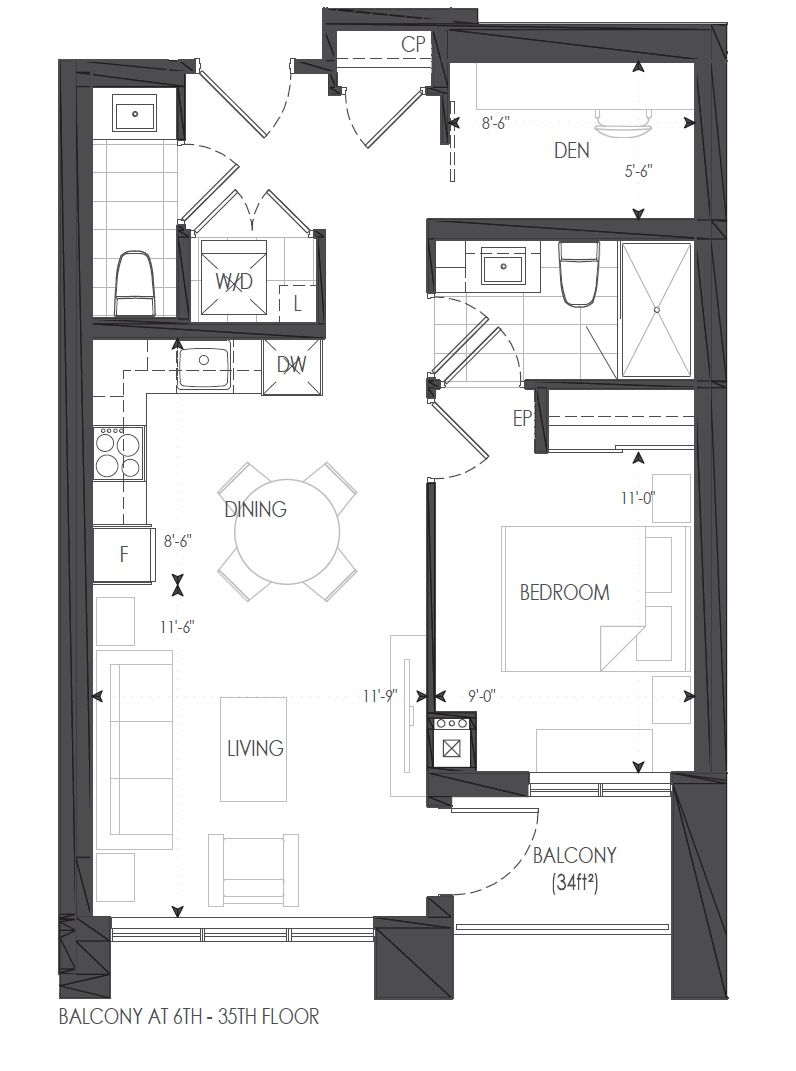 • Modern 1 bedroom plus den with bright, spacious living areas.