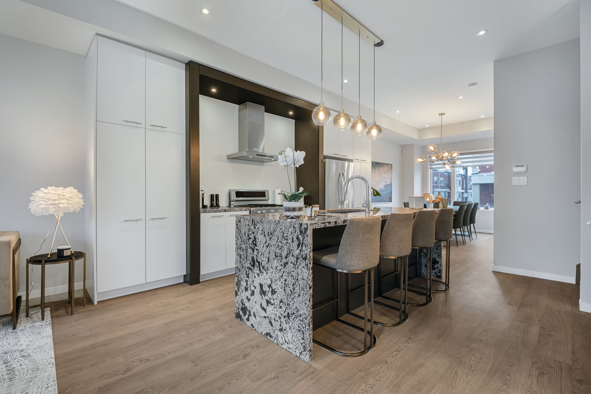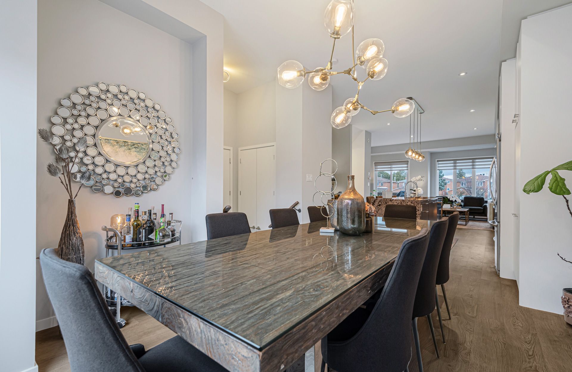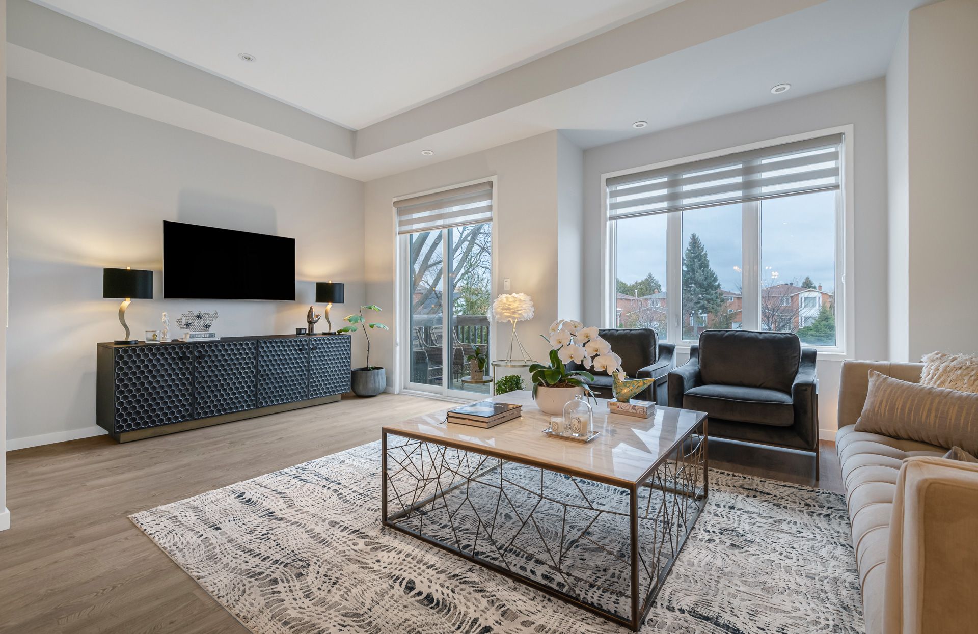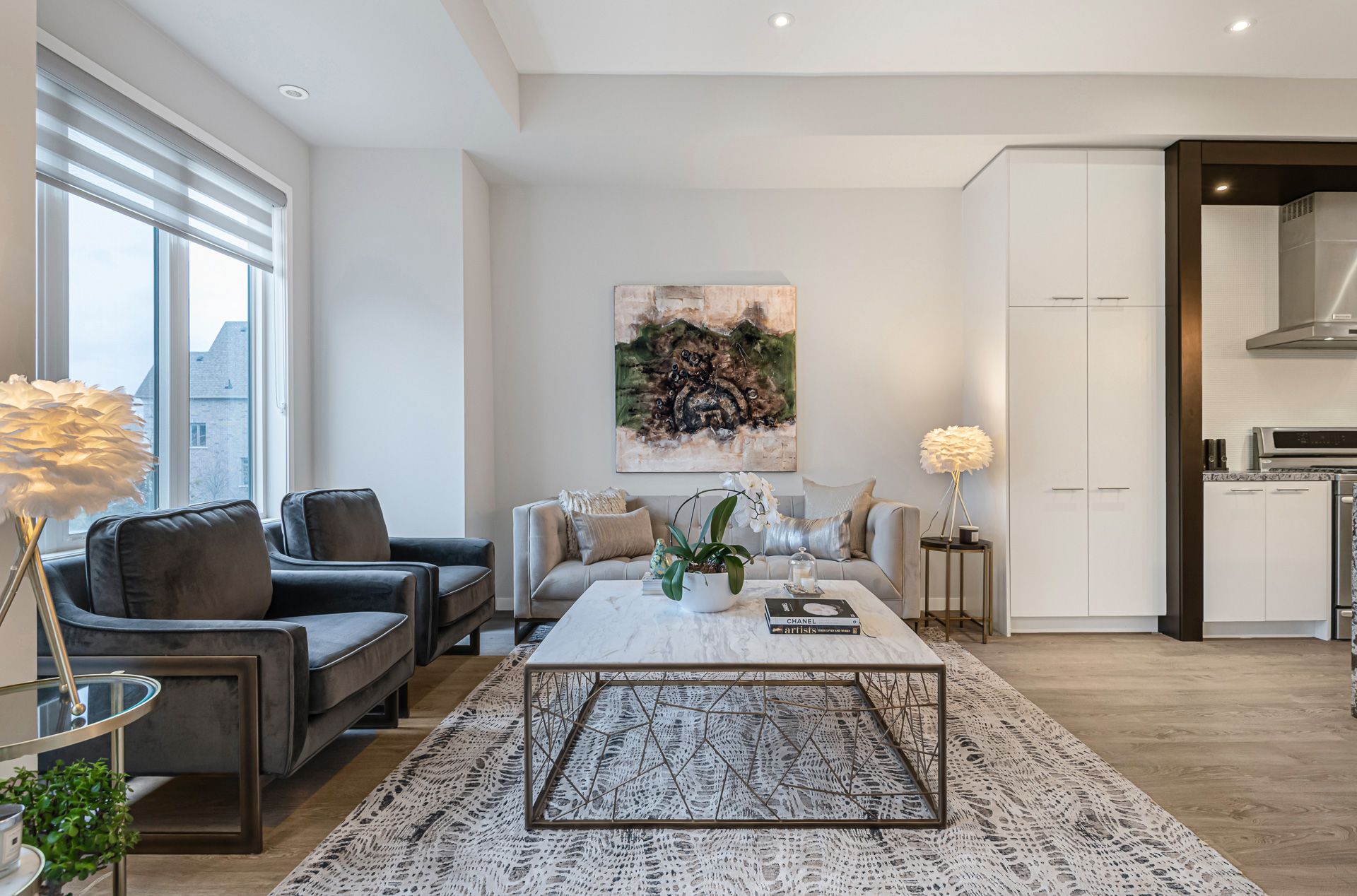 Welcome to this exceptional & modern townhouse in highly-sought urban towns at bayview. Uniquely situated: one of only 6 north-south facing lots in the complex backing onto a parkette, unobstructed view- loads of sun & privacy. Luxurious, tastefully & professionally designed 4-bedroom, 4-bathroom home offers a perfect blend of contemporary style, functional living space, and serene natural surroundings - ideal for families or professionals seeking a vibrant community with peaceful retreat. Prime location- quick & easy access to grocery stores (loblaws, walmart), big box stores (home depot, canadian tire, staples, best buy, restaurants & movie theatre, minutes to hwy 7, 407, 404, go train stn, parks, community centre. Highly rated schools district. Step inside to discover an open-concept main floor with 10' ceilings, abundant natural light, sleek finishes, and quality craftsmanship throughout. The generous living and dining areas provide the perfect backdrop for everyday living and entertaining, flowing seamlessly into a well-appointed kitchen with stylish cabinetry, premium appliances, and plenty of storage. Convenient main floor access to balcony- easy to bbq. Upstairs & lower level feature 9' ceiling with spacious bedrooms & ample storage space with the cherry on top of an upstairs laundry room. The sweet spot: the 4th bedroom & ensuite on the lower level (above grade) with walk out separate entrance(s) would serve well for multiple purposes: in-law/separate suite with income potential, perfect for multi-generational families, a bright & independent home office. One of the unique features of this remarkable home is that it overlooks a beautiful parkette, permanent & unobstructed view- no driveway in front and no house behind-more privacy & plenty of sunlight! Ask for fully furnished option -for true turn key-most furnishings avail for sale. Monthly cef of $251. 66 incl grounds maintenance: snow removal, salting, lawn care, visitor parking.