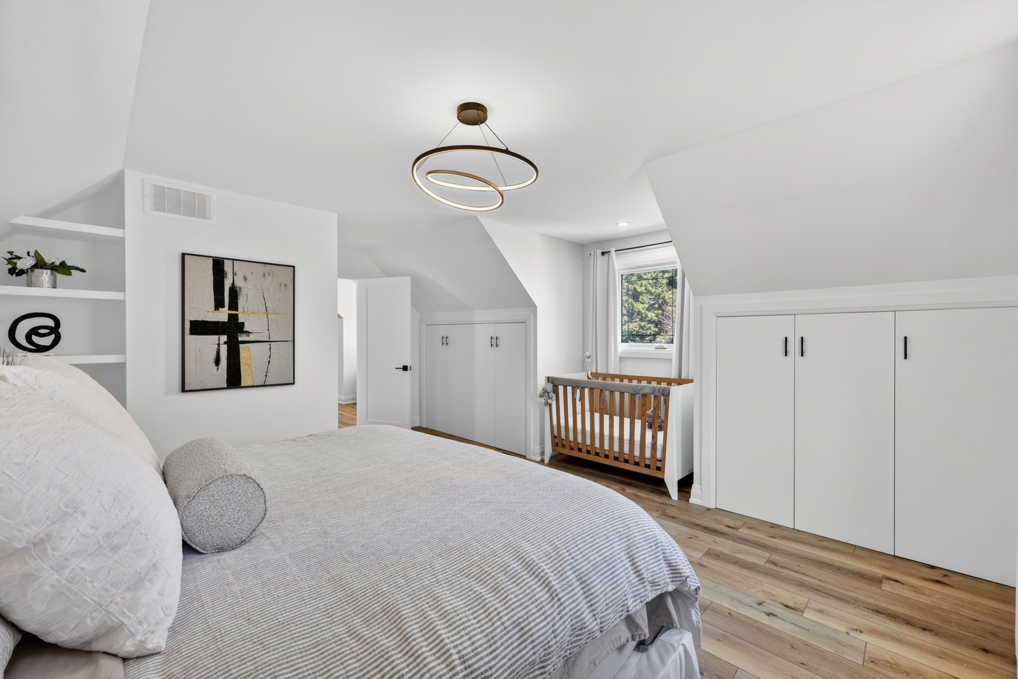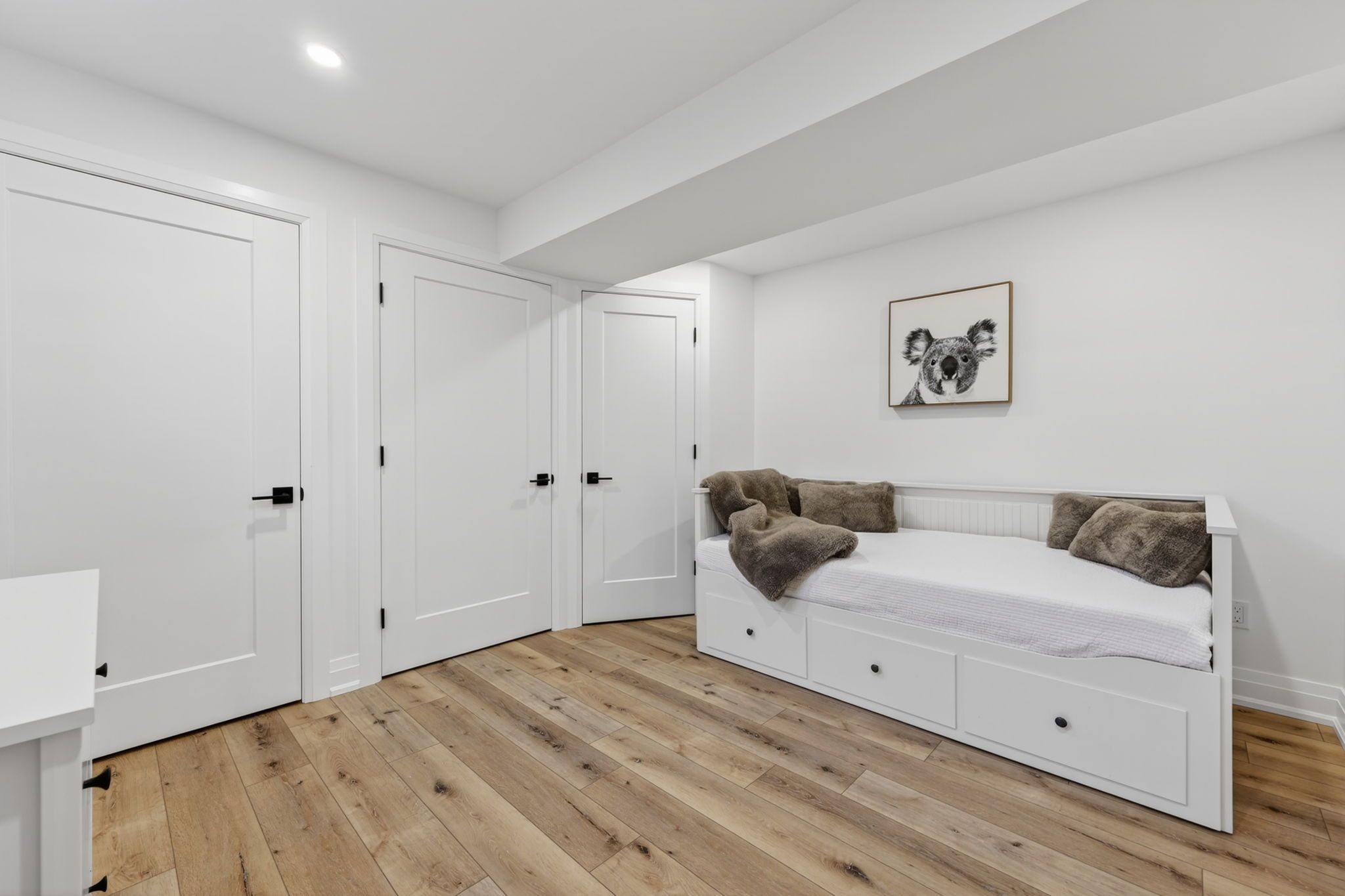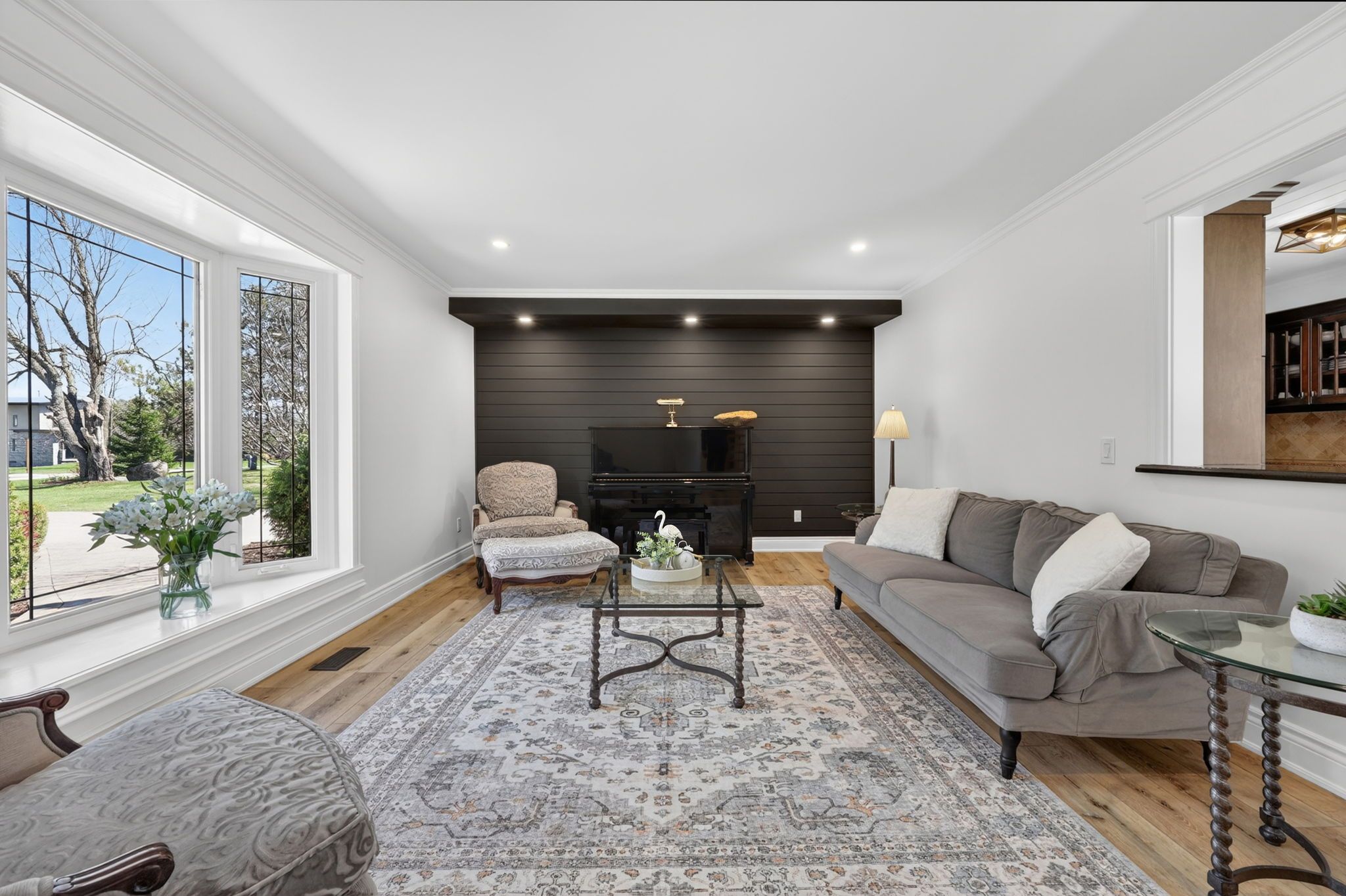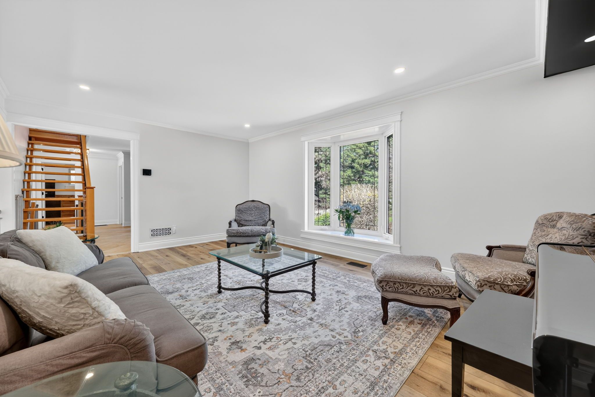 • Versatile basement with extra bedrooms, recreation area, and electric fireplace.
