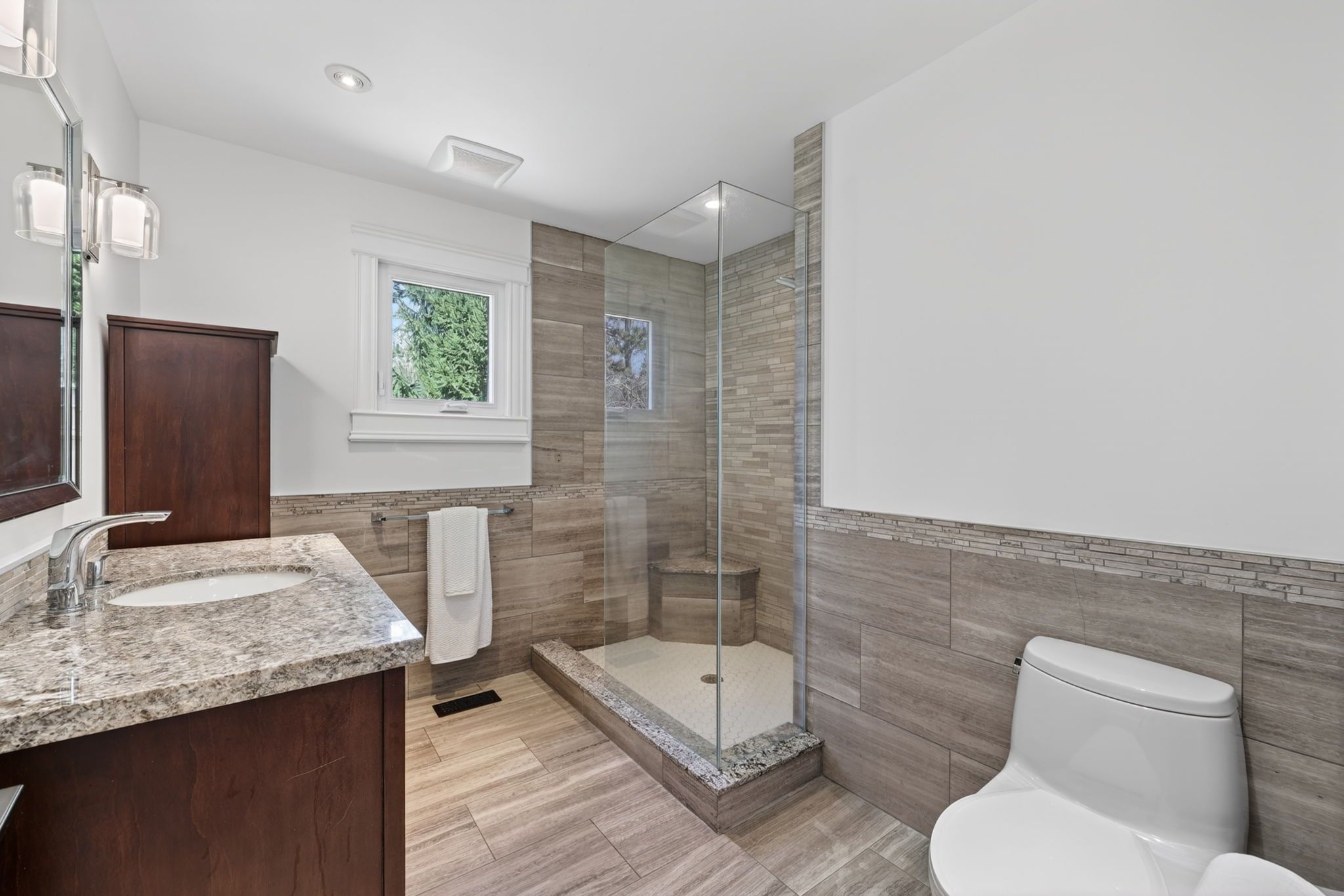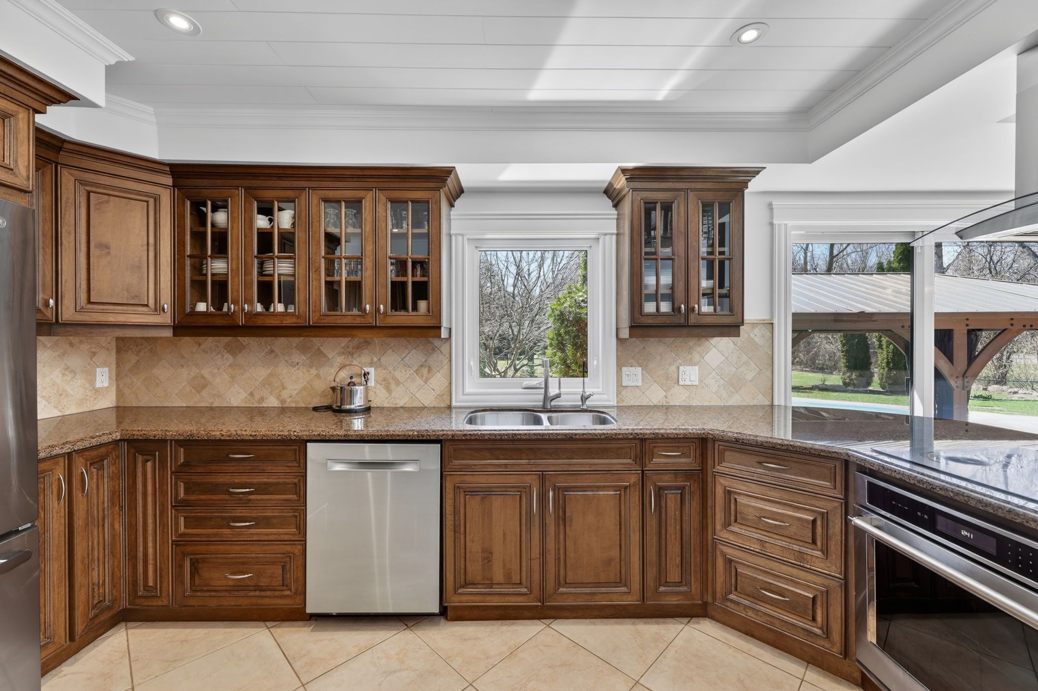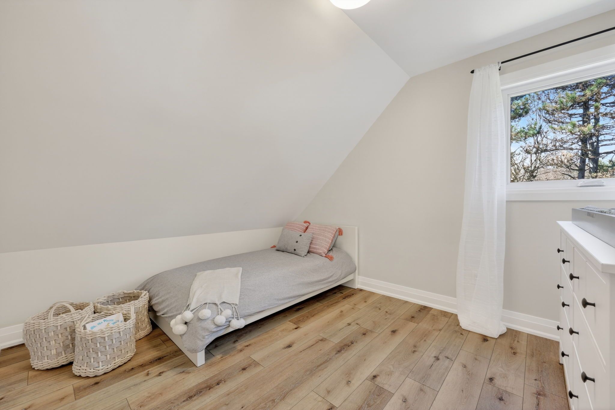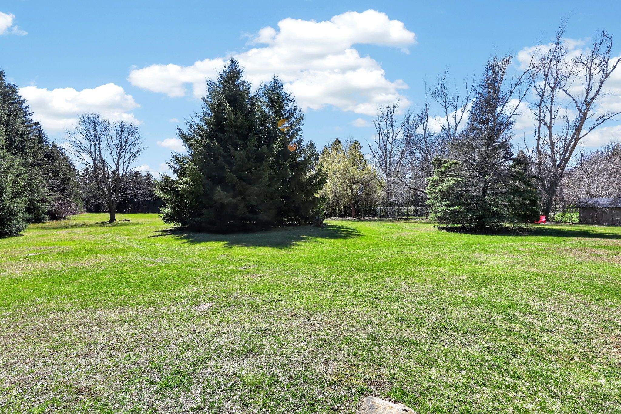 • Spacious yard for kids, basketball court, and walking trail amid mature trees.