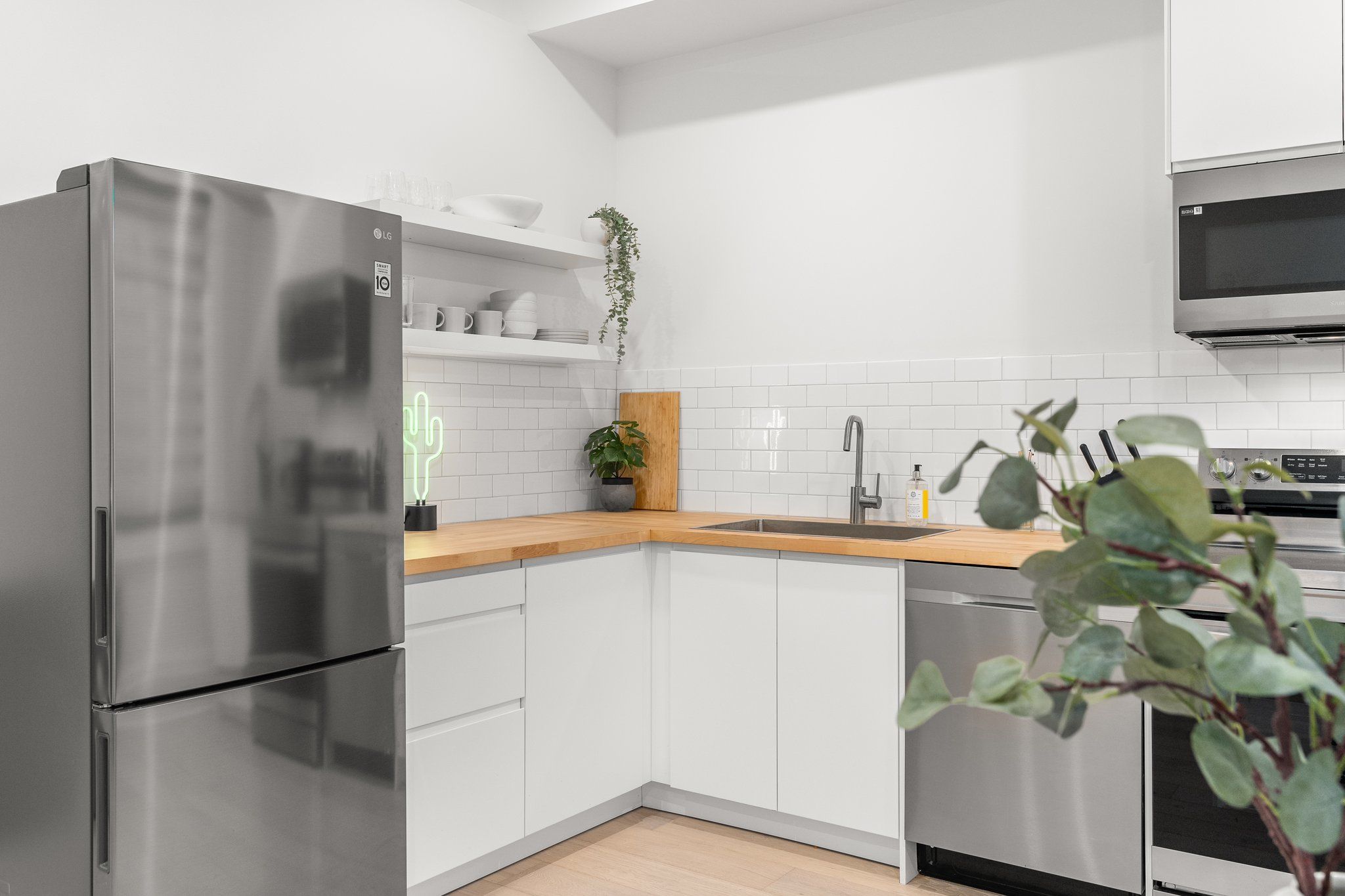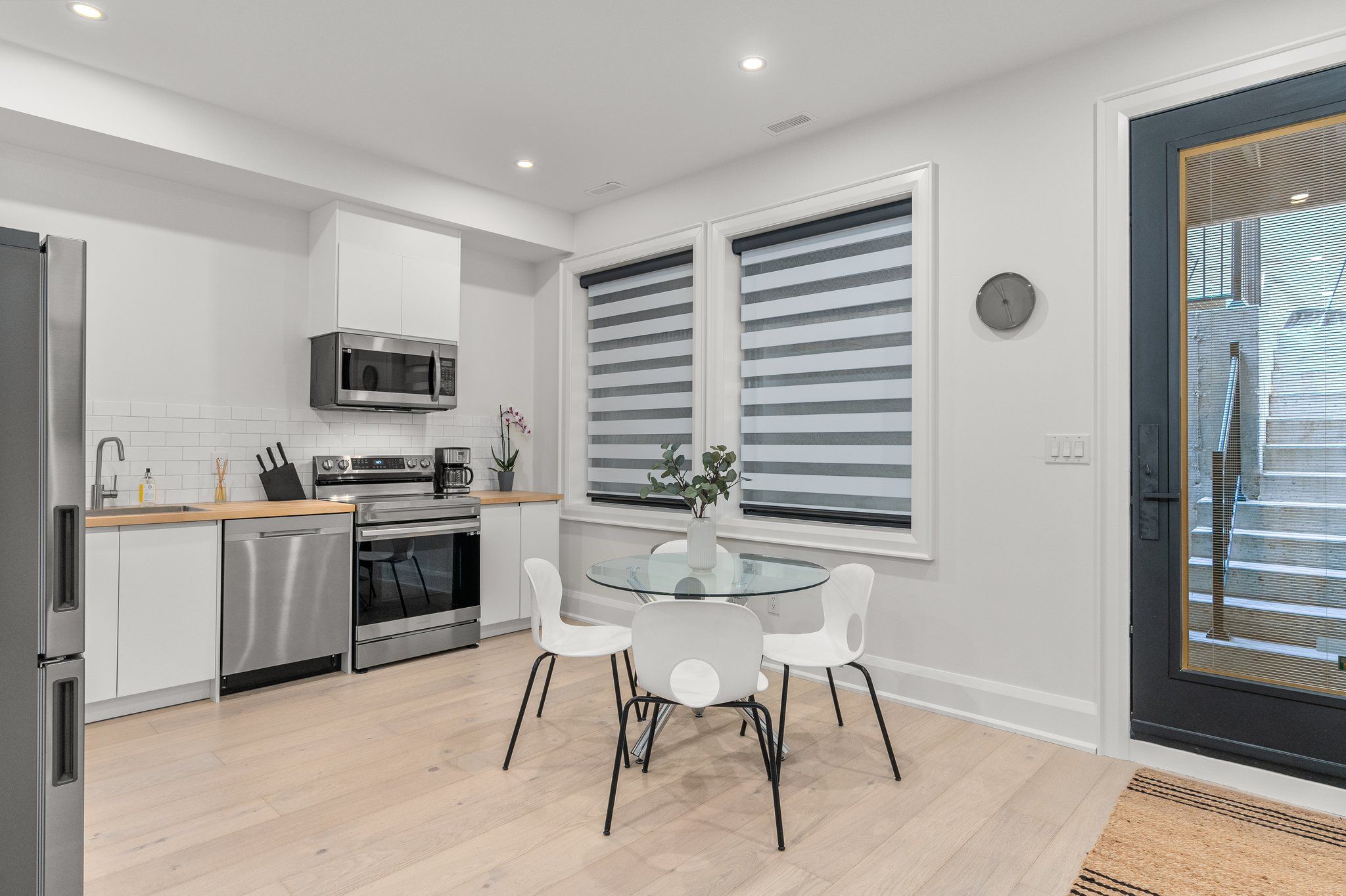 • Modern kitchen with stainless steel appliances for convenient cooking.
