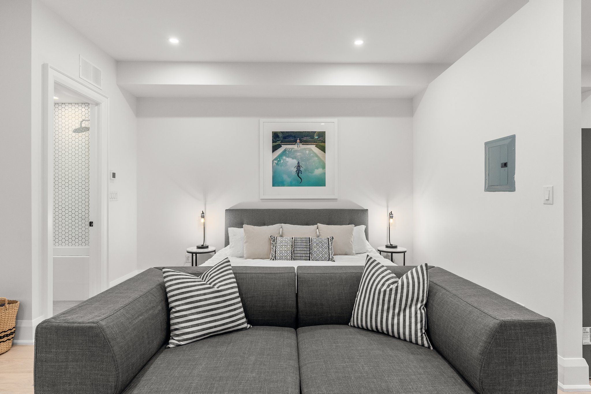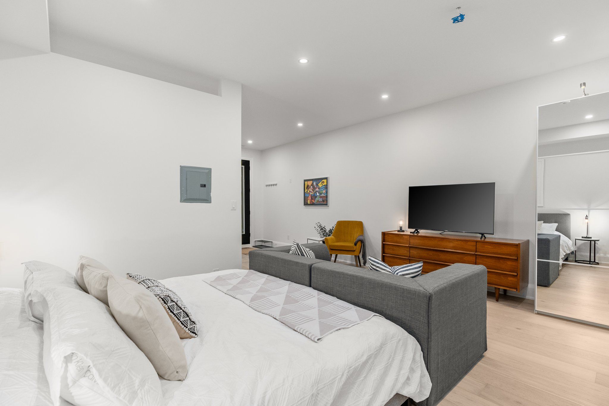 • Spacious bedroom with king size bed and open layout.