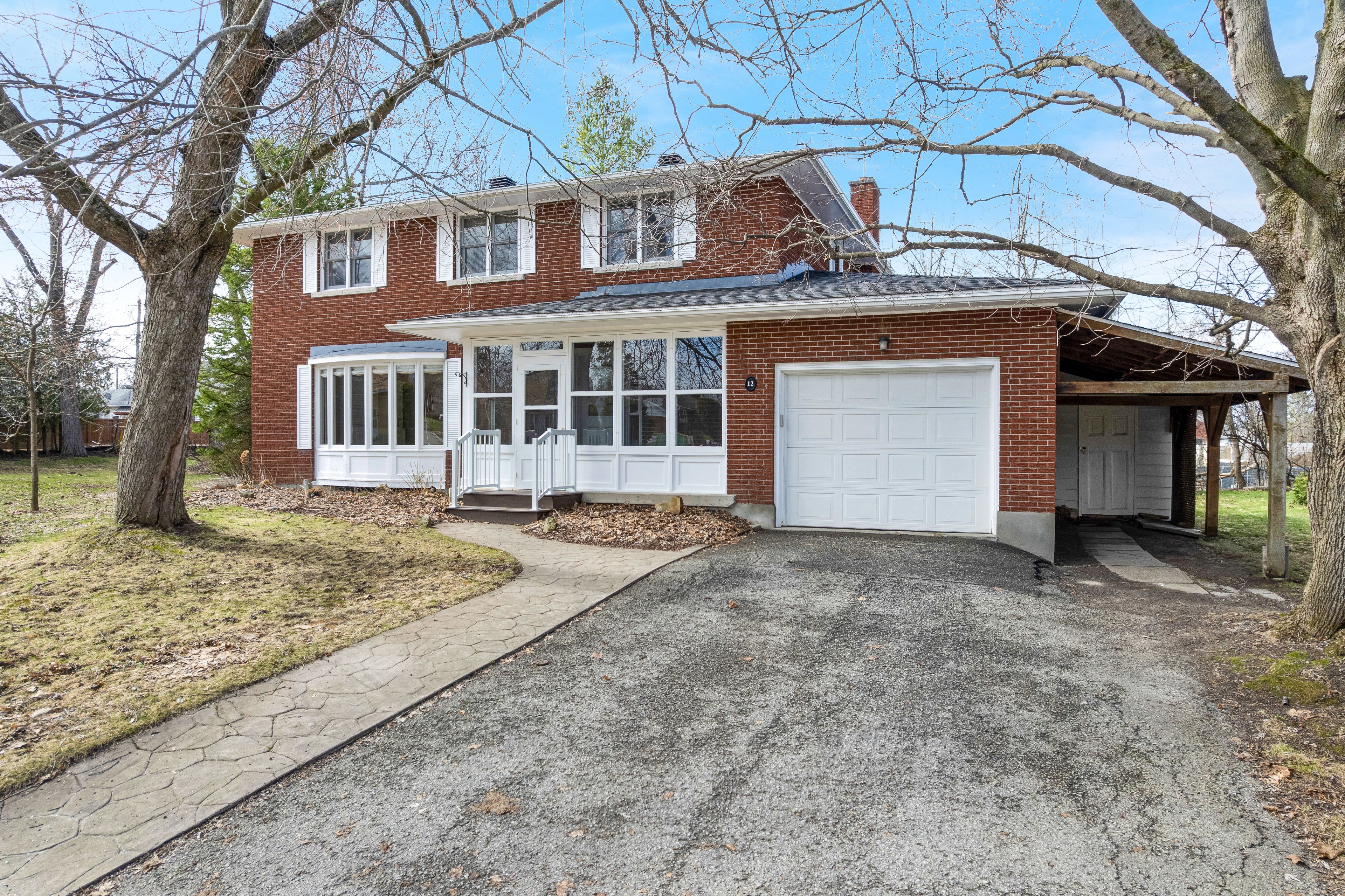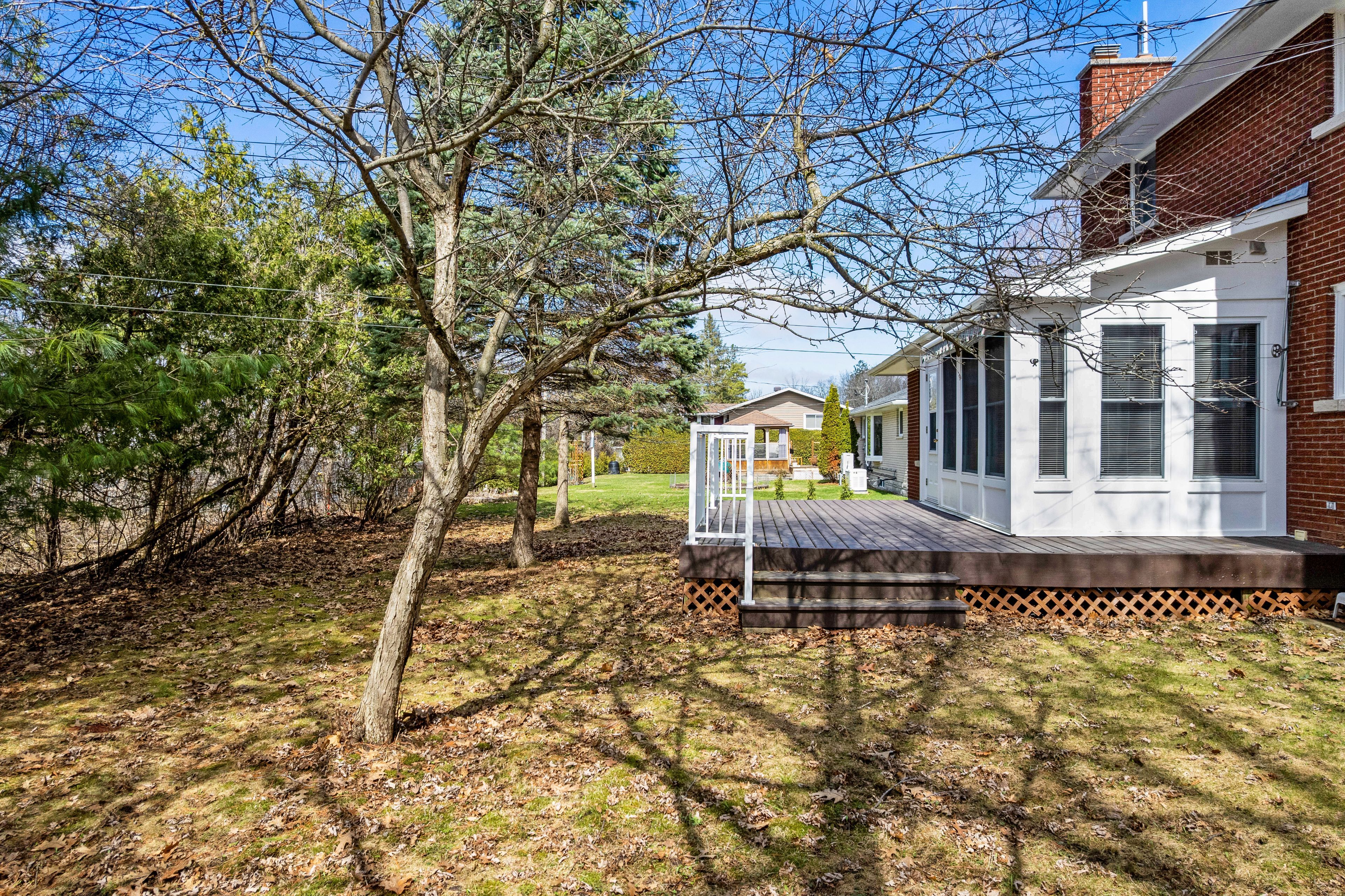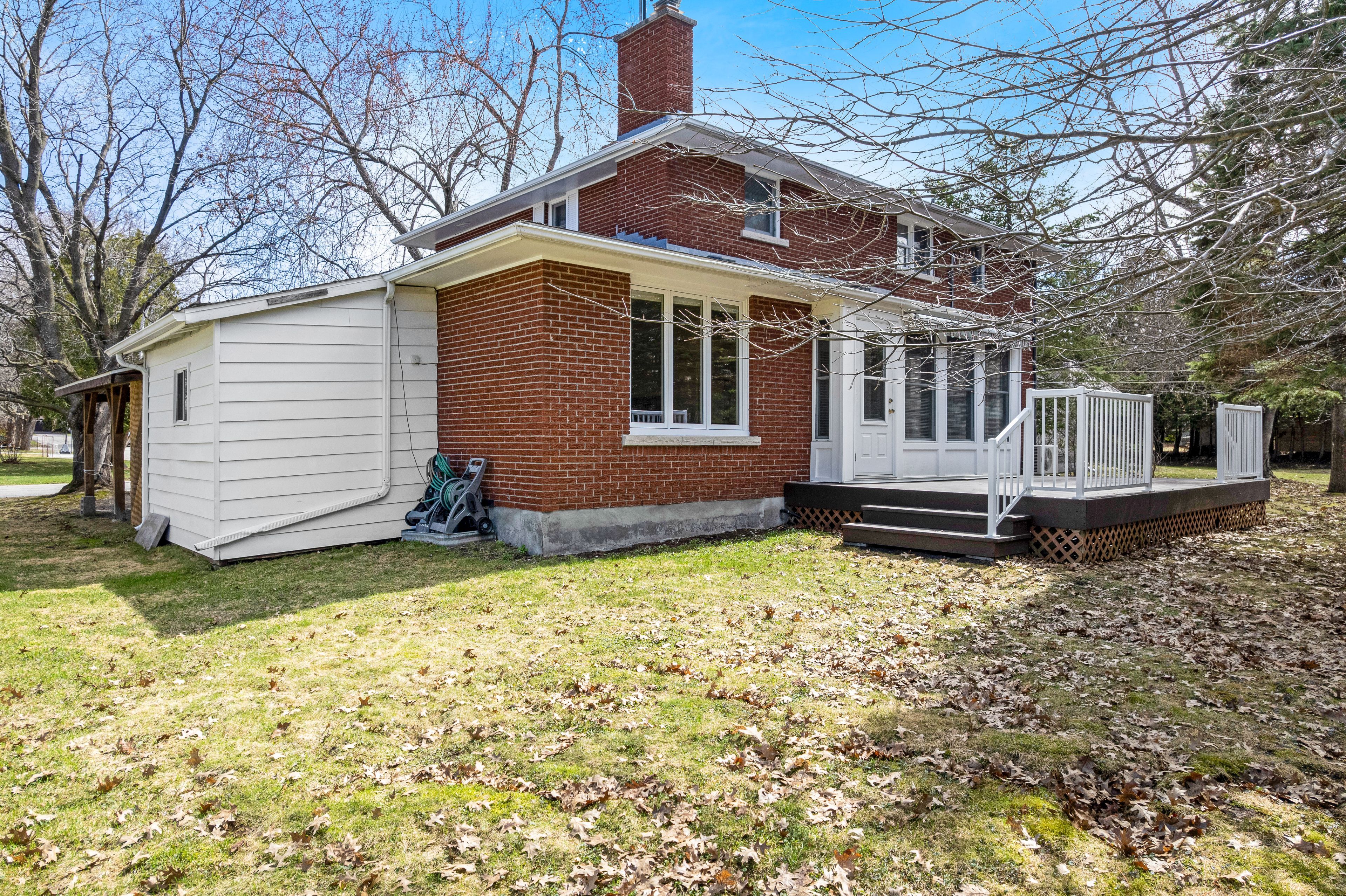 On treed crescent in quiet family neighbourhood of perth, attractive all-brick home built mid-century when big spaces were top priority for accommodating large families. Above graded is 2,527sf of light-filled living space and the finished lower level has 975sf. Throughout this home are generous sized rooms with lots of space for everyone; upstairs on second floor are four bedrooms plus, lower level has two more bedrooms and bathroom. Welcoming you home is lovely classic enclosed porch, perfect for hanging plants and lounging away afternoons. The expansive living and dining rooms provide great spaces for gatherings and entertaining. Family room has large window overlooking the backyard and a fireplace with gas insert bordered by built-in shelves. Bright white kitchen offers ample prep areas, storage cupboards and peninsula-breakfast bar. Adjoining the kitchen is dinette area. Patio doors open to the cheerful sunroom with walls of windows and door to deck that overlooks lovely landscaped yard with mature trees. The main floor also has powder room. Upstairs, primary suite with walk-in closet and three-piece ensuite. Three more comfortable bedrooms, with large closets. The five-piece bathroom includes convenient two-sink vanity. Lower level rec room, two more bedrooms and three-piece bathroom. Lower level has workshop for family projects and also has well-equipped laundry room with sink, folding counter and shelving. Attached single garage features inside entry, yard door and attached car port. Home has efficient hot water on demand as part of the gas-fired boiler system that heats water for the home's wall radiant heaters. Included is auto generator that can power all the home. On the electrical panel is surge protector for the whole home. Great location, near all amenities with school bus going right by the home. Or, 5 min walk to public school and 7 min walk to high school.