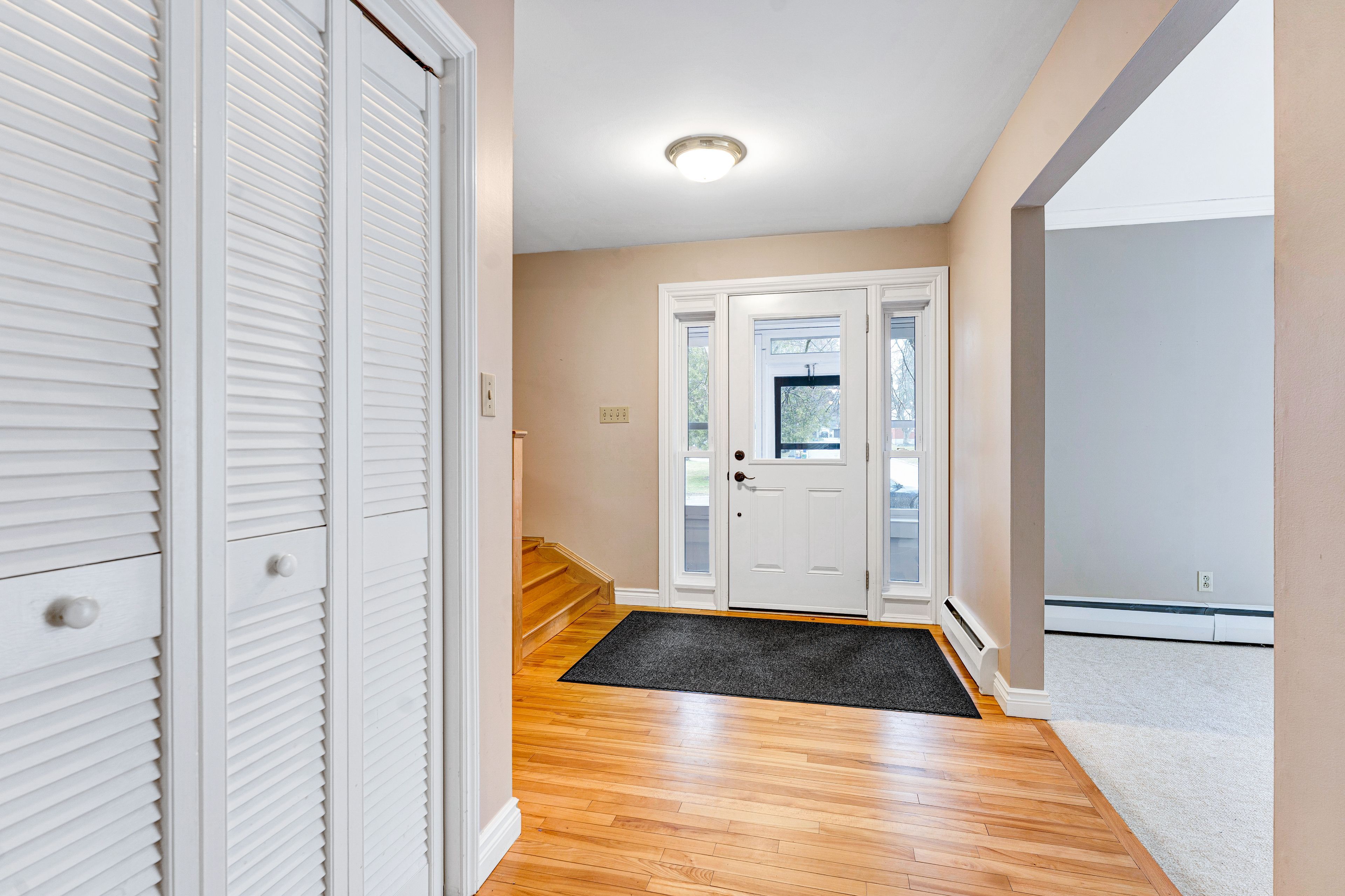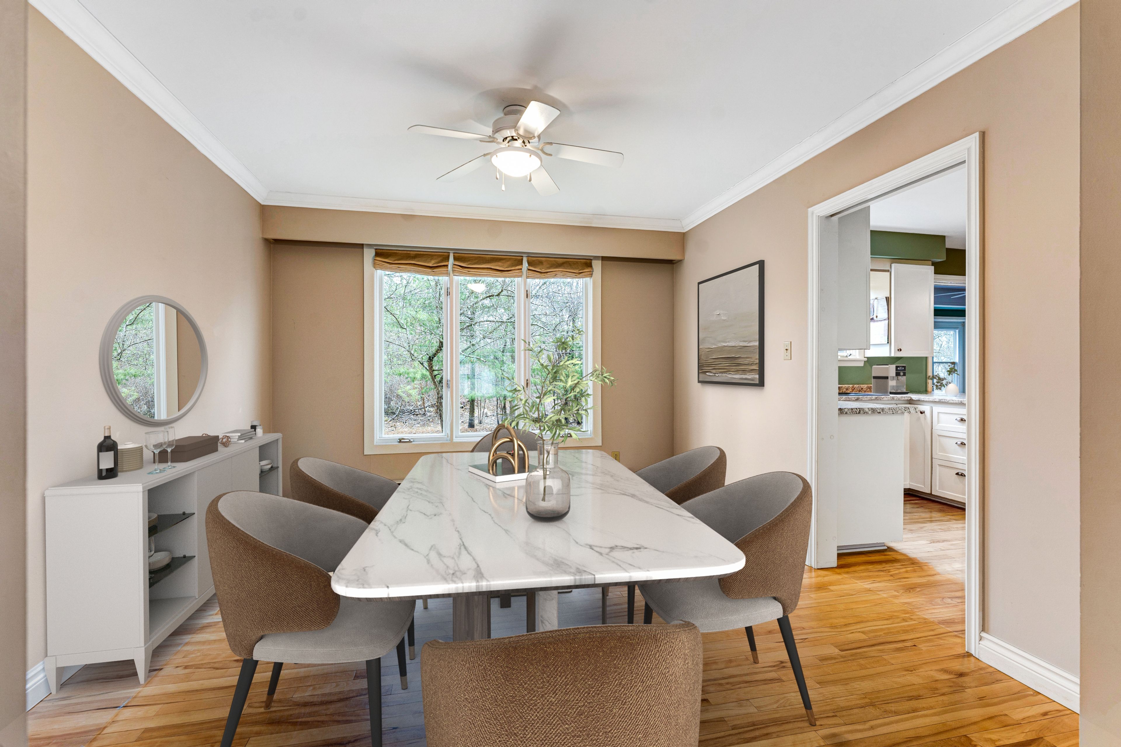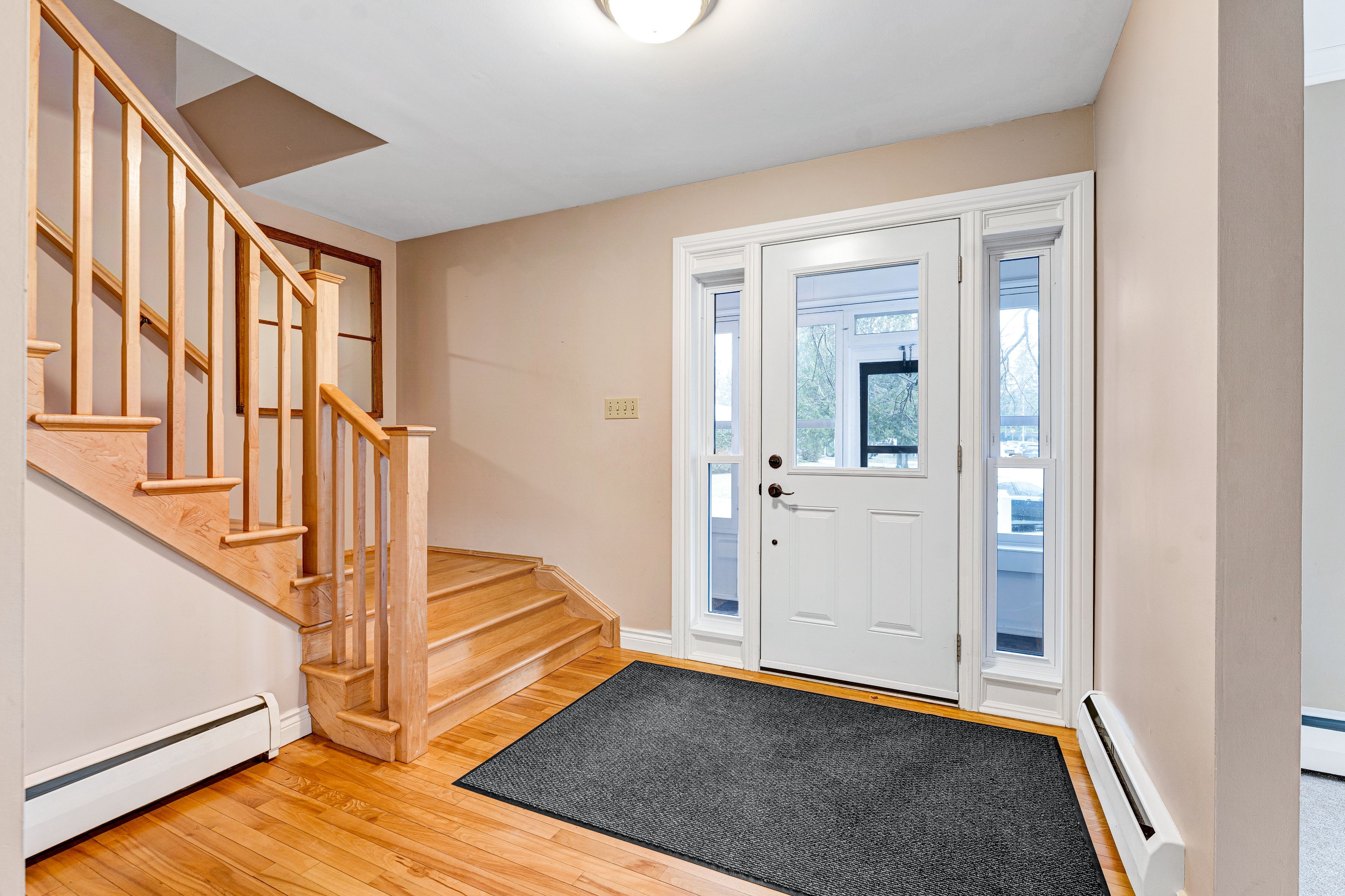 On treed crescent in quiet family neighbourhood of perth, attractive all-brick home built mid-century when big spaces were top priority for accommodating large families. Above graded is 2,527sf of light-filled living space and the finished lower level has 975sf. Throughout this home are generous sized rooms with lots of space for everyone; upstairs on second floor are four bedrooms plus, lower level has two more bedrooms and bathroom. Welcoming you home is lovely classic enclosed porch, perfect for hanging plants and lounging away afternoons. The expansive living and dining rooms provide great spaces for gatherings and entertaining. Family room has large window overlooking the backyard and a fireplace with gas insert bordered by built-in shelves. Bright white kitchen offers ample prep areas, storage cupboards and peninsula-breakfast bar. Adjoining the kitchen is dinette area. Patio doors open to the cheerful sunroom with walls of windows and door to deck that overlooks lovely landscaped yard with mature trees. The main floor also has powder room. Upstairs, primary suite with walk-in closet and three-piece ensuite. Three more comfortable bedrooms, with large closets. The five-piece bathroom includes convenient two-sink vanity. Lower level rec room, two more bedrooms and three-piece bathroom. Lower level has workshop for family projects and also has well-equipped laundry room with sink, folding counter and shelving. Attached single garage features inside entry, yard door and attached car port. Home has efficient hot water on demand as part of the gas-fired boiler system that heats water for the home's wall radiant heaters. Included is auto generator that can power all the home. On the electrical panel is surge protector for the whole home. Great location, near all amenities with school bus going right by the home. Or, 5 min walk to public school and 7 min walk to high school.