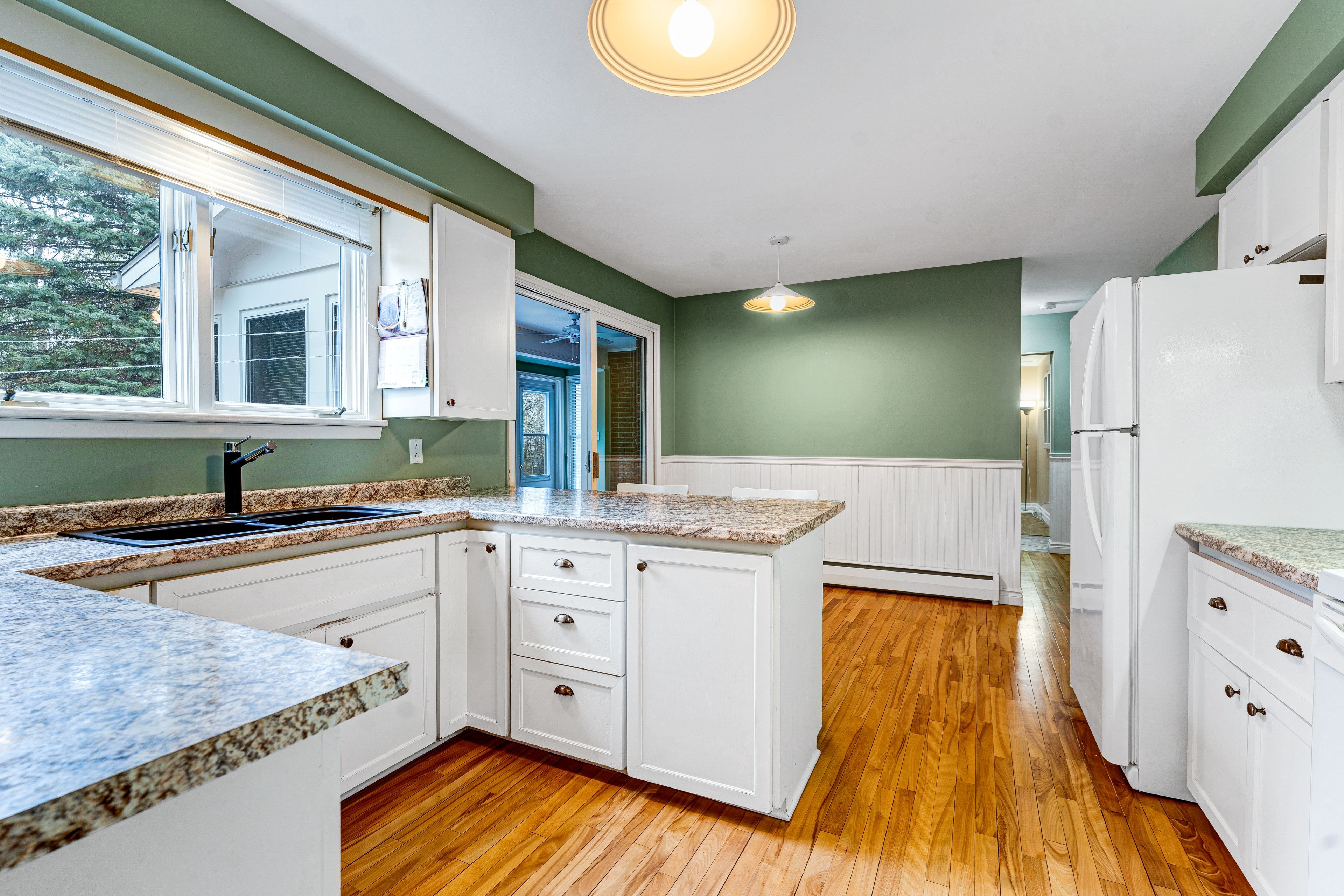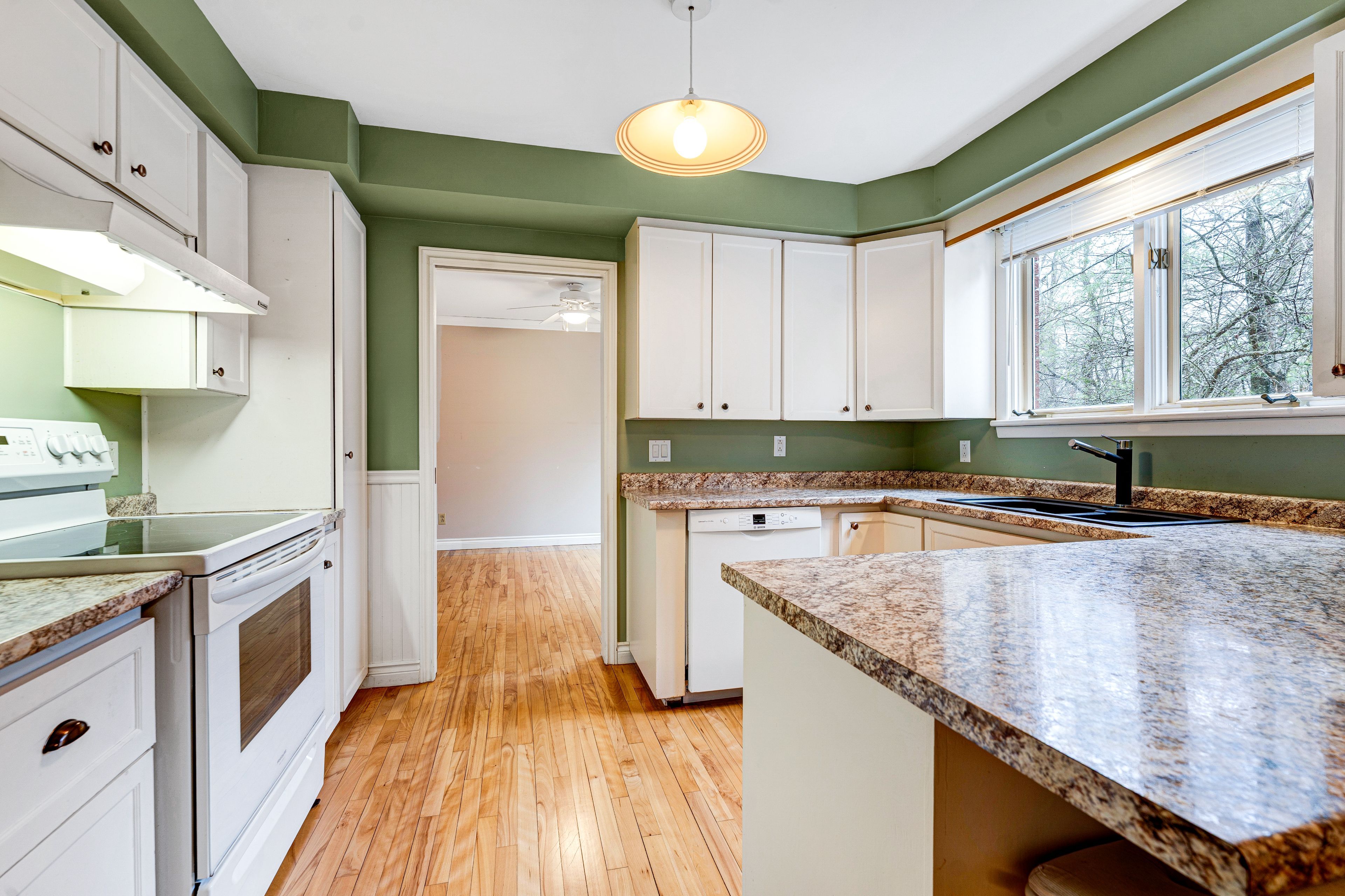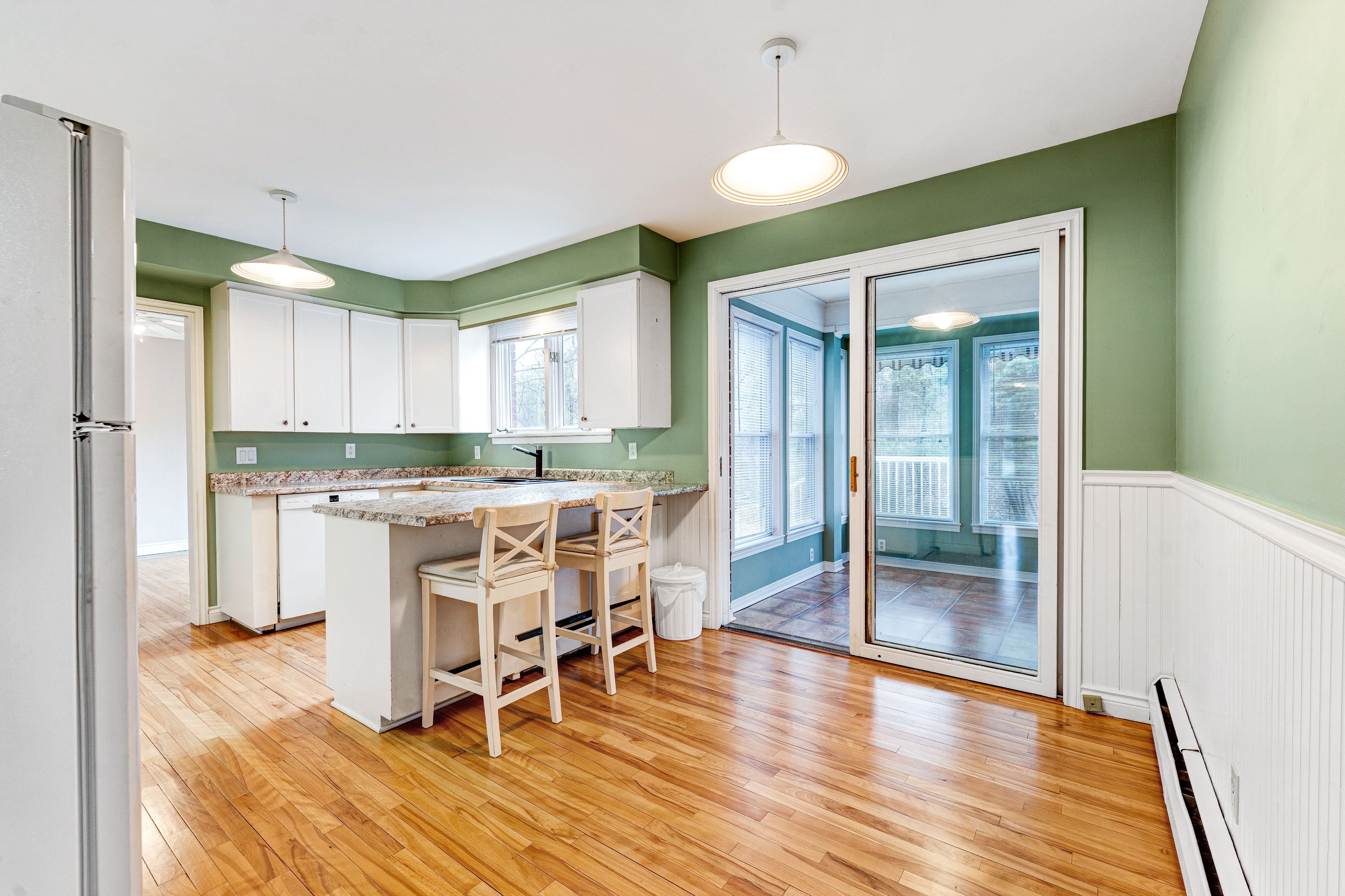 • Bright kitchen with ample prep space and adjoining sunroom overlooking landscaped yard.
