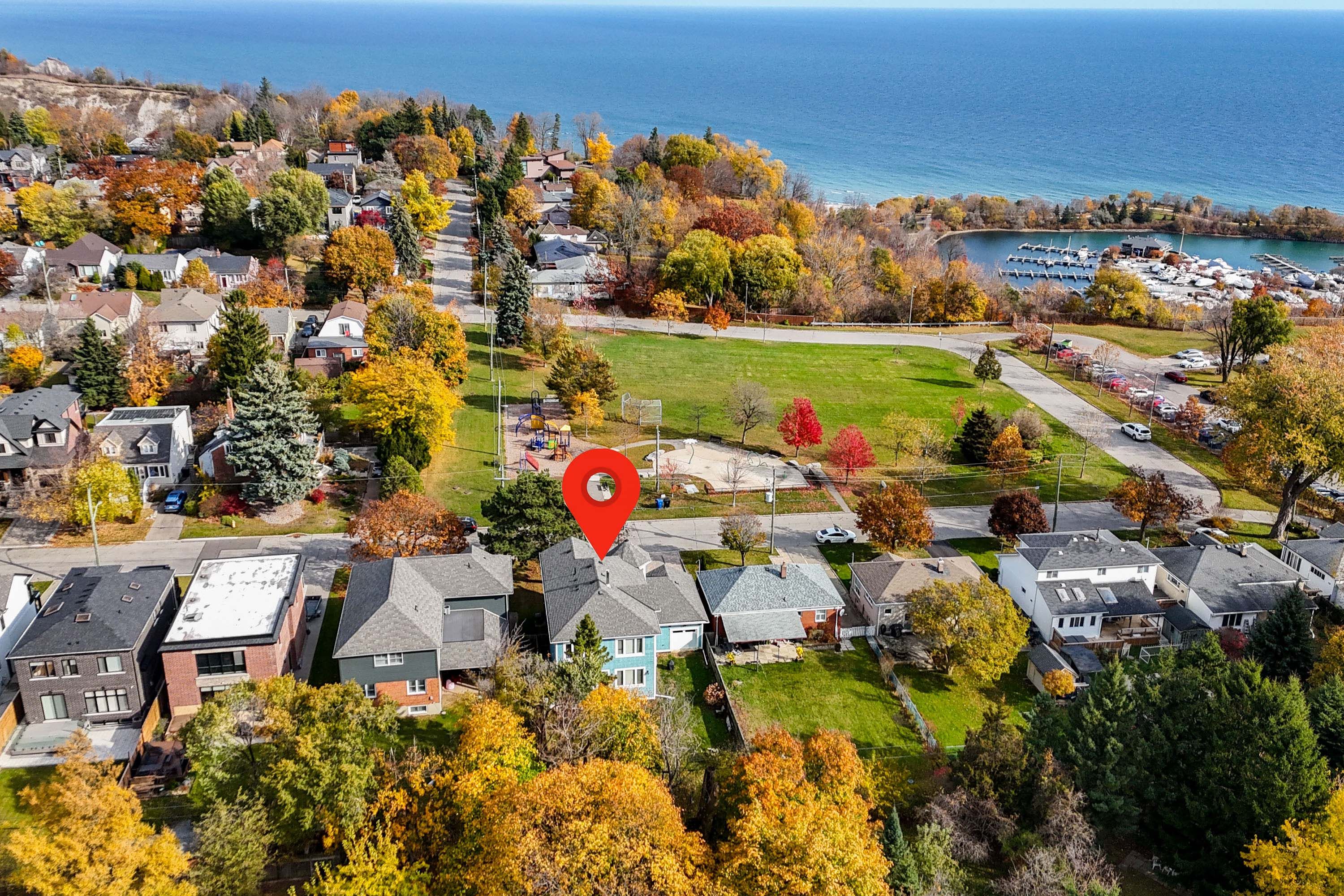 Welcome to 12 gradwell dr, a true one of a kind custom built generational family home with outstanding architectural design nestled south of kingston rd in the heart of the bluffs that boasts front views of lake ontario. This 4+1 bedroom, 3000 sq ft sun filled residence offers the perfect balance of luxury living, convenience and lakeside charm. Open concept layout features, 9' ceilings, custom mill work, hardwood floors and custom high end finishes throughout. At the center of the home, is an elegant chef's kitchen with granite counters, a centerpiece masonry stove with wood burning pizza oven, dedicated hot tea station and showpiece gas range la cornue imported from france. The spacious center island & breakfast nook connecting the piano/family room serve as the main gathering of the home, while the formal dining room, office, offer space for various activities. The mudroom has built-in shelves and benches with access to the tandem garage. The upper level includes the principle suite, which has a walk-in closet with custom b/i shelving, 5-piece ensuite and views of the lake. The turret sitting room provides a quiet area for relaxation and reading also with lake views. There are three additional large bedrooms equipped with walk-in closets or double closets. The lower level offers a roomy recreation area, games space, guest suite, a 3-pc bathroom, and ample storage. The generous backyard is fitted with a gas rough in for an outdoor kitchen and suitable for a pool and summer outdoor entertainment. Across the street is totts park playground and splash pad and walking distance from bluffer park making it well-suited for lakeside living. Close to lake views, nature trails, marina, beaches, great schools including st. Agatha cs, fairmount ps, cardinal newman catholic hs, r. H king academy hs, ttc, go, shops, restaurants, community centers & more!