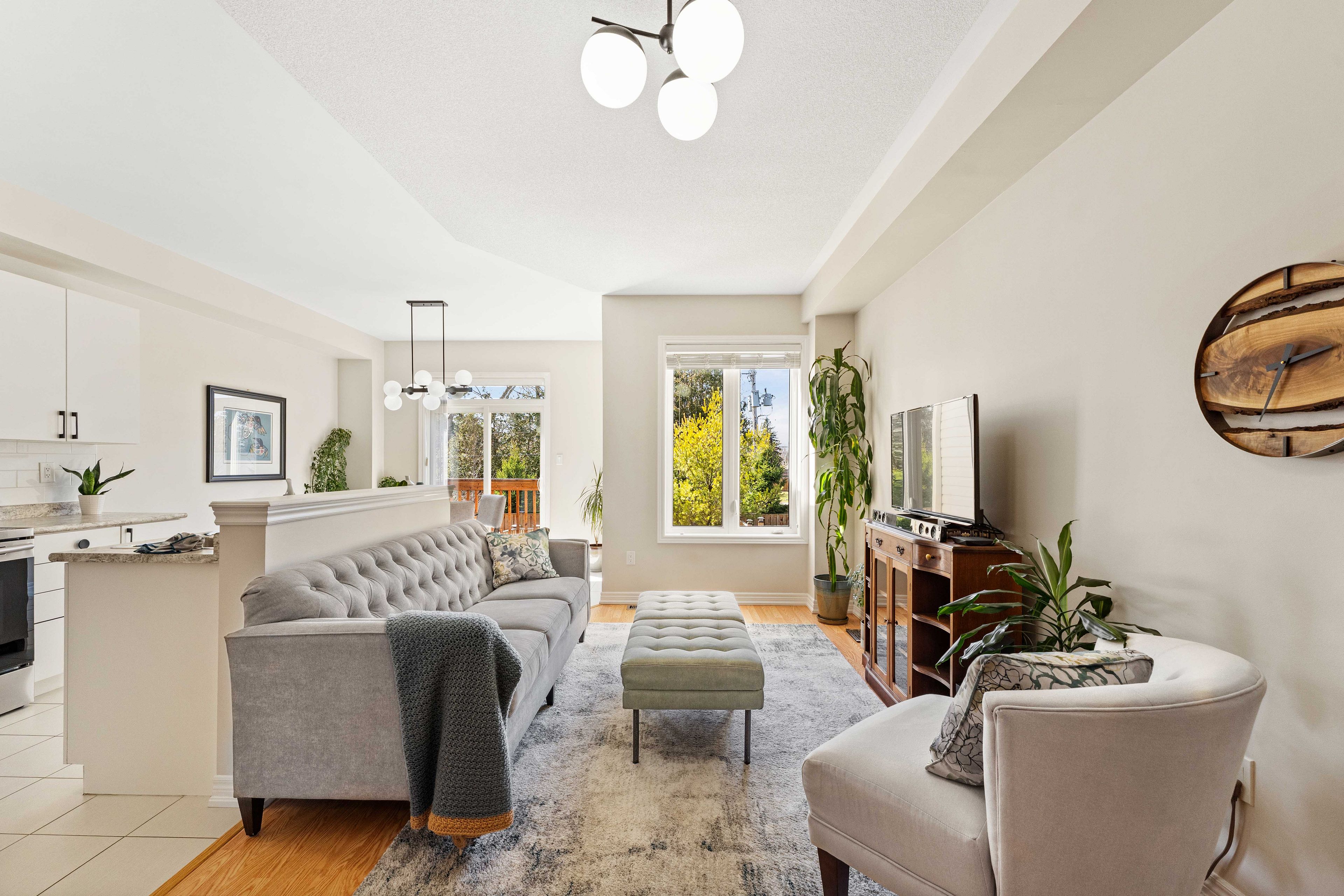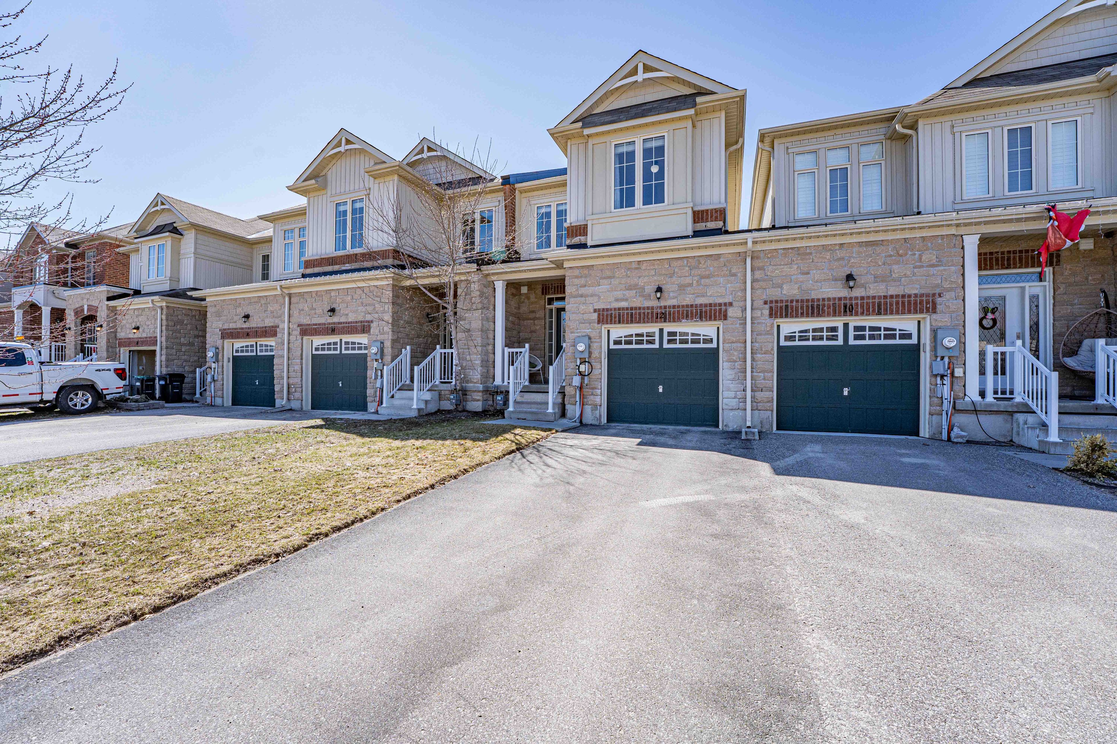 Welcome to 12 greenwood dr, angus. This stunning, move-in ready townhome offers over 1,500 sq ft of bright, functional living space. Perfectly situated for an easy commute to base borden, alliston, and barrie. Main level. The open-concept floor plan features soaring 9 ft ceilings and is flooded with natural light. This level boasts beautiful flooring, updated light fixtures (2026), and a seamless inside entry from the garage. The modern eat-in kitchen is designed for everyday living, offering ample cabinetry, generous counter space, and a walkout to the private deck and yard. The property is complete with inground sprinklers for effortless maintenance. Upper level. The second floor features the highly sought-after convenience of 2nd-floor laundry. The spacious primary suite serves as a private retreat with a large walk-in closet and a full ensuite bathroom featuring a soaker tub and separate shower. Two additional well-sized bedrooms offer great flexibility for family, guests, or a dedicated home office. Lower level and extras. The full, unspoiled basement includes a 100-amp electrical panel and offers endless potential for a home gym or extra living space. The hrv, furnace and a/c system was professionally cleaned and serviced at the start of april 2026. Ideally located within walking distance to local parks and schools. This is turn-key living in a prime simcoe county location.