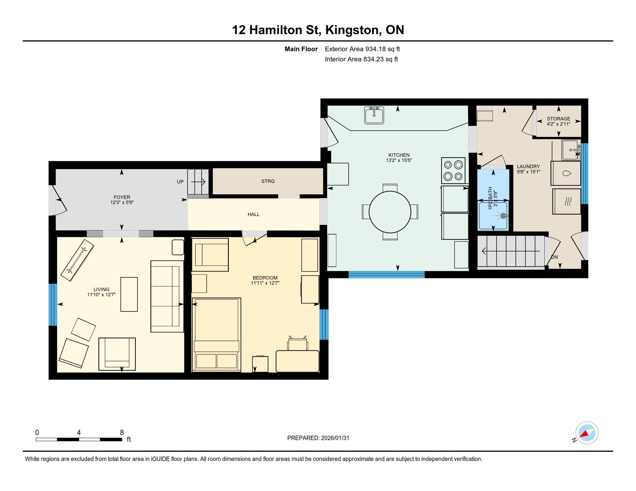 • Main floor layout includes living room, kitchen, and a bedroom.