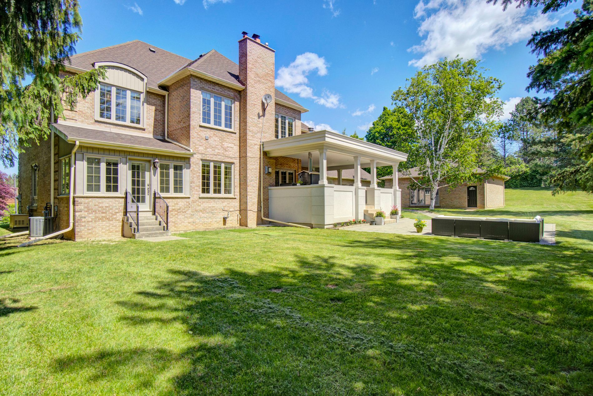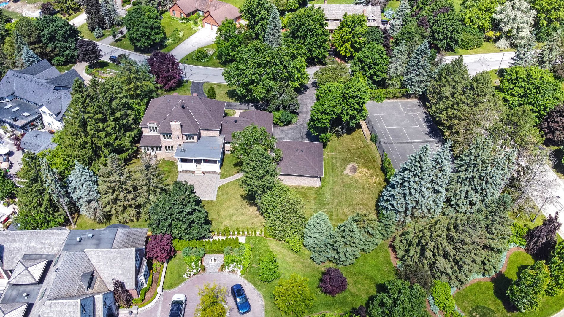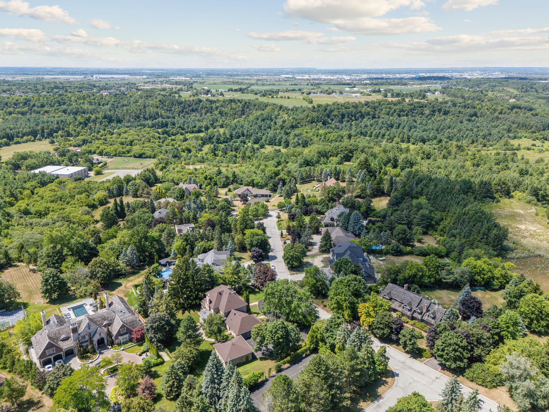 Exquisite luxury home in prestigious kleinburg communitywelcome to this custom-renovated, detached luxury residence, located in one of kleinburgs most sought-after neighborhoodshedgerow estates. Nestled on an approximately one-acre premium lot, this exceptional home offers an unmatched blend of elegance, functionality, and privacy, surrounded by mature trees and adjacent to 20 acres of jointly owned green space. Designed with entertaining and everyday luxury living in mind, this two-storey masterpiece features soaring 9-20 ft ceilings and exceptional craftsmanship throughout. The home includes a spacious attached 3-car garage, plus a detached 4-car tandem garage/workshop, all accessed via a circular driveway with parking for up to 12 vehicles. The heart of the home is a custom gourmet kitchen, complete with top-of-the-line appliances and a stunning walk-in wine wall perfect for culinary enthusiasts and entertainers alike. The upper level features four generously sized bedrooms, each with its own private ensuite. The main floor offers a versatile one-bedroom/library suite with a walkout to a sunroom and a dedicated 3-piece ensuite ideal for guests or multigenerational living. Additional highlights include a professionally landscaped backyard with a full-size tennis/pickleball court, and luxurious modern finishes throughout the home. Situated across from the exclusive copper creek golf club and surrounded by multimillion-dollar estates, this property represents the pinnacle of upscale living in kleinburg.