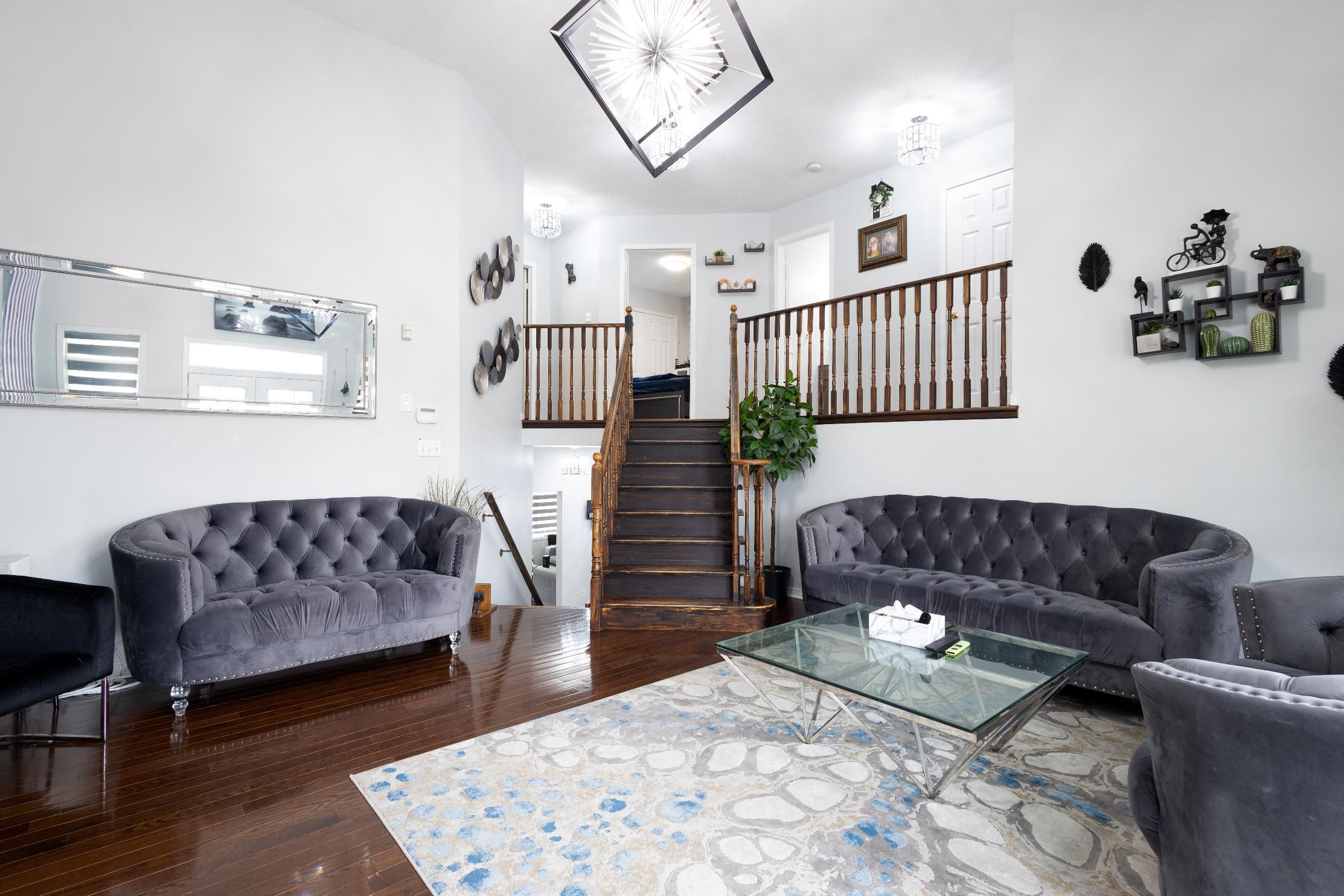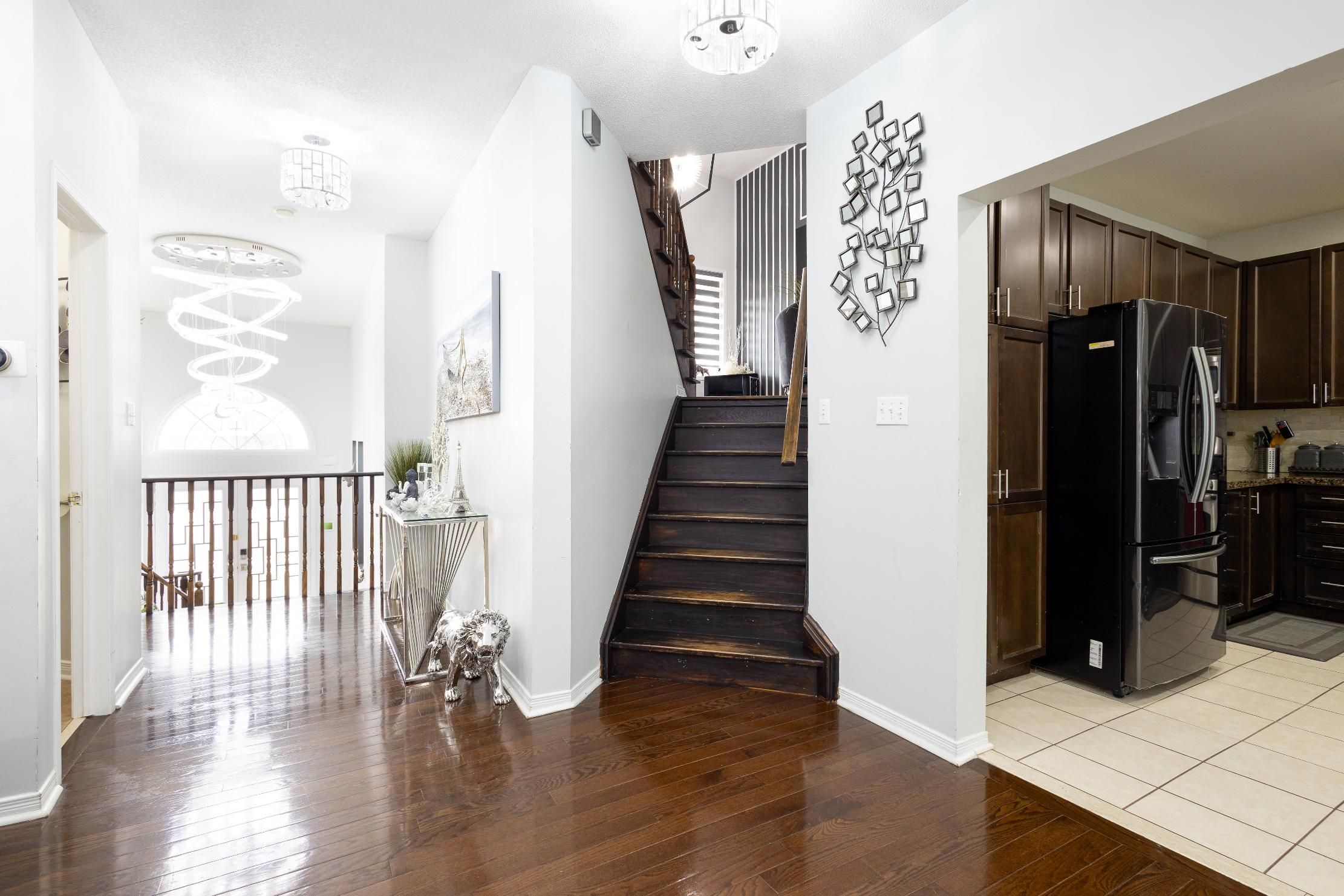 Location. Location.. Location... Absolutely gorgeous! This beautifully maintained detached 4-bedroom home with a finished basement is situated in one of the most desirable neighborhoods. The property boasts a fully fenced backyard with a spacious patio, perfect for outdoor gatherings. The upgraded kitchen is complete with stainless steel appliances, quartz countertops, and elegant pot lights, with no carpet throughout, this home offers a clean and modern look, complemented by separate living, dining, the family room creates a cozy escape, featuring an electric fireplace and walkout to a private balcony, your personal retreat or a quiet evening unwind. Upstairs, the primary suite is your sanctuary, complete with spa-inspired 4-piece ensuite and a spacious walk-in closet. The specious finished basement , making it ideal for extended family living. Conveniently located close to hospitals, parks, , banks, and all other essential amenities. A must-see home you wont want to miss!