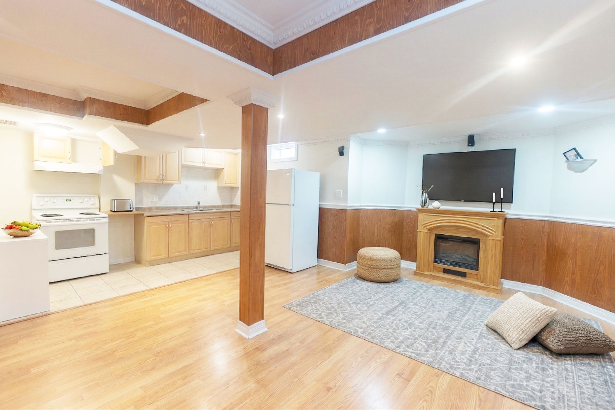 • Cozy family room with a fireplace, great for relaxation and gatherings.
