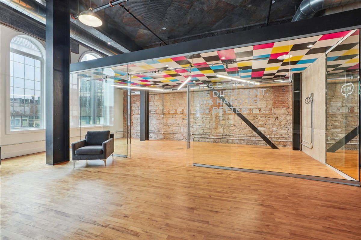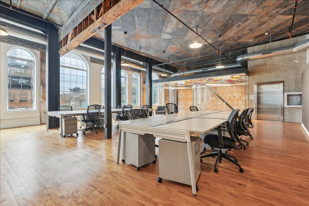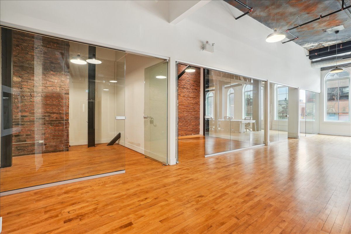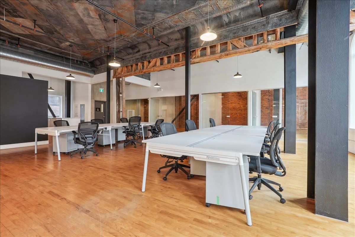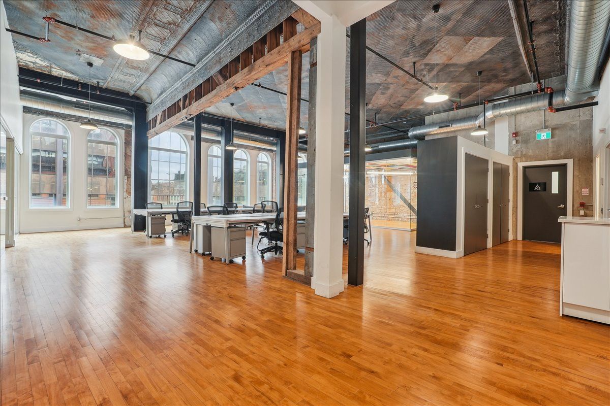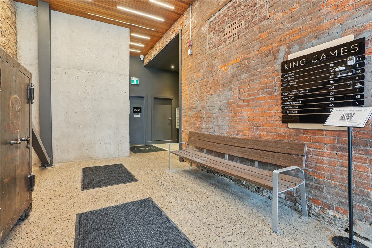 Pristine office space available at the prestigious king james building! This one-of-a-kind suite offers 2,800 square feet with soaring 16' hammered-tin ceilings, floor-to-ceiling arched windows, glass-enclosed boardroom, kitchen, in-suite washrooms (including one fully-aoda compliant), storage closets, exposed ductwork, post-and-beam construction, multiple glass-enclosed, private offices, and access to the fifth floor common area terrace! Serviced by a fob-secured elevator that opens directly into the suite, this newly-available office suite is one of the most sought-after units in city. The building itself has been completely redeveloped by core urban; known for their brilliant combination of preserved heritage features and character with modern features and building systems. Located in the heart of downtown hamilton, this suite is literal steps away from the major banks, city hall, the court houses, mcmaster university's downtown campus, the james north arts district, jackson square, the king william restaurant district, and so much more! Immediately available. Note: furniture shown in photography belongs to prior tenant and not available for use.