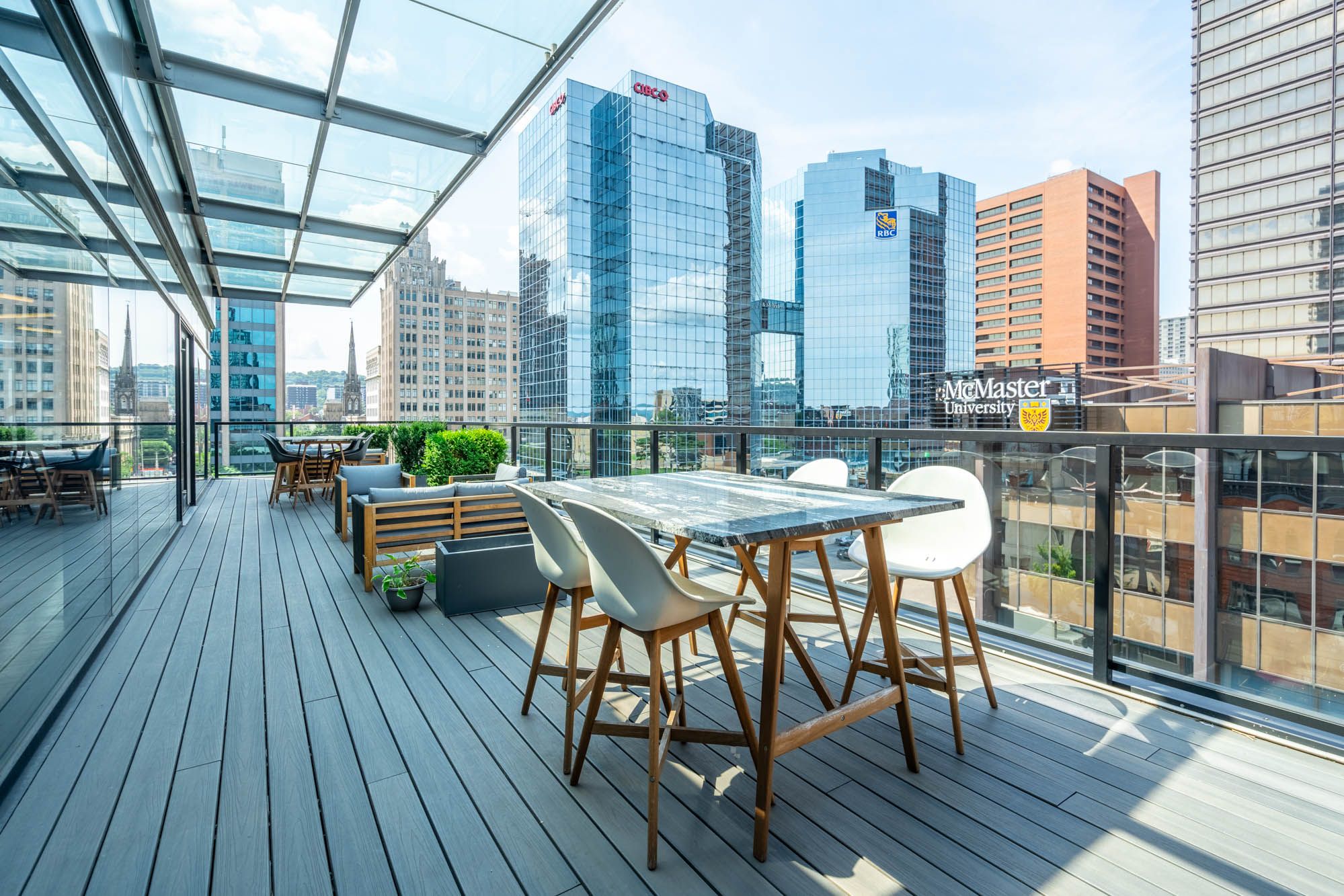 • Stylish glass-enclosed boardroom and private offices for meetings.