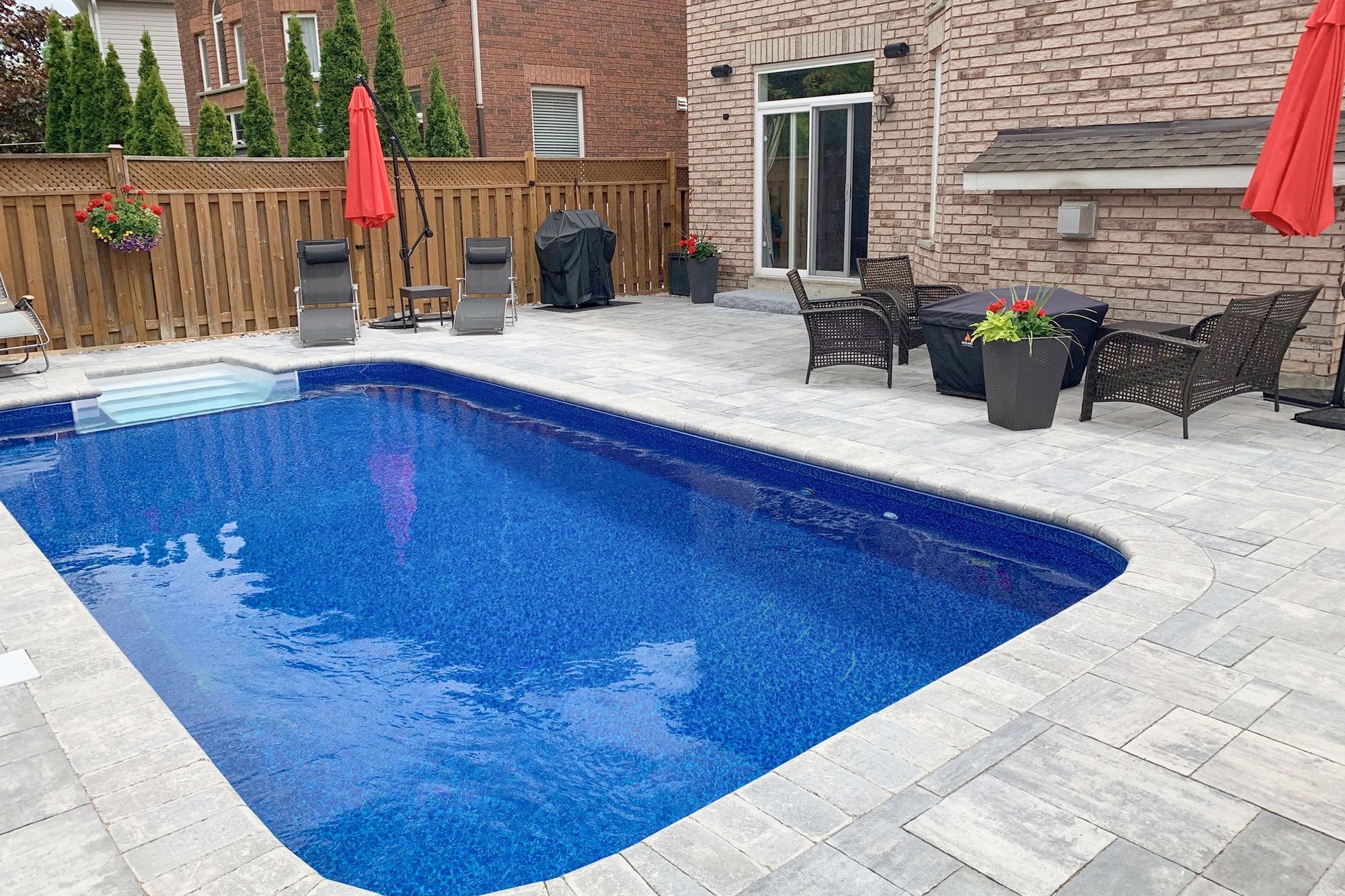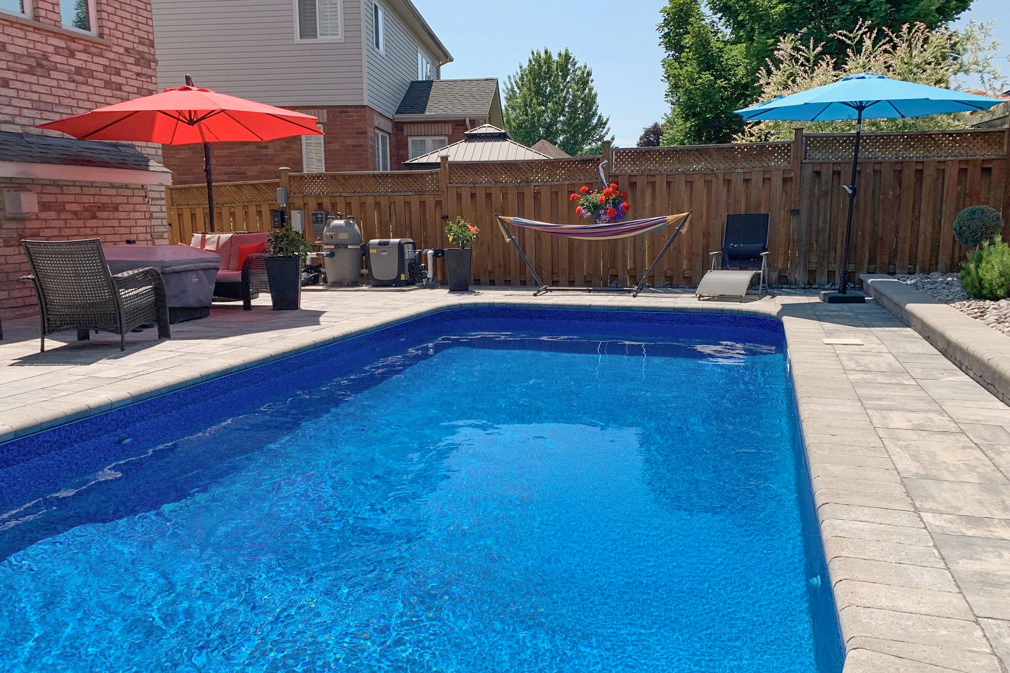 • Backyard oasis with a stone patio and heated inground pool for summer fun.