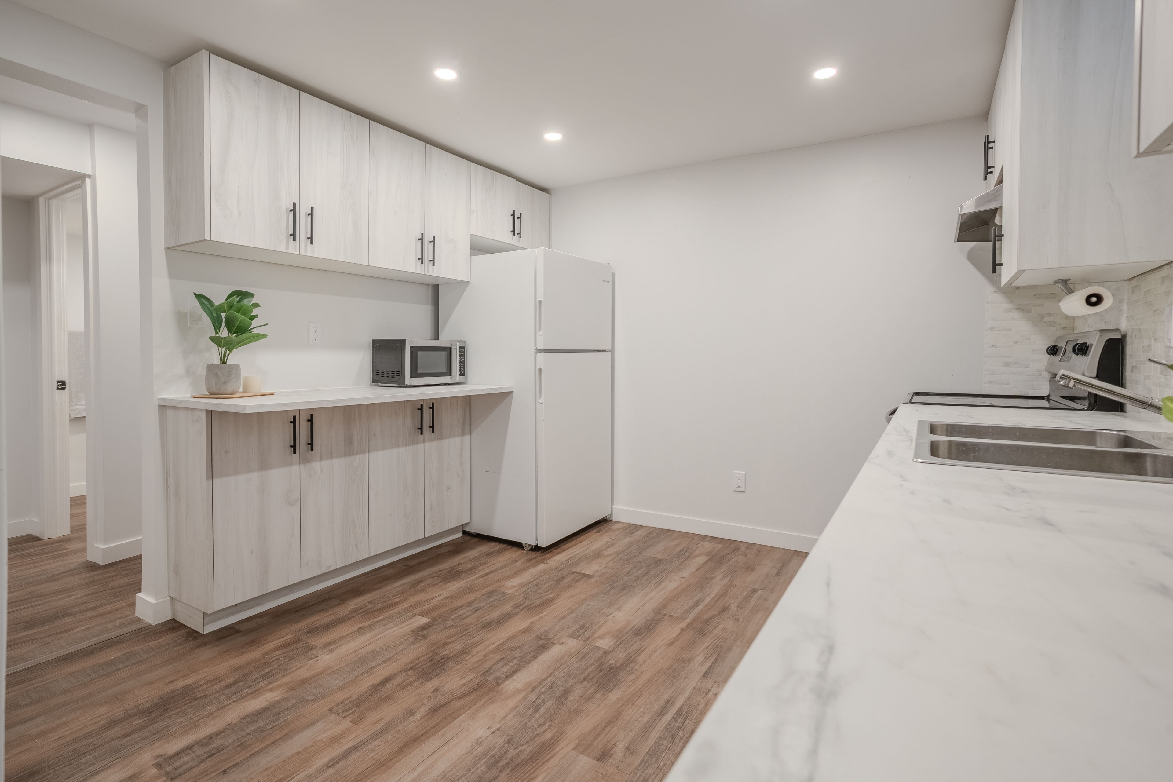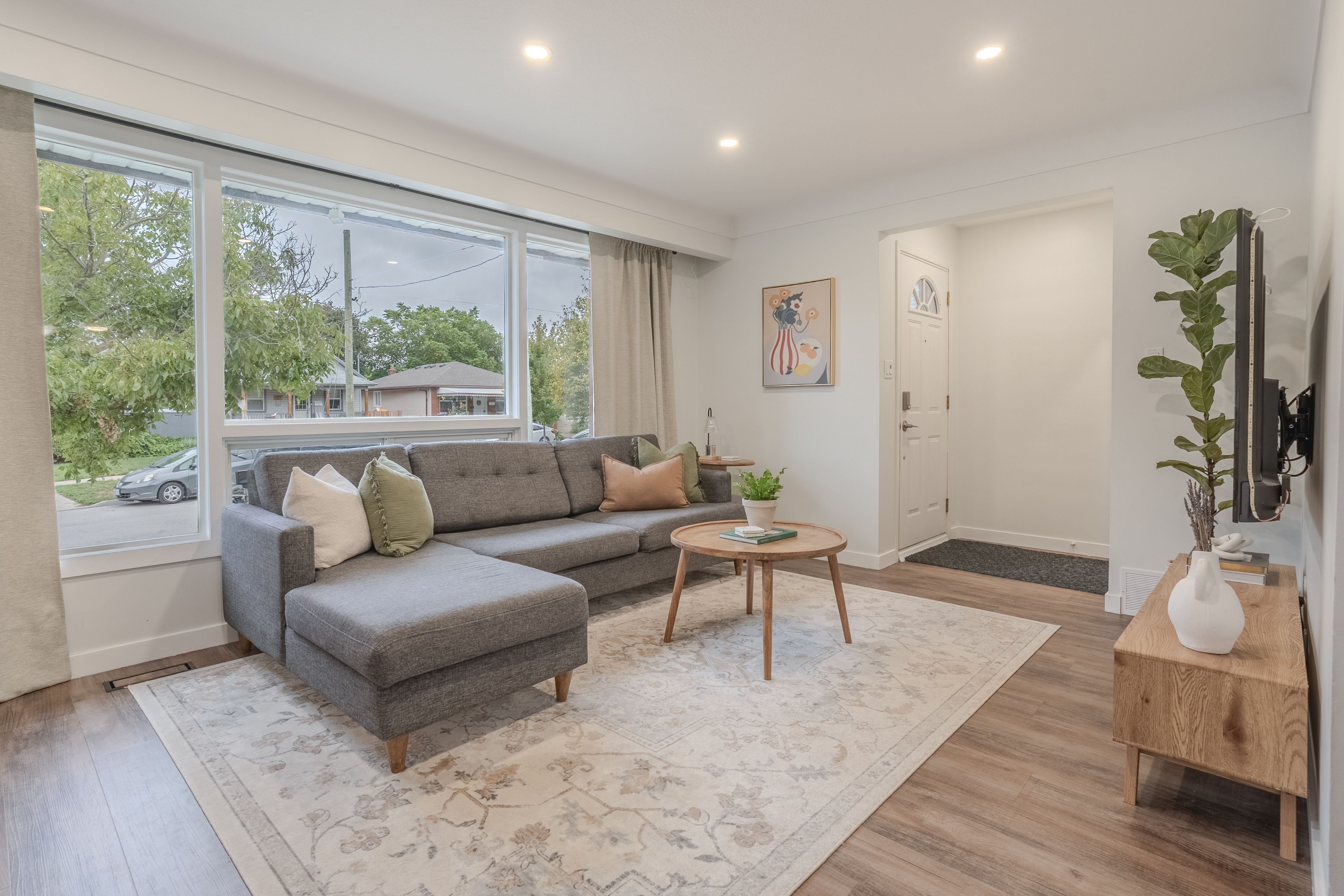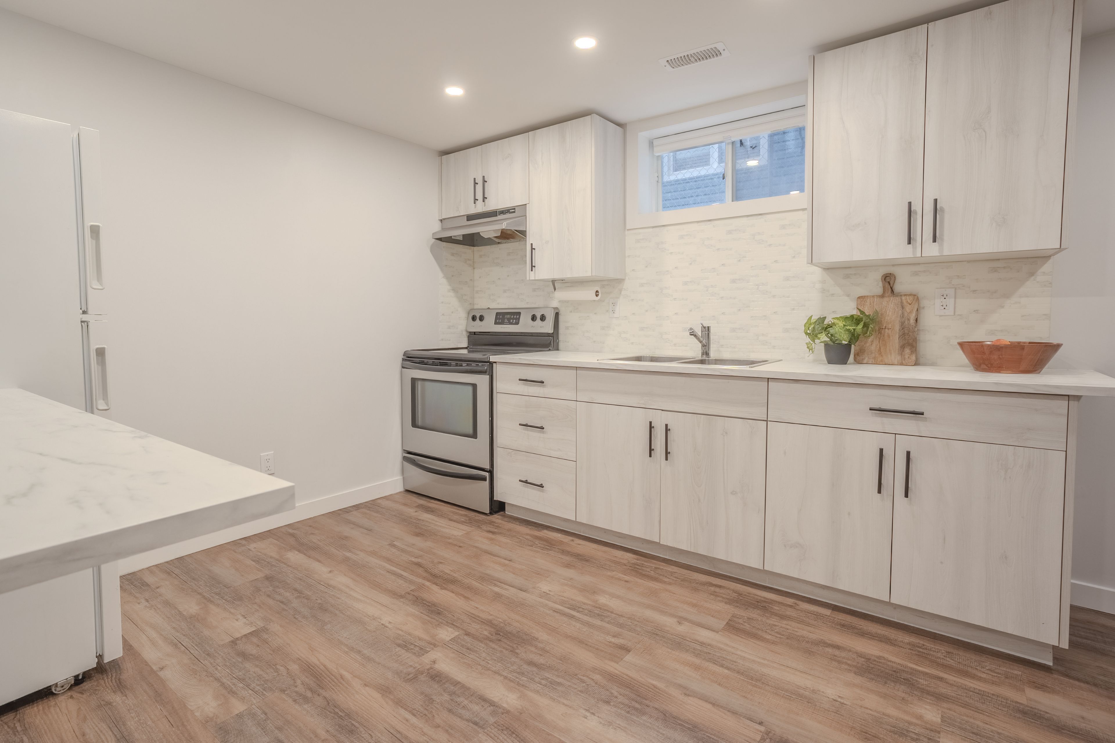 This beautifully updated bungalow blends charm, functionality, and flexibility for today's lifestyle. The main floor offers 3 bedrooms and 1 bathroom, while the fully finished lower level features a complete 1-bedroom, 1-bathroom in-law suite with a separate entrance - perfect for families, downsizers, or first-time buyers looking for extra space or income potential. Step inside to find modern updates throughout, including new vinyl flooring (2021). The bright, inviting kitchen features quartz countertops, matching backsplash, and newer appliances (2022). Downstairs, the in-law suite includes its own kitchen, living area, laundry, bedroom, and bathroom (ideal for extended family or potential rental use). Notable mechanical updates include a new furnace (2021), central air conditioning (2021), hot water tank (owned, 2023), and updated kitchens (2021). A central vacuum system is also installed (never used by current owners). Enjoy your private backyard with no rear neighbours, backing onto a quiet parking area. Conveniently located just minutes from schools, parks, public transit, and shopping centres, this home truly offers the best of comfort and convenience. Blending style, modern upgrades, and practical living, this home is ready to fit all your life plans.