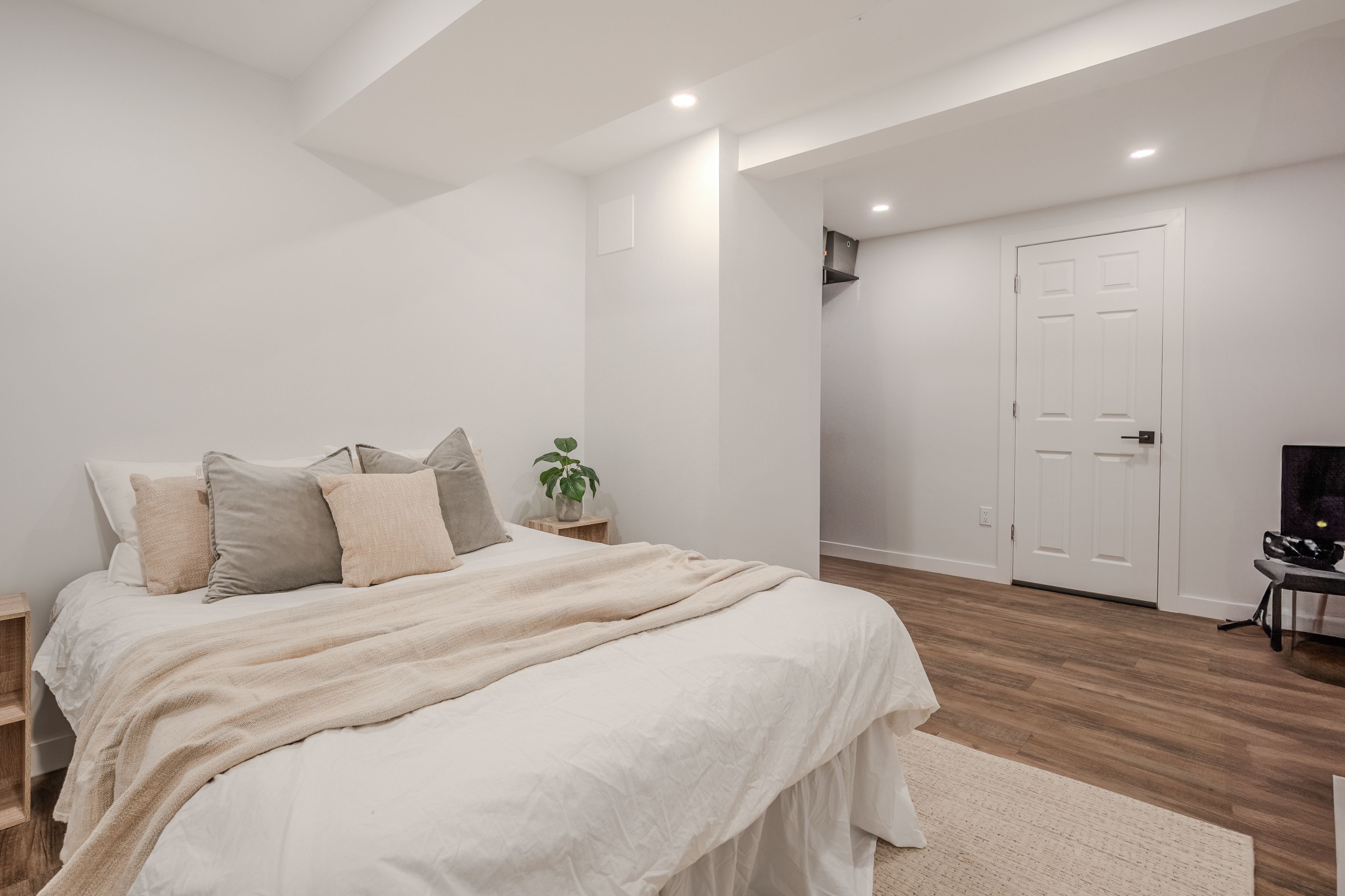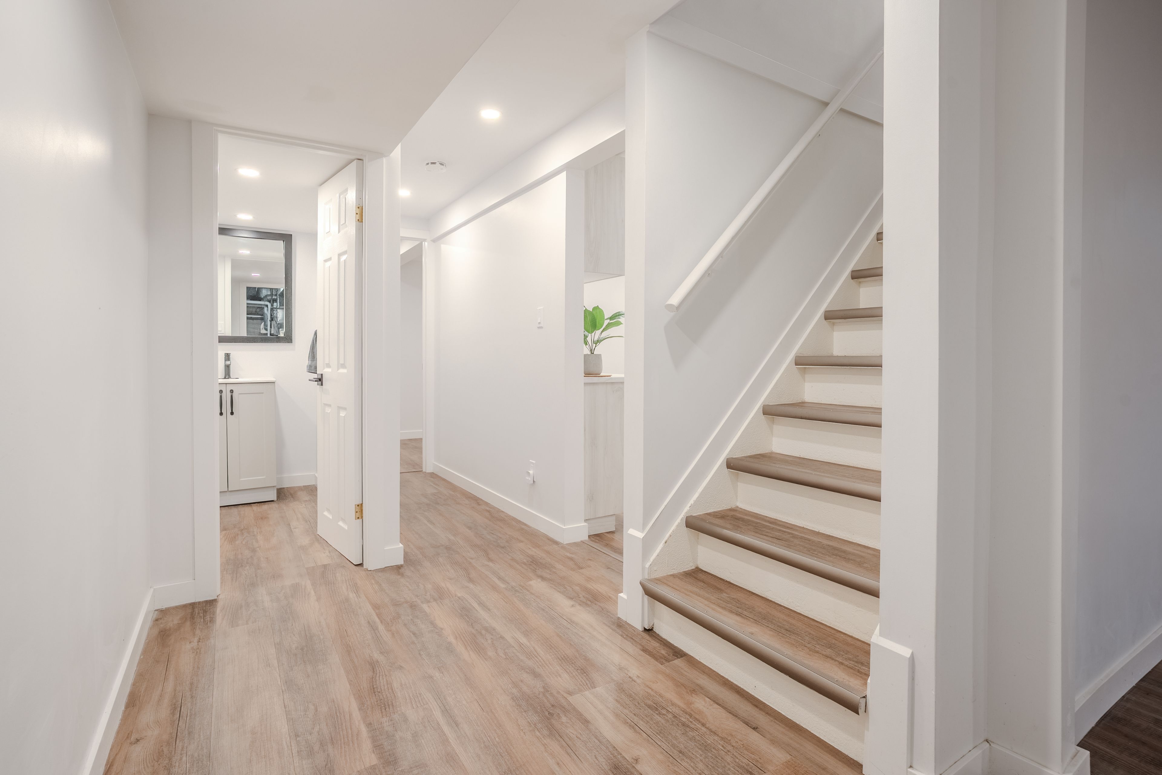 • Main floor features three bedrooms and a full bathroom.