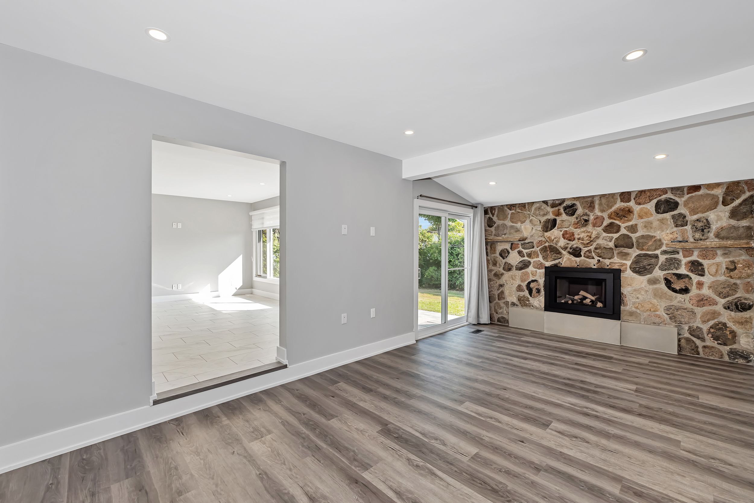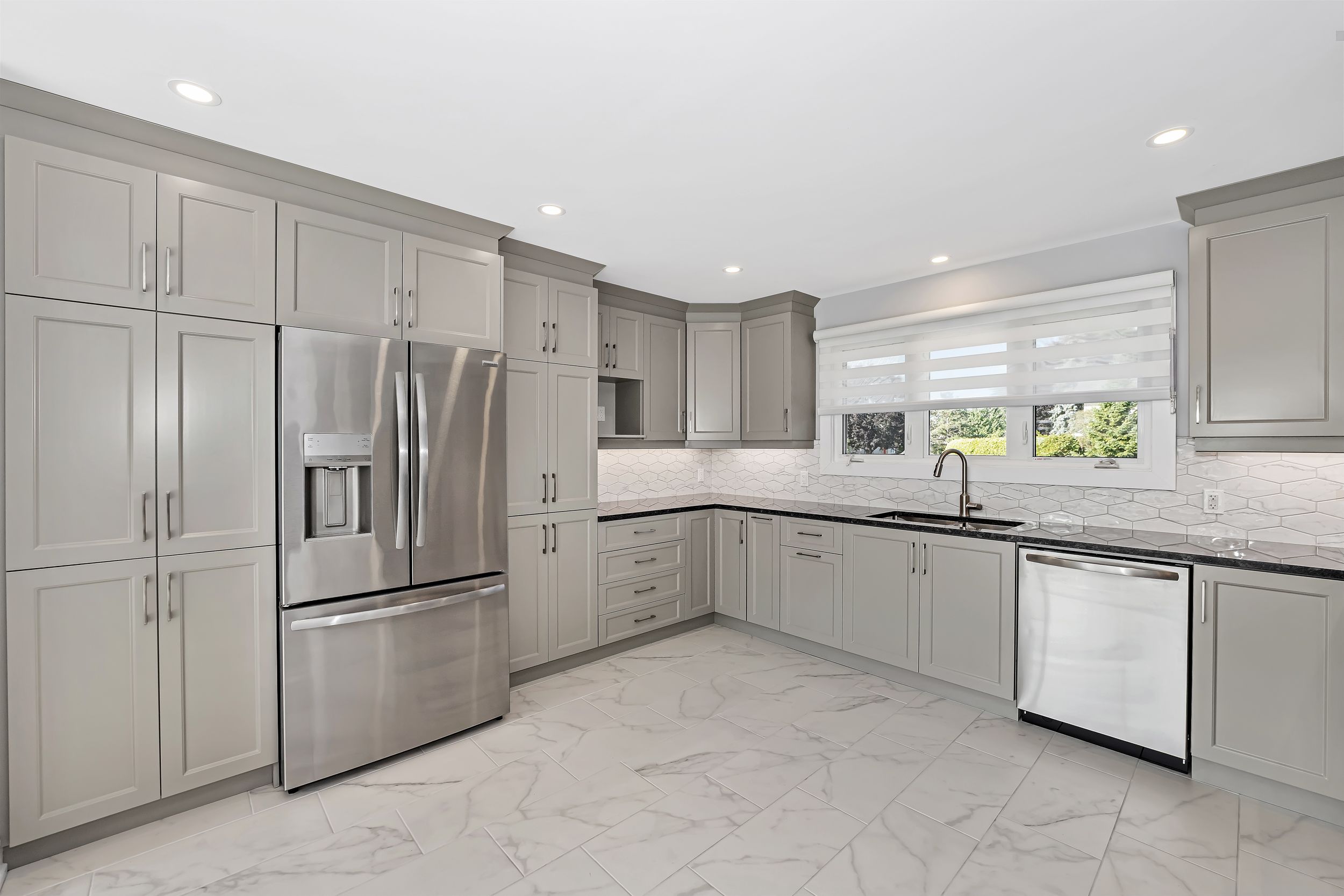 Welcome to this beautifully updated 2-bedroom bungalow nestled on a peaceful crescent, offering the perfect blend of modern comfort and timeless charm. The main floor was entirely updated in 2024. Step inside to discover a spacious, contemporary kitchen with sleek finishes and ample counter space, ideal for home chefs and entertaining alike. Main level highlights include, a large, modern kitchen with updated cabinetry and appliances, two renovated bathrooms, including a stylish ensuite, convenient main-level laundry, and expansive dining room perfect for hosting family dinners, and a cozy living room featuring a stunning stone fireplace. The flooring is an exceptional combination of tile in the kitchen and dining room, and gorgeous laminate in the bedrooms. Enjoy summer evenings on the beautiful backyard patio, surrounded by mature landscaping and privacy. The oversized single garage provides plenty of room for parking and storage. Finished basement retreat: the fully finished basement offers a generous family room and rec room, plus a 3-piece bathroom, an ideal setup for teenagers, guests, or extended family. Prime location: close to shopping, schools, and everyday amenities, this home combines tranquility with convenience. Whether you're starting out, downsizing, or looking for multigenerational living, this bungalow checks all the boxes. Ready to move in and enjoy! New roof shingles, all new appliances, new garage door.