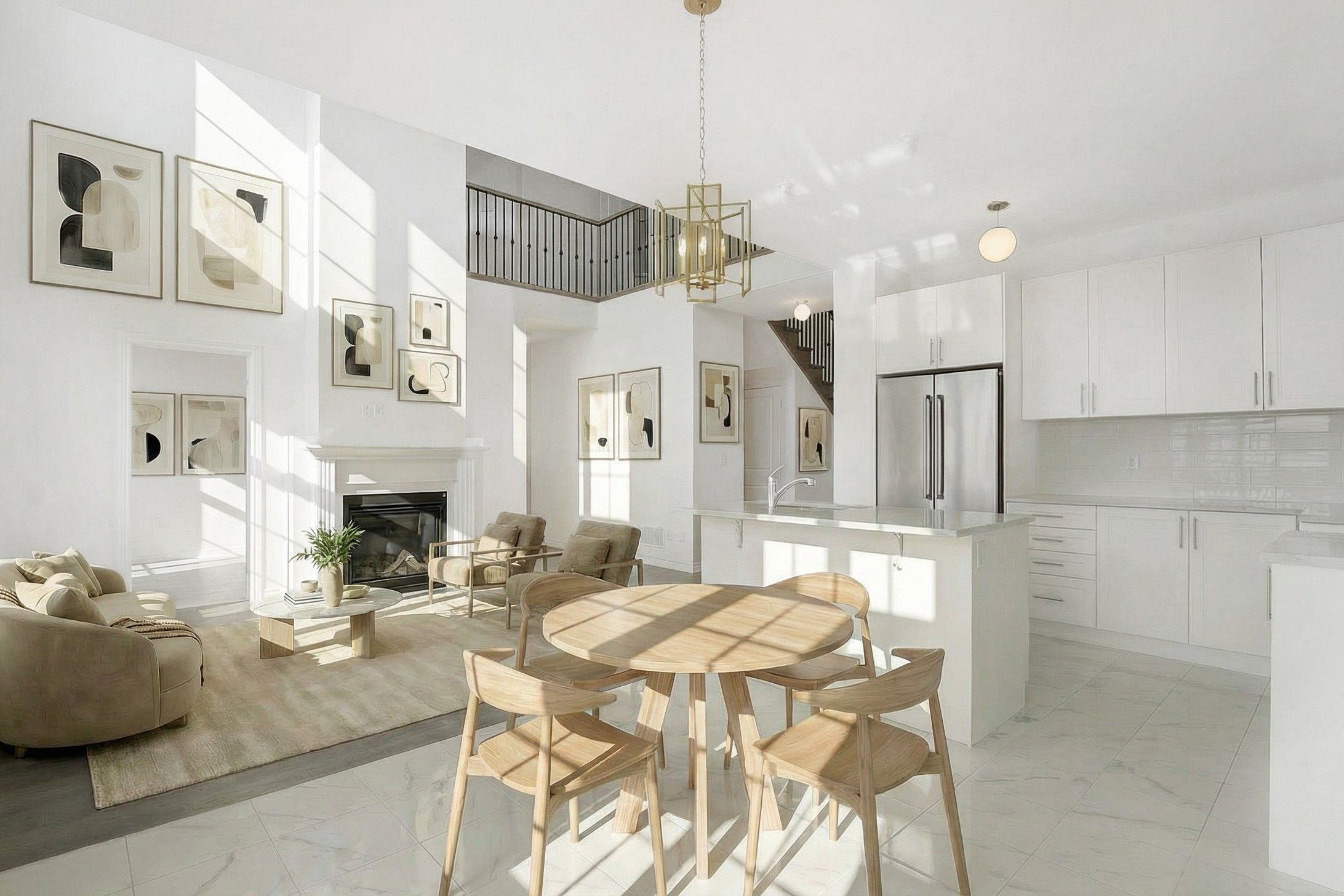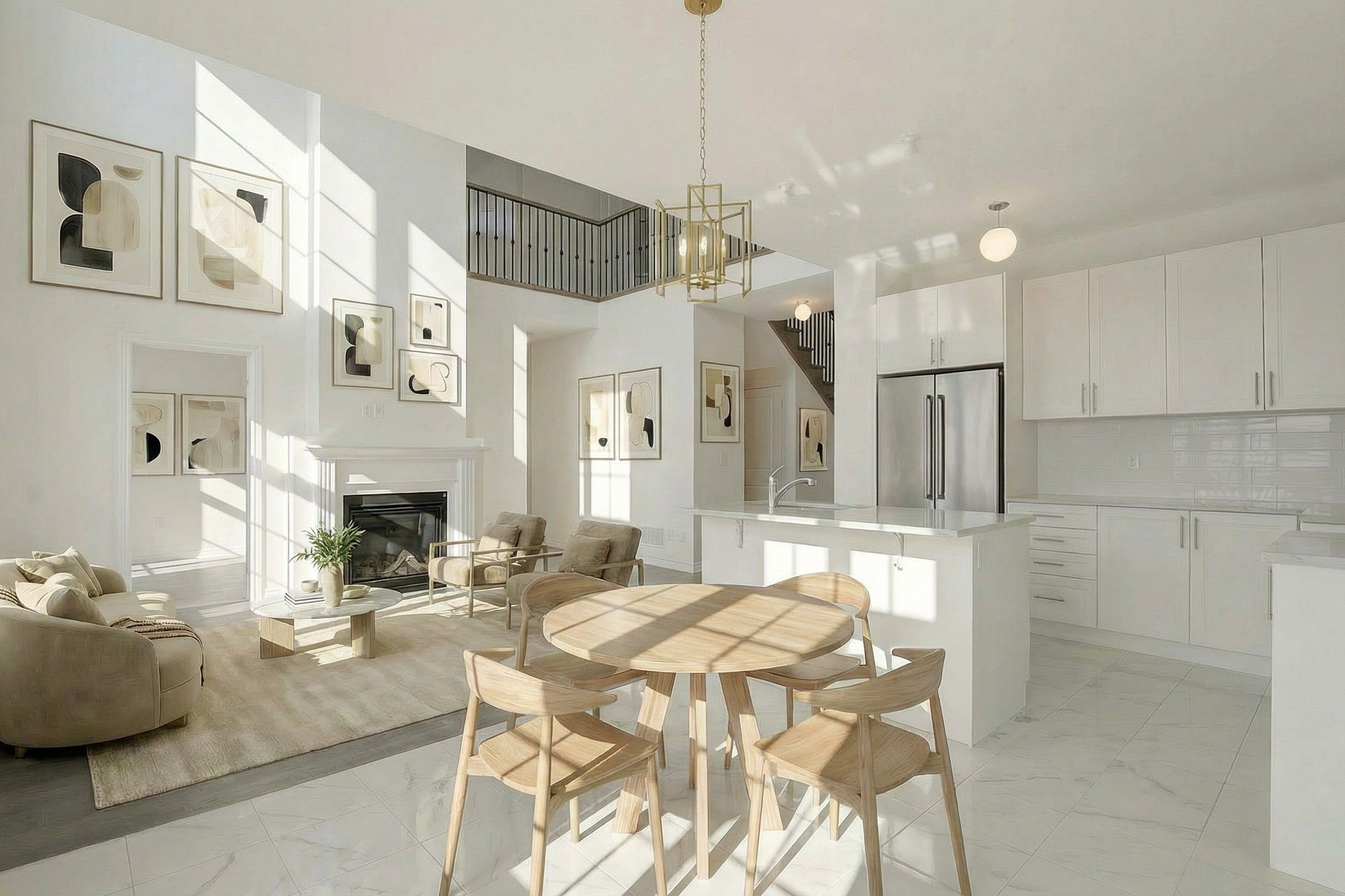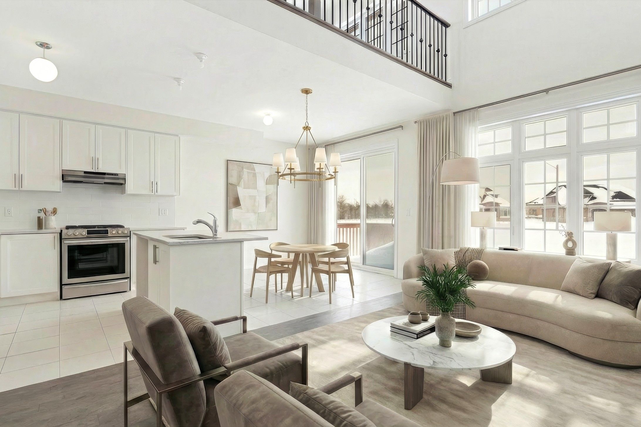 • Elegant quartz countertops and custom kitchen cabinetry highlight quality.