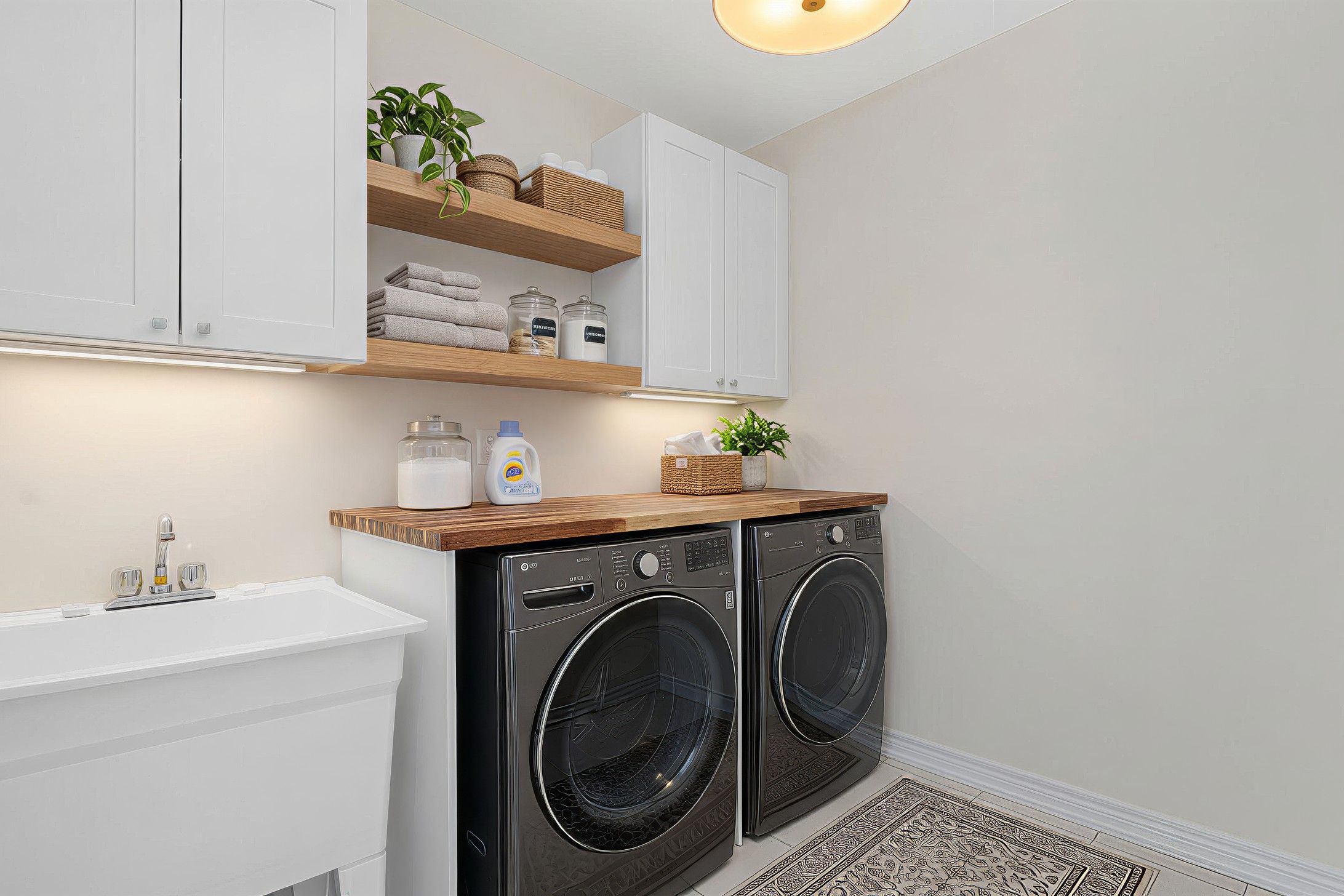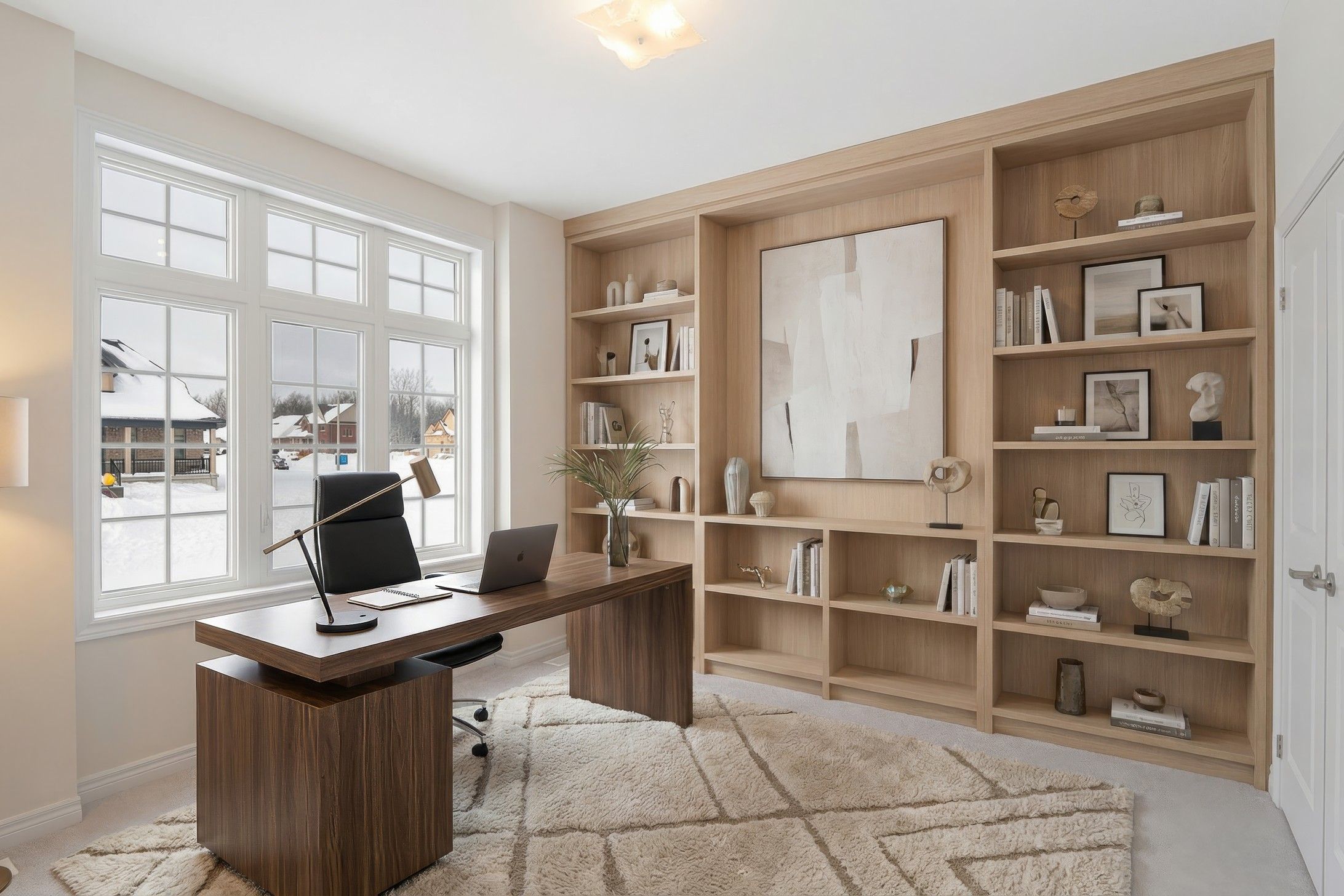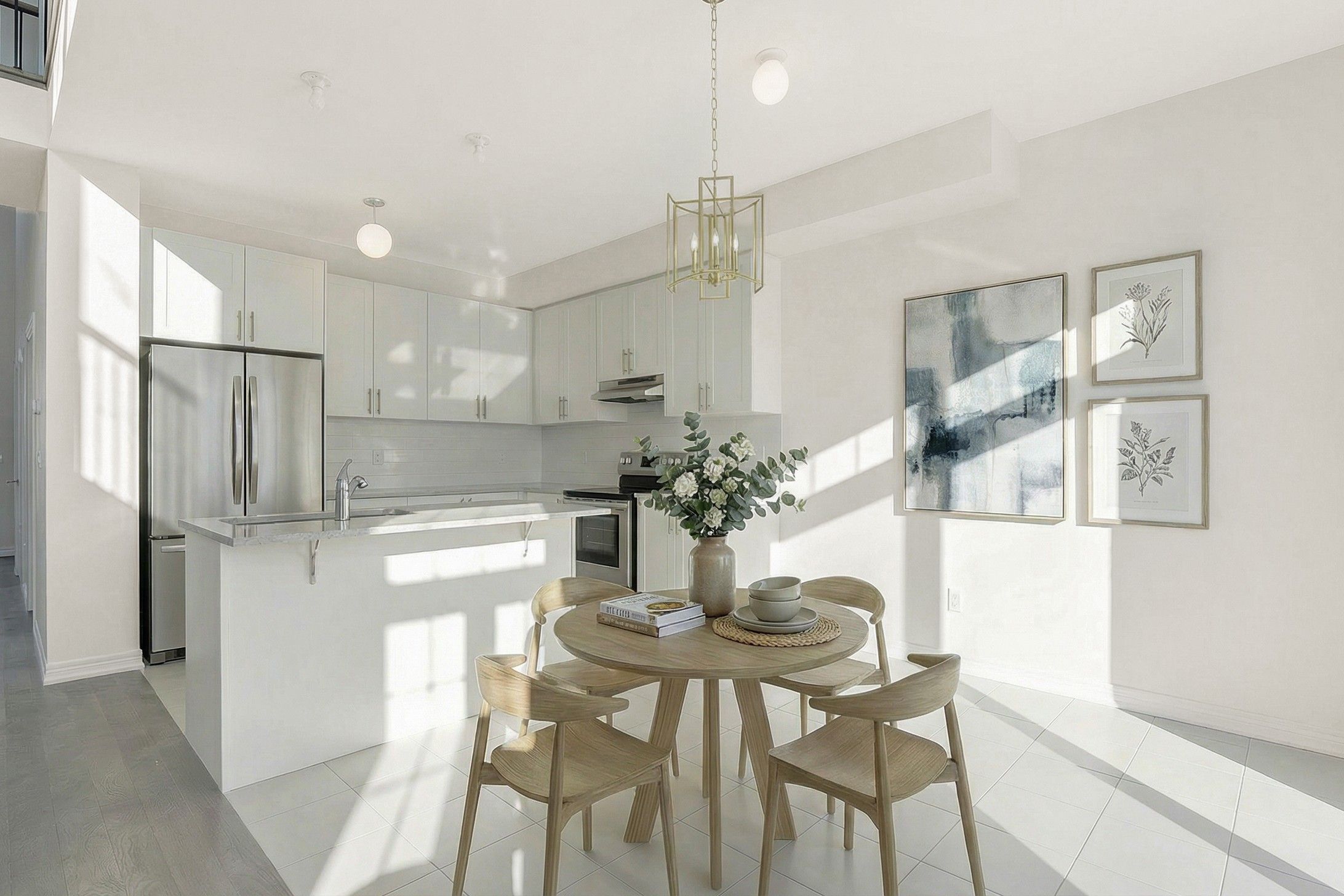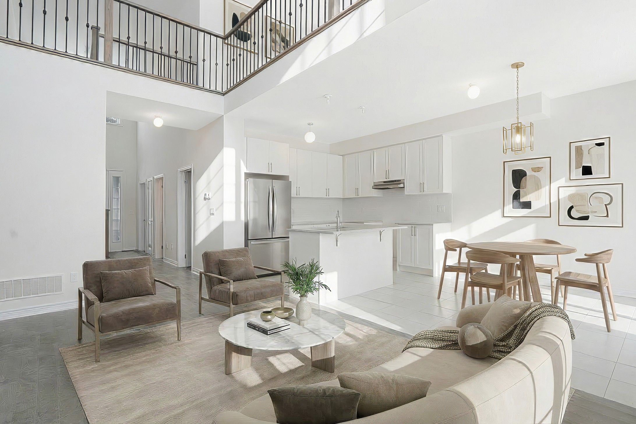 • Elegant quartz countertops and custom kitchen cabinetry highlight quality.