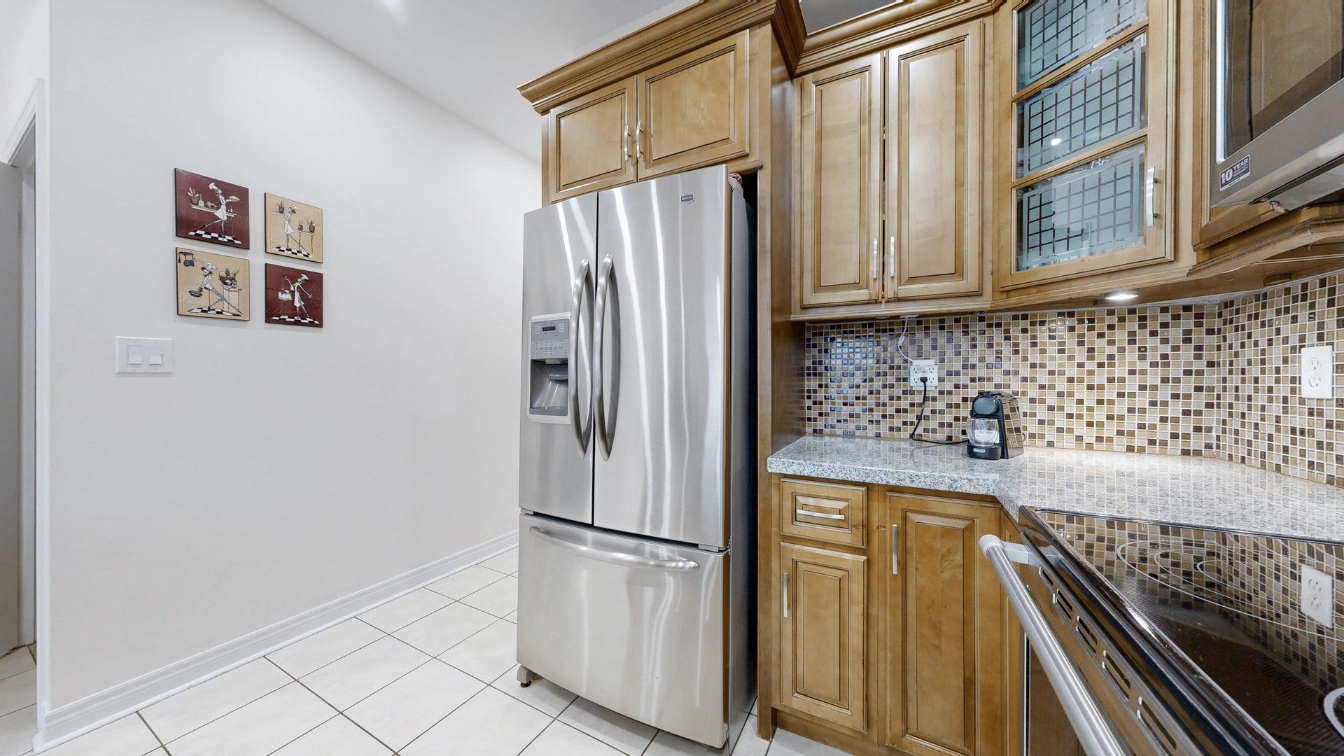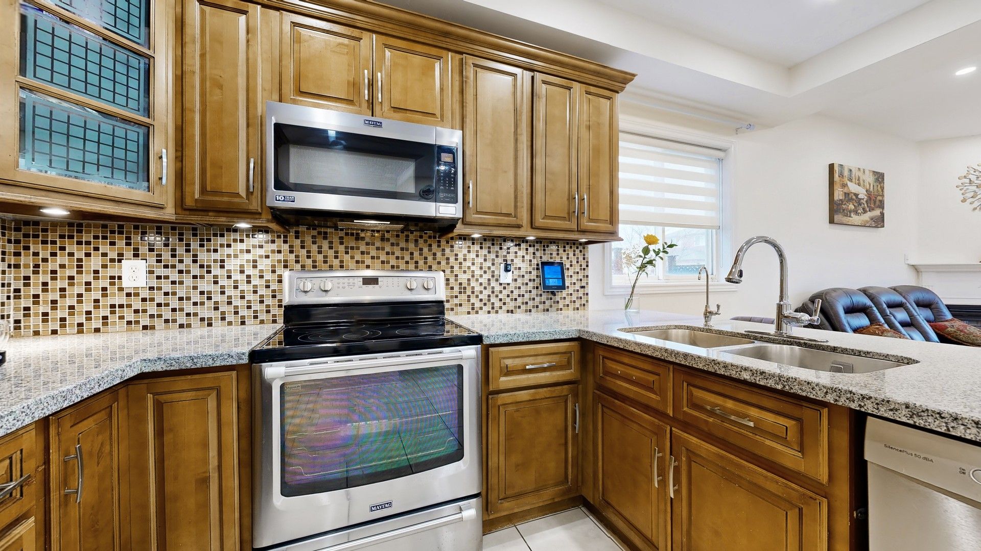 • Eat-in kitchen features granite countertops and stainless steel appliances.
