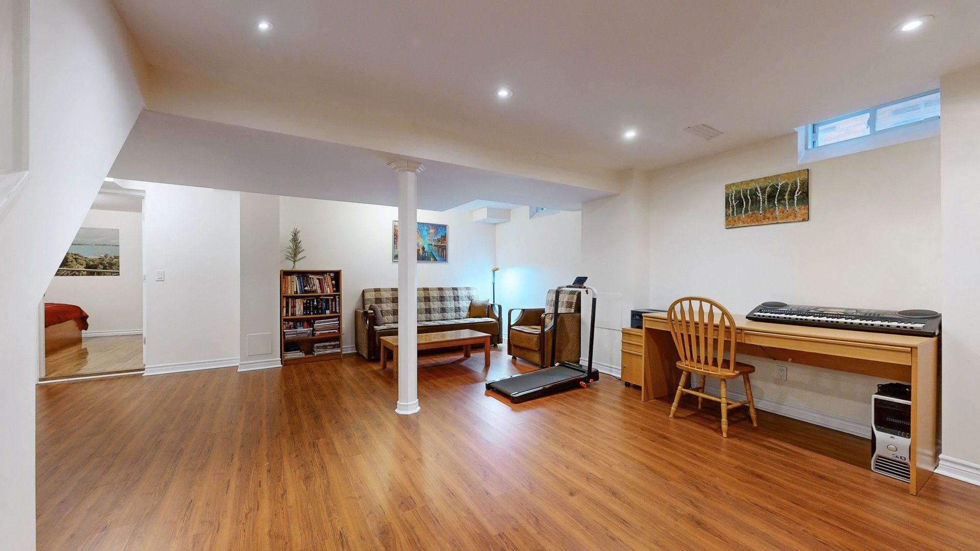 • Professionally finished basement adds living space with a recreational room and bedroom.