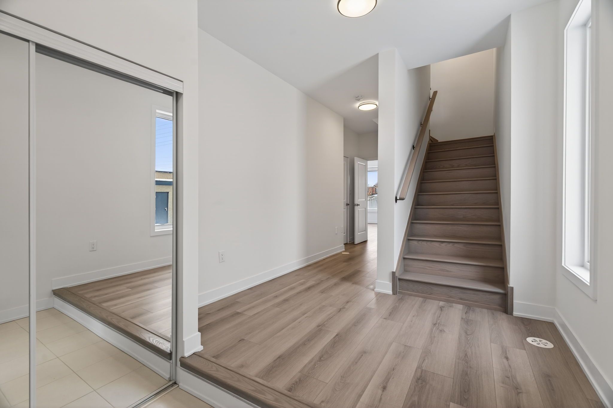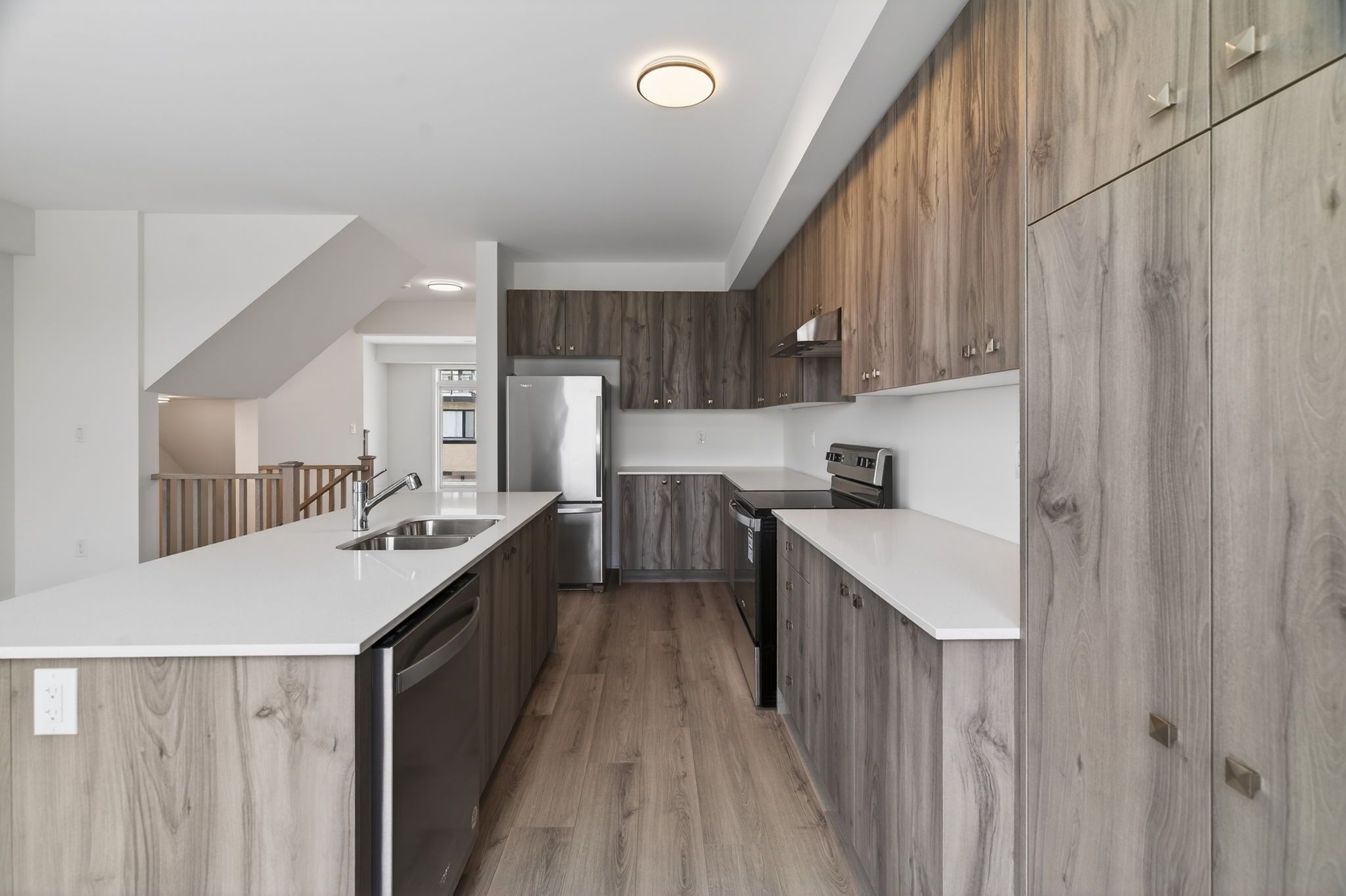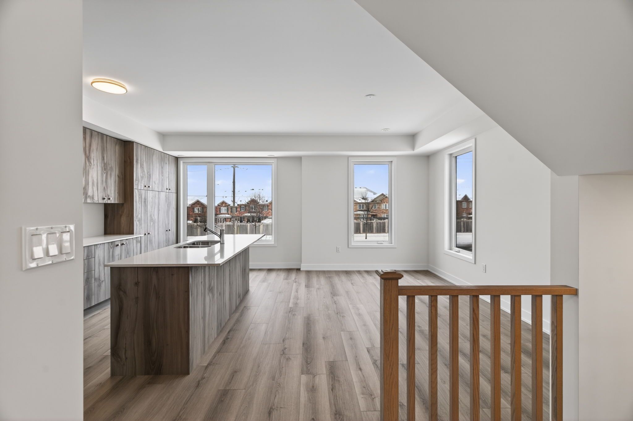 Brand new, never lived in, contemporary townhome in whitby. This beautiful corner-unit features laminate flooring on the ground & main floors (in non tiled areas), a finished basement, walk out to south-exposure balcony from the living room, plenty of natural light,stone kitchen counters, stainless steel kitchen appliances, smooth ceilings throughout and more. Direct access to garage, large primary bedroom with 4-pc ensuite and walk-in closet. Close to schools, shopping, grocery stores and public transit. This property will go to auction on january 23, 2026.