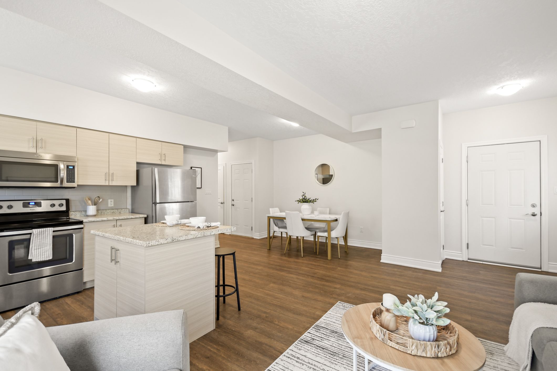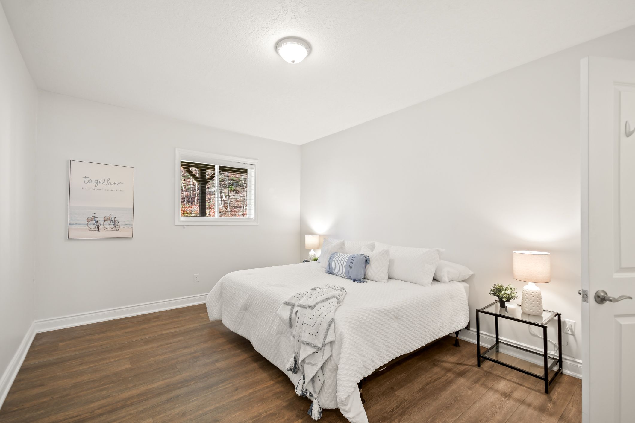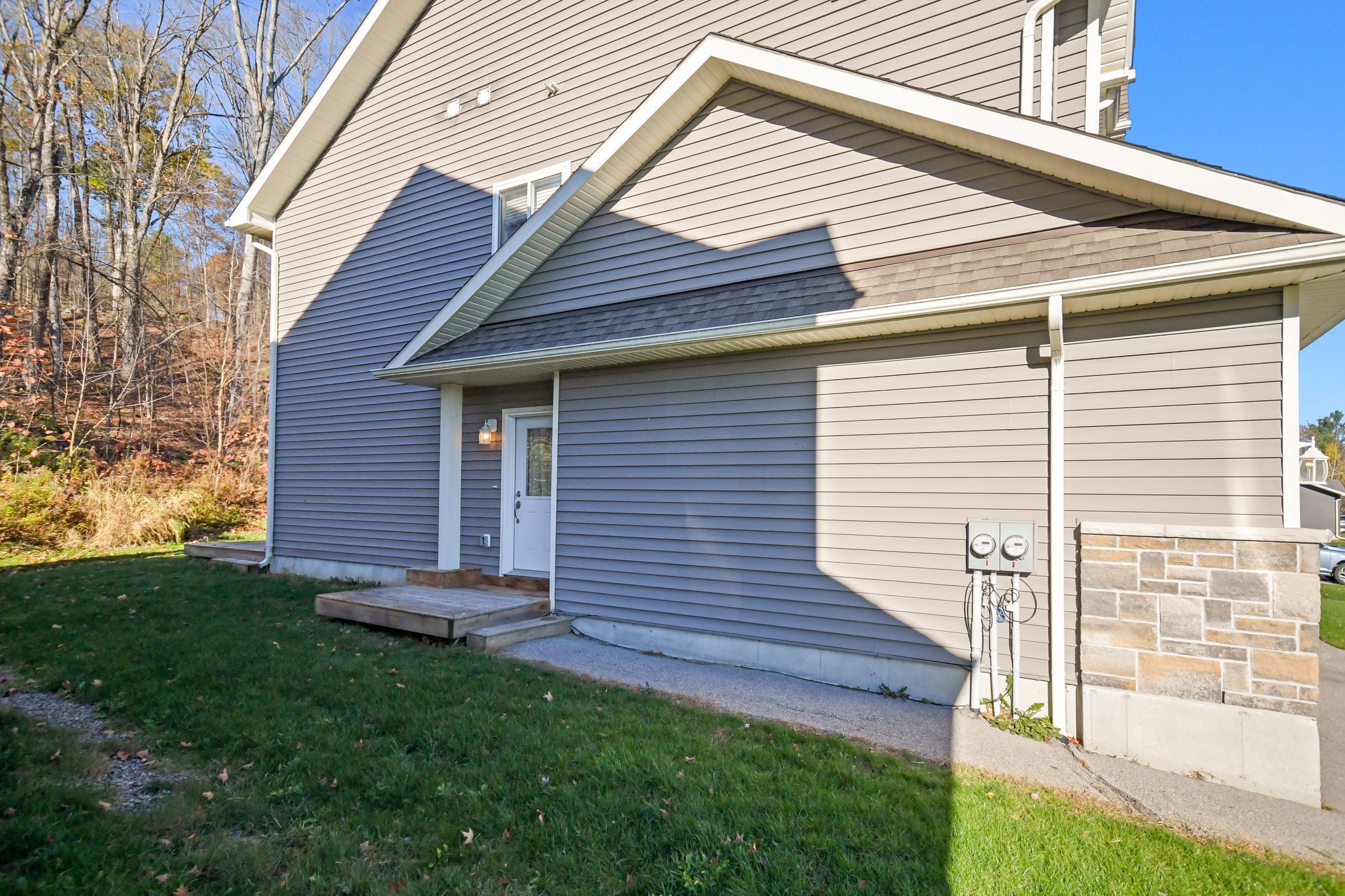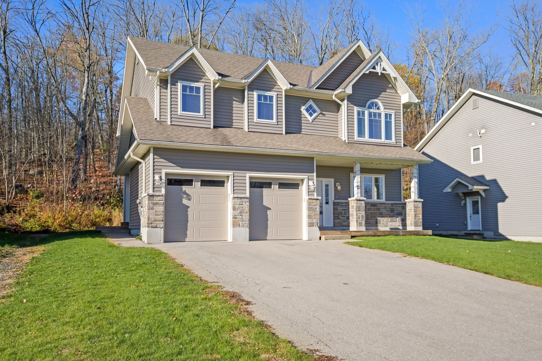 This attractive two-storey duplex offers exceptional design and flexibility for investors or multi-generational families. Each unit features its own private entrance, separate garage space, independent gas furnace, central air conditioning, and in-suite laundry, a true side-by-side living experience under one roof. The upper unit is bright and spacious, with an entry from the front door that includes a coat closet and direct access to its dedicated single garage. A staircase leads to the main living area, where an open-concept kitchen, dining, and living space with gas fireplace creates a warm, modern atmosphere. The kitchen features ample cabinetry and workspace, while a walkout from the dining area opens to a sunny elevated deck overlooking the backyard. The primary bedroom offers a private ensuite bath and walk-in closet, complimented by two additional generous bedrooms with closets, a second full bath, and convenient laundry. The lower unit has its own entrance from the side yard and enjoys large above-grade windows that bring in natural light. The well-designed layout includes a bright kitchen, open living and dining area, two comfortable bedrooms, a full bath, laundry, and access to its own single garage. Set on a landscaped lot in a quiet bracebridge neighbourhood, this property combines modern construction, separate utilities, and excellent rental appeal. Just minutes to downtown, schools, shopping, and recreation, it's a rare opportunity to own a legal duplex in one of muskoka's most sought-after communities.