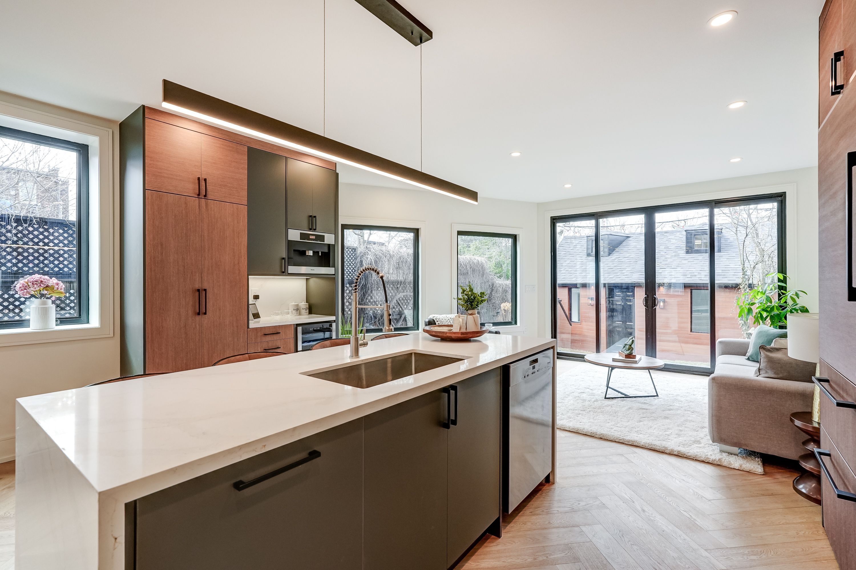 An exceptional roncesvalles approx 4,200 sq ft residence blends style, space, comfort & versatility across 4 beautifully finished levels, perfect balance of elegant living & functionality. A welcoming foyer w/built-ins, leading o/c main level w/stunning herringbone hrdwd flrs. Designed for refined entertaining & comfortable family living, gracious formal living room w/fireplace, dining room & spectacular chef's kitchen. Outfitted w/premium appliances, wolf stove, sub-zero panelled refrigerator, miele coffee machine & custom pantry. A spacious family area completes the space, creating the perfect gathering place. The 2nd floor offers exceptional space & versatility, featuring 3 generously sized bedrooms designed for comfort and functionality. The bright front bedroom includes a w/o balcony & 3pc ensuite. At the rear, the spacious bedroom includes an additional adjoining room, ideal for a home office, studio, nursery, creative retreat-offering incredible flexibility to suit your lifestyle. A convenient laundry room w/cabinets & laundry tub completes this well-appointed level. The entire 3rd level is devoted to an exceptional primary sanctuary designed for comfort, relaxation & luxury, filled with natural light thanks to two skylights & abundance of windows. Impressive walk-in closet & a spa-inspired 6-piece ensuite w/heated floors for comfort & indulgence. A thoughtfully designed work-from-home area provides a quiet & inspiring space for productivity. Blending elegance, functionality and serenity. Finished basement offers exceptional versatility, featuring a private gym room complete w/2-pc ensuite. Separate 2-bedroom nanny/in-law suite w/private entrance, ideal for extended family, 3 piece bathroom, a spacious living w/stackable washer/dryer. Large windows allow for plenty of natural light, creating a bright & comfortable living environment. Completing the property is a rare 2-car garage w/versatile loft area above, offering valuable storage & endless possibilities.