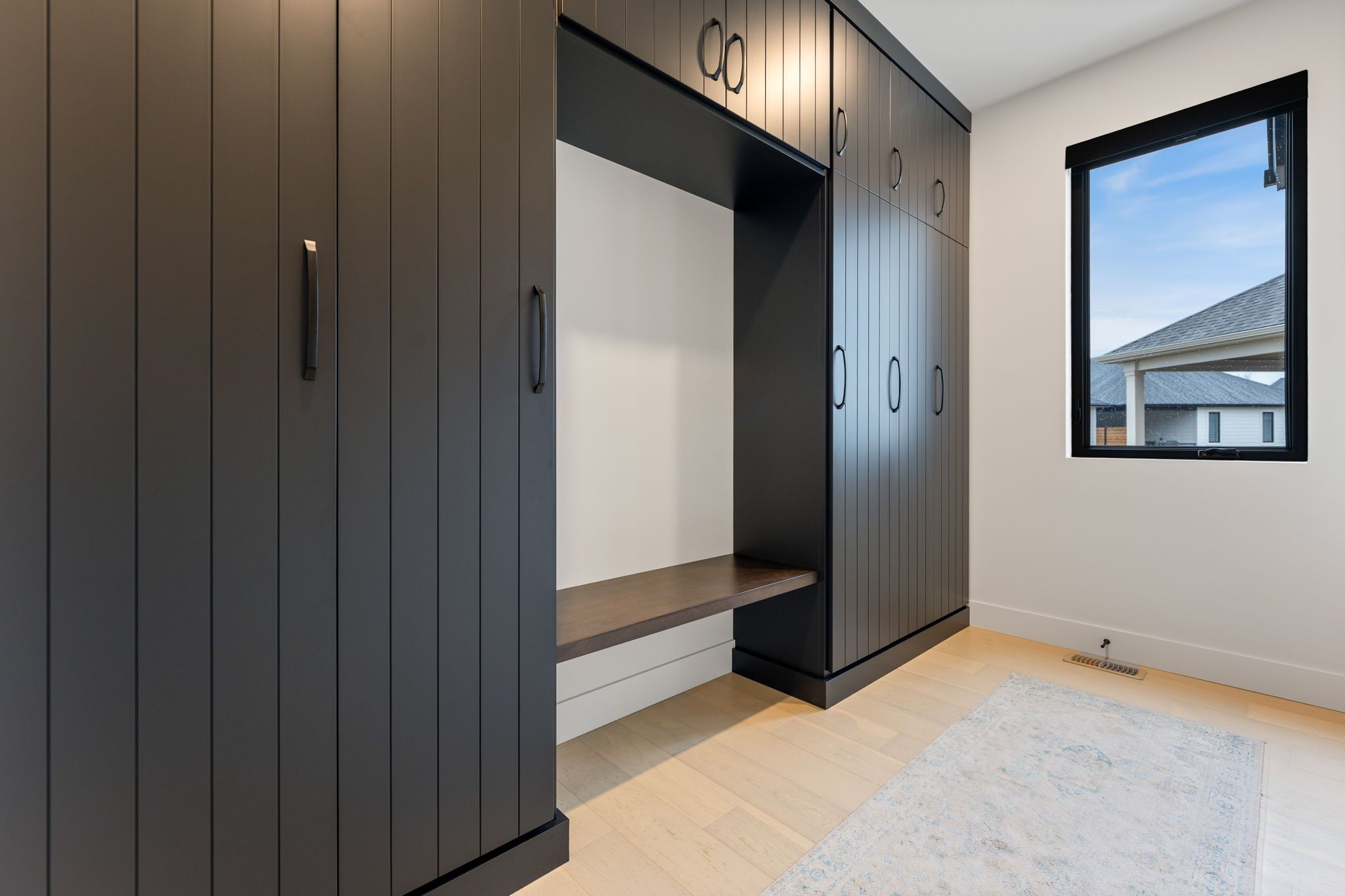 • Spacious foyer, functional mudroom with custom built-ins, and convenient powder room.