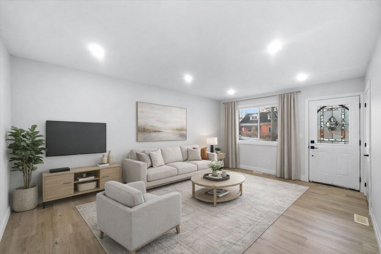 • Main floor features bright living room and modern kitchen with spacious bedrooms.