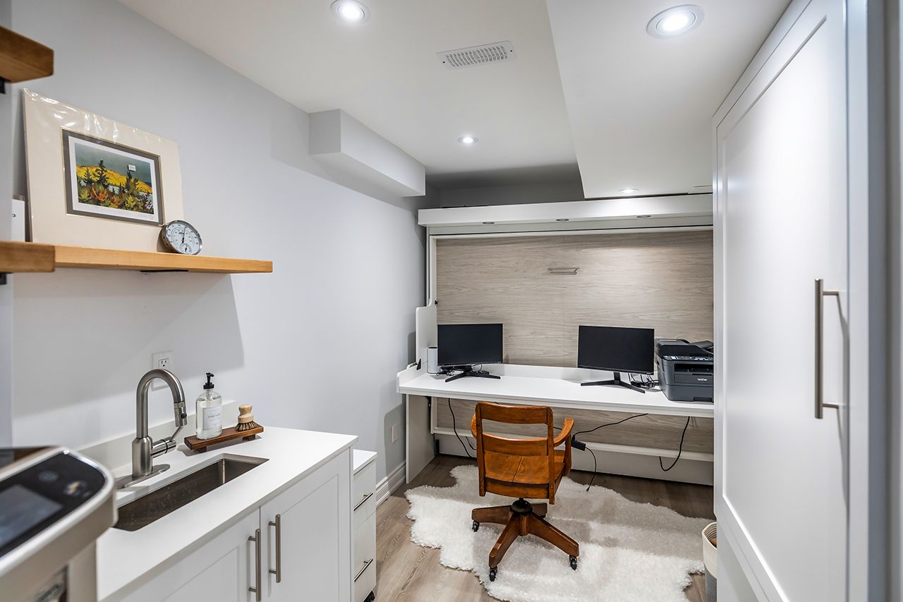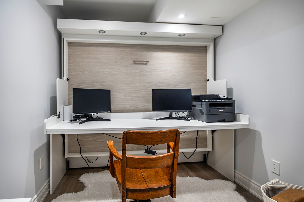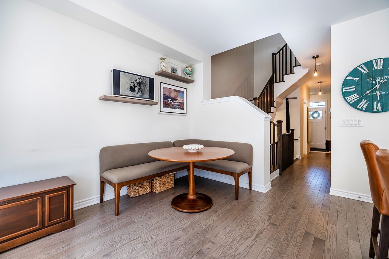Absolutely gorgeous 3-bedroom 4-bathroom freehold townhome in sought-after rolling acres community of whitby! Approximately $100,000 in upgrades!!! Wait till you see the custom finished basement! Fully upgraded w/large double door entry, upgraded red oak hardwood floors throughout both the main and second floors. The kitchen is to die for, granite counters, large island, double sink, stainless steel appliances, gas stove & s/g/w/o to a fully fenced backyard. Access to garage from the main floor laundry room. The primary ensuite features a soaker tub, walk-in shower, dual sinks with granite counter tops. Then there is the absolutely gorgeous finished basement. Featuring a large rec room with luxury vinyl plank flooring, custom cabinetry, and a home theater system. A beautifully finished 3-piece bath and a separate office/bedroom featuring a custom murphy bed that folds out right over top of your desk with computer monitors still in place (see attached video!). Enjoy ultimate convenience with quick access to highway 401, 407, and 412, plus the whitby go station. Top-rated schools, scenic trails, shops, and all amenities, all just minutes away! Don't wait, schedule your showing today and make this stunning townhome your new home! Note no potl fees.