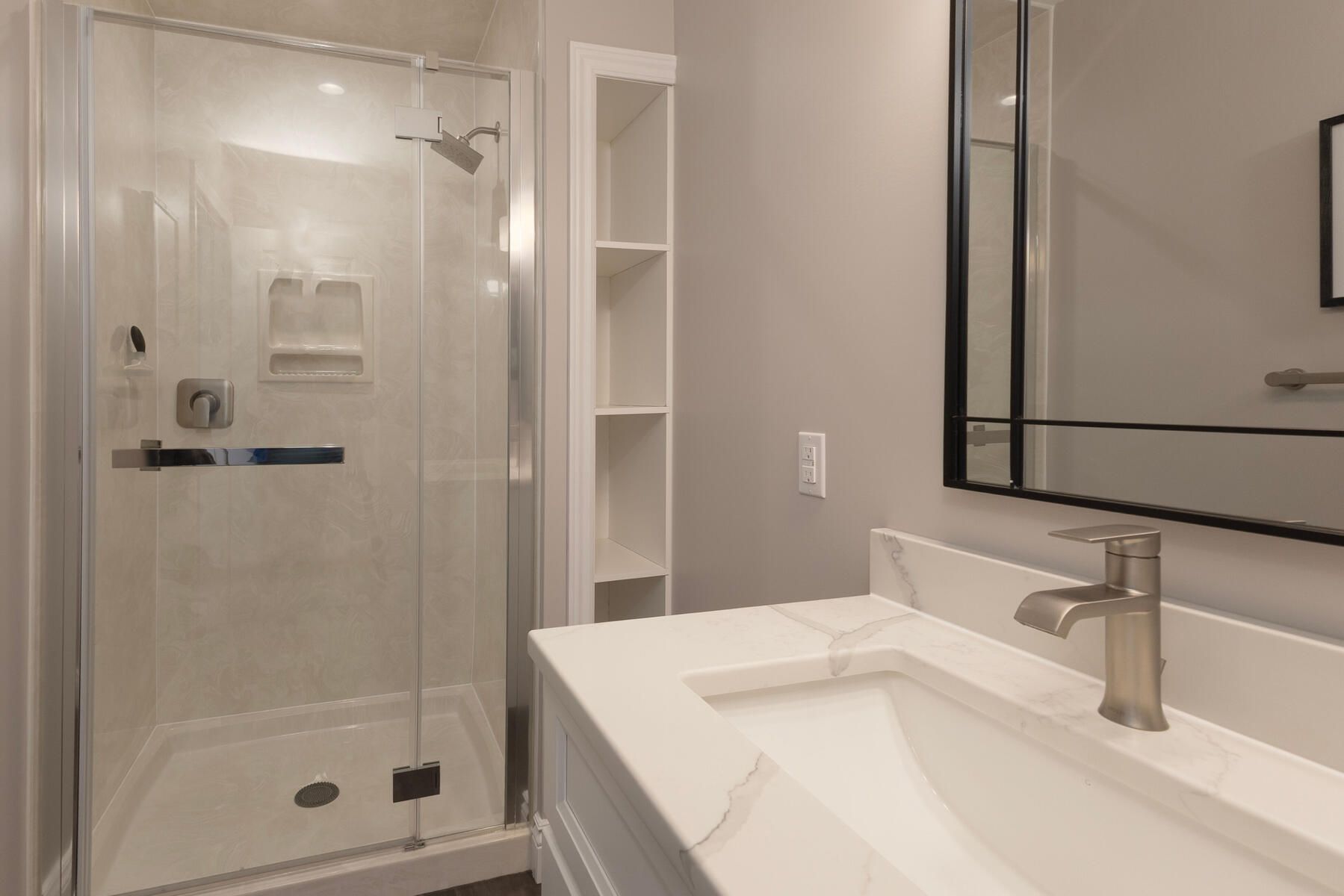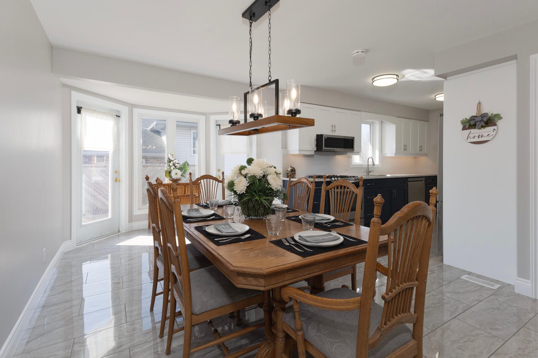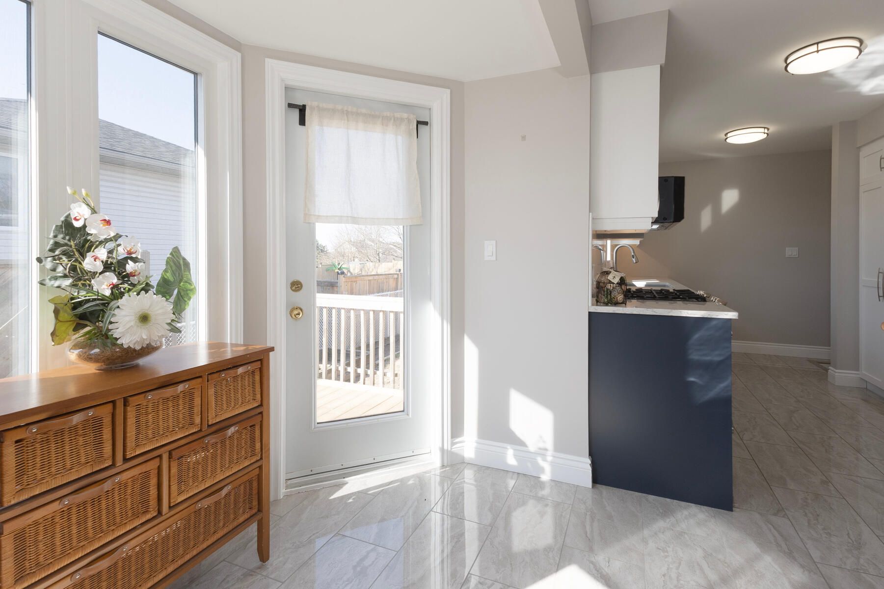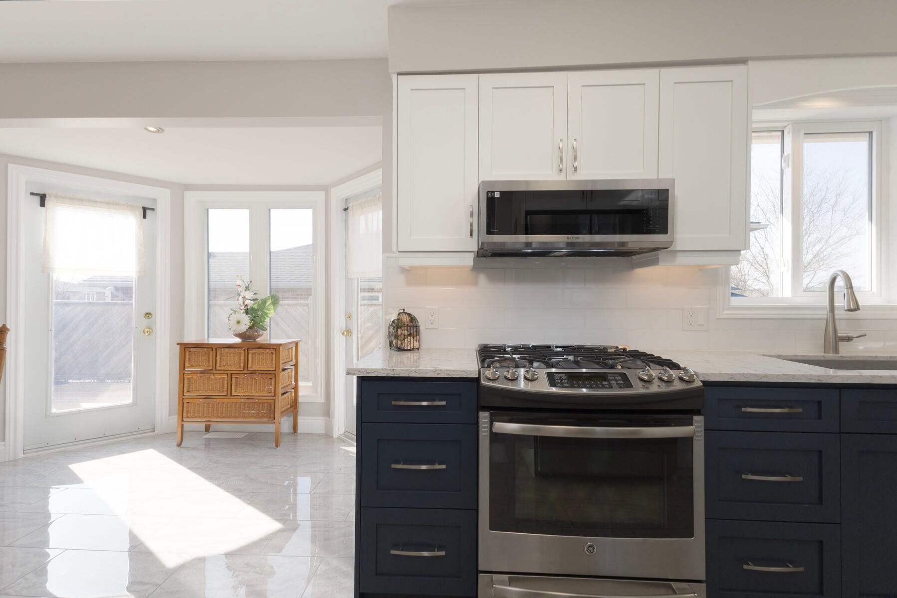 • Modern kitchen features new cabinetry, quartz countertops, and included appliances.