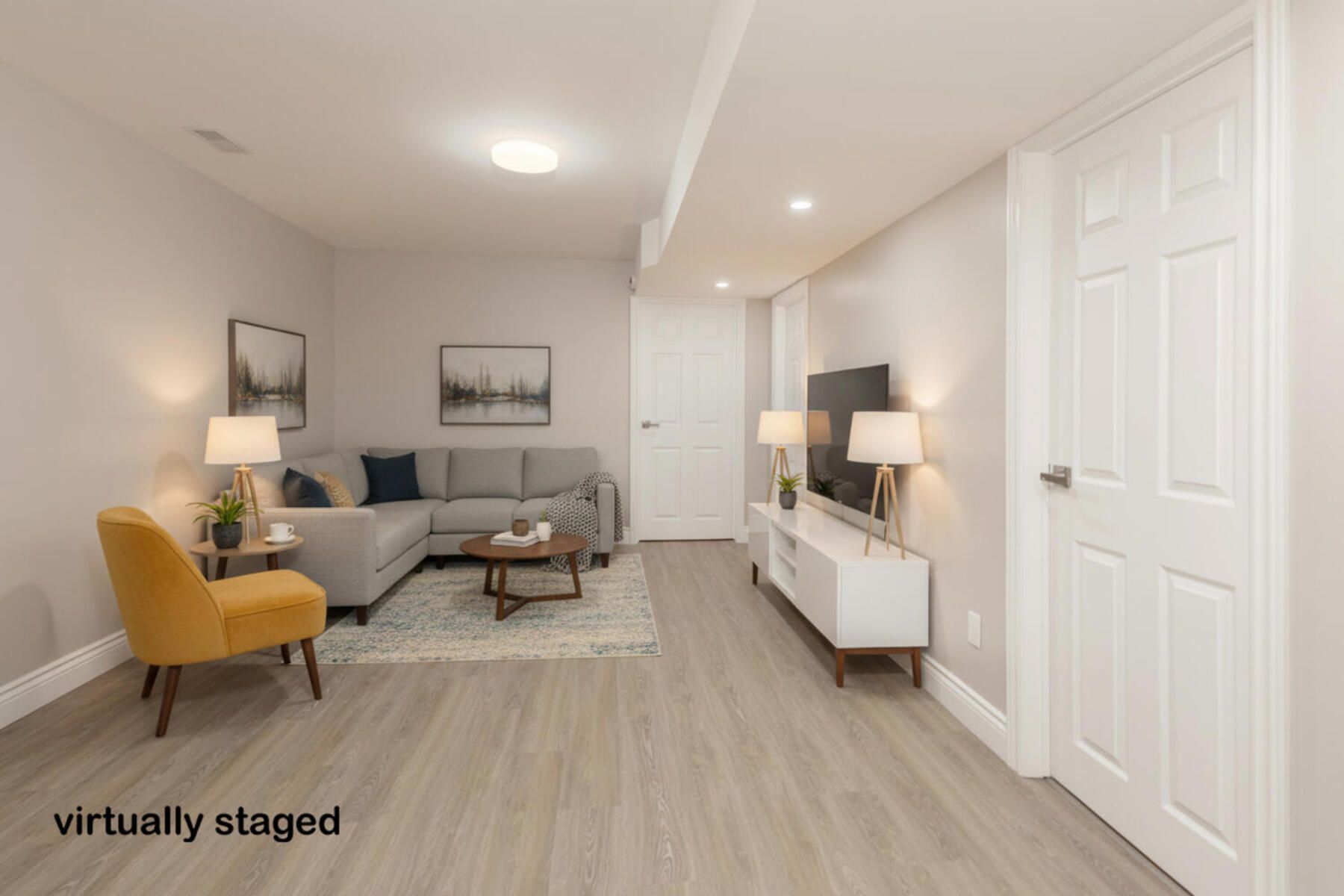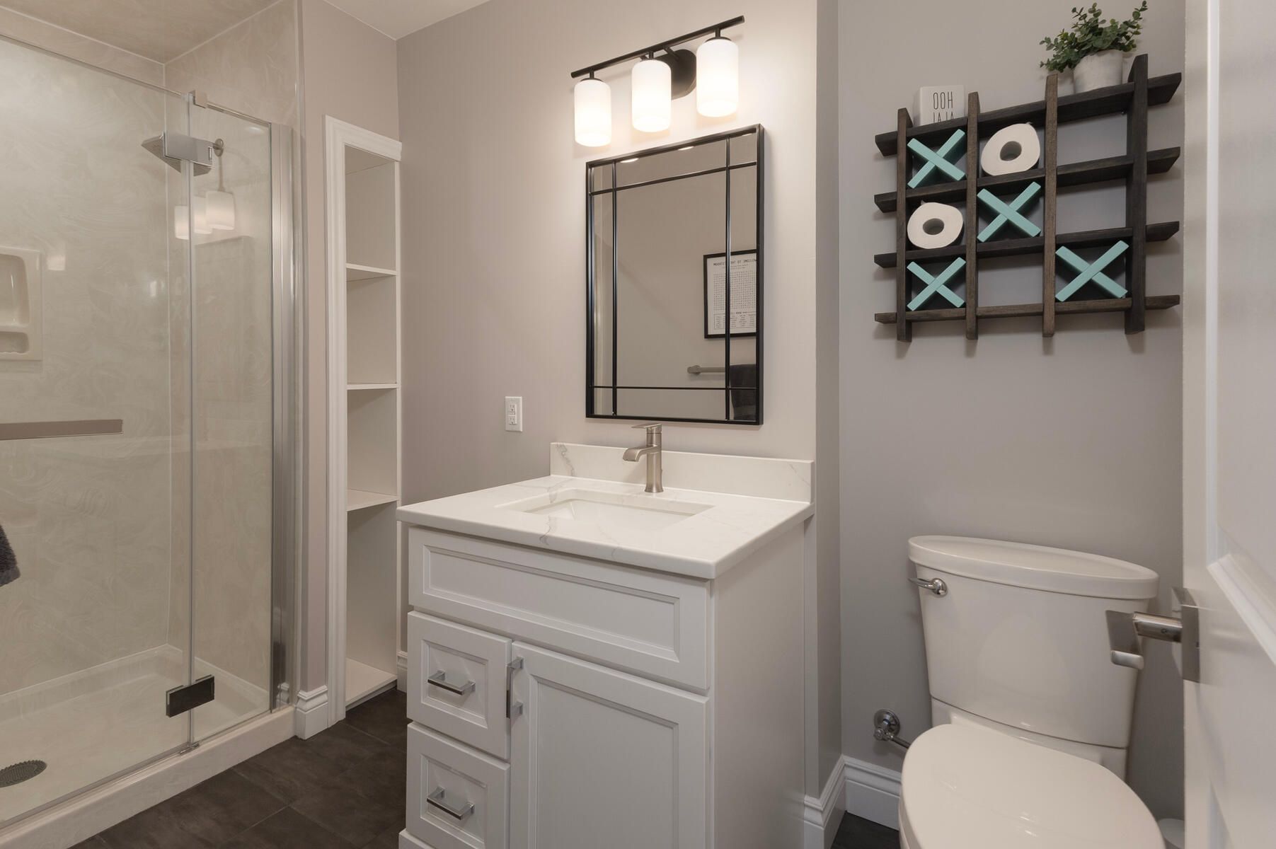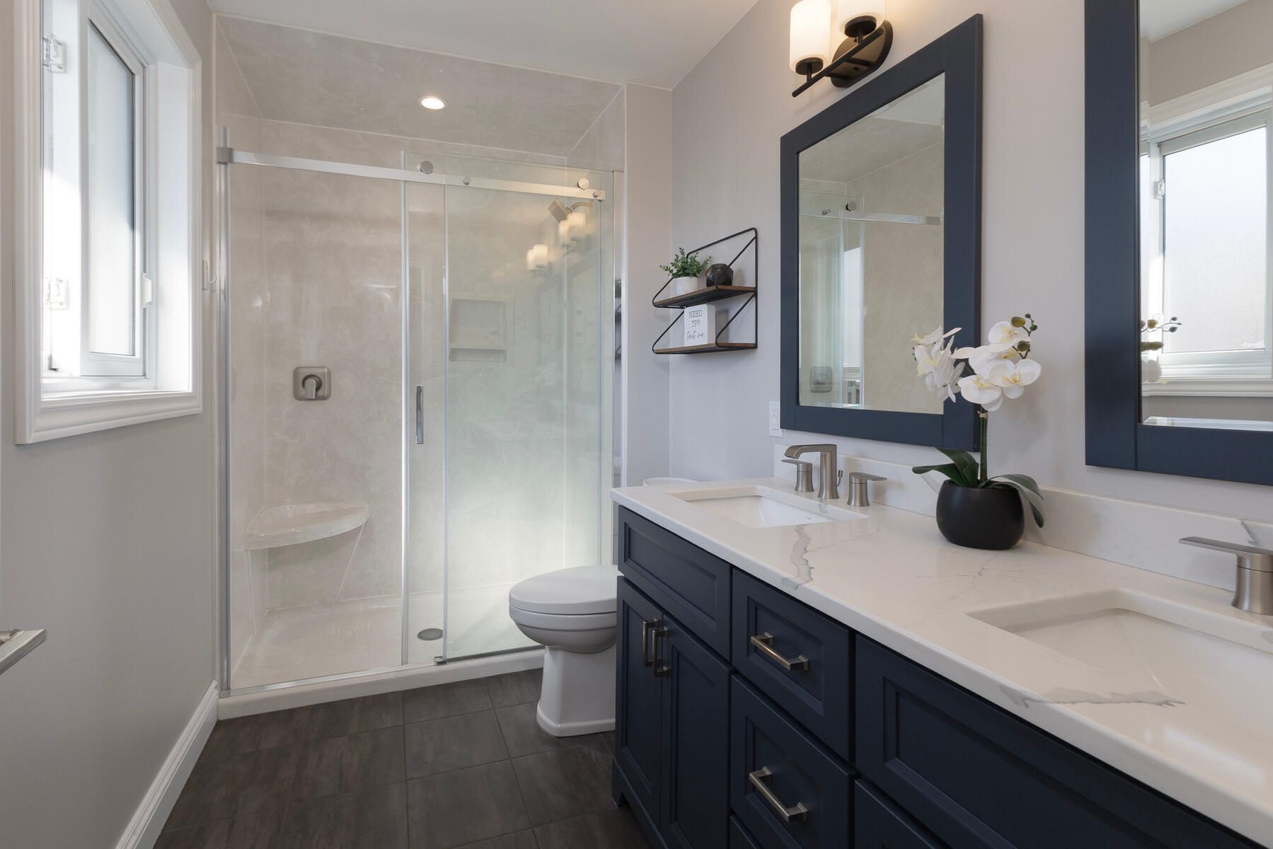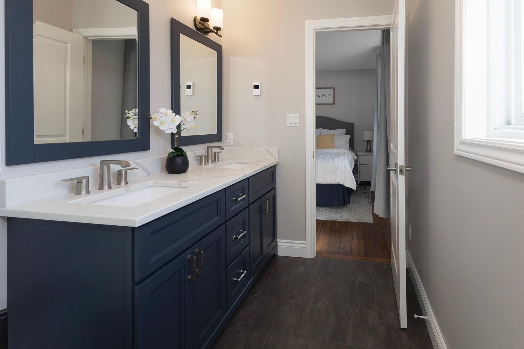 • Modern kitchen features new cabinetry, quartz countertops, and included appliances.