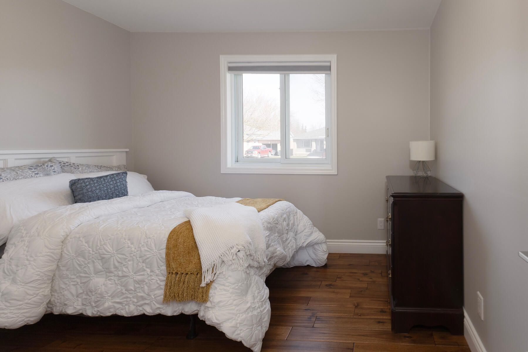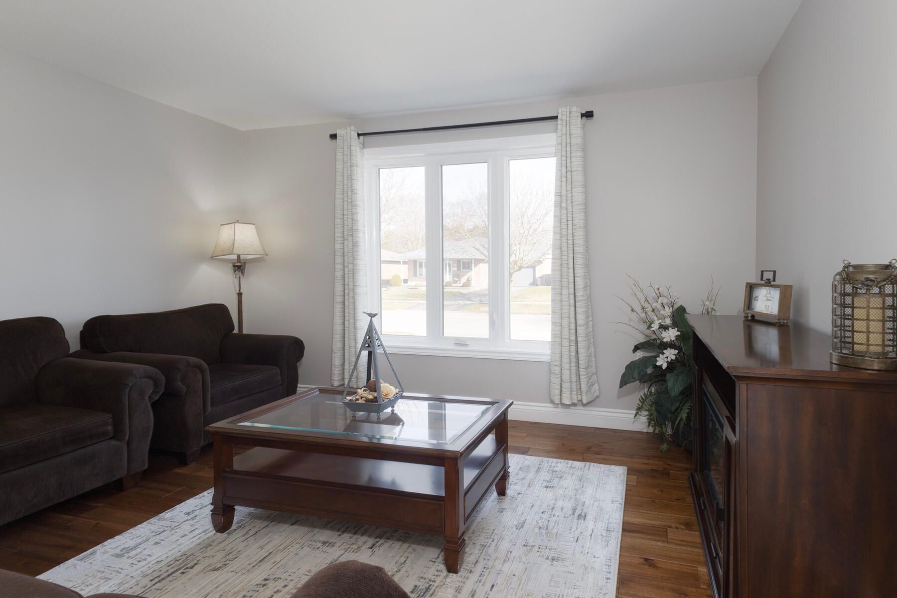 Move right into this beautifully renovated, carpet-free home that sits on a spacious corner lot, offering over 2,100 sq ft of total living space and exceptional versatility for today's lifestyle. The main level has been thoughtfully updated, featuring a modern kitchen with new cabinetry, quartz countertops, porcelain tile flooring, and included appliances. The adjoining dining area showcases matching tile flooring and a new window, while the bright living room offers updated wood flooring and plenty of natural light. The primary bedroom includes a generous closet and a stylish 3-piece ensuite with in-floor heating, quartz counters, and a coni marble shower. Two additional bedrooms, both with updated wood flooring, and a fully updated 3-piece bathroom, also with coni marble shower, with similar high-end finishes, complete the main floor. All interior doors have been replaced for a fresh, cohesive feel. The fully finished lower level provides excellent additional living space, including a large family room with new flooring, two versatile bonus rooms, and a brand new 4-piece bathroom. The laundry room includes a washer and dryer (2022), and the utility area features a workbench. This level offers great potential for an in-law suite or multi-generational living. Major updates include a new furnace (2022), owned water softener (2022), owned hot water tank, water filtration system, and a sump pump with flow control alarm. The roof was replaced in 2025, and central vacuum is also included. Outside, enjoy a deck with new top boards and a large yard with plenty of room to relax or entertain. With inside entry from the garage and countless upgrades throughout, this move-in ready home offers incredible value and room to grow.