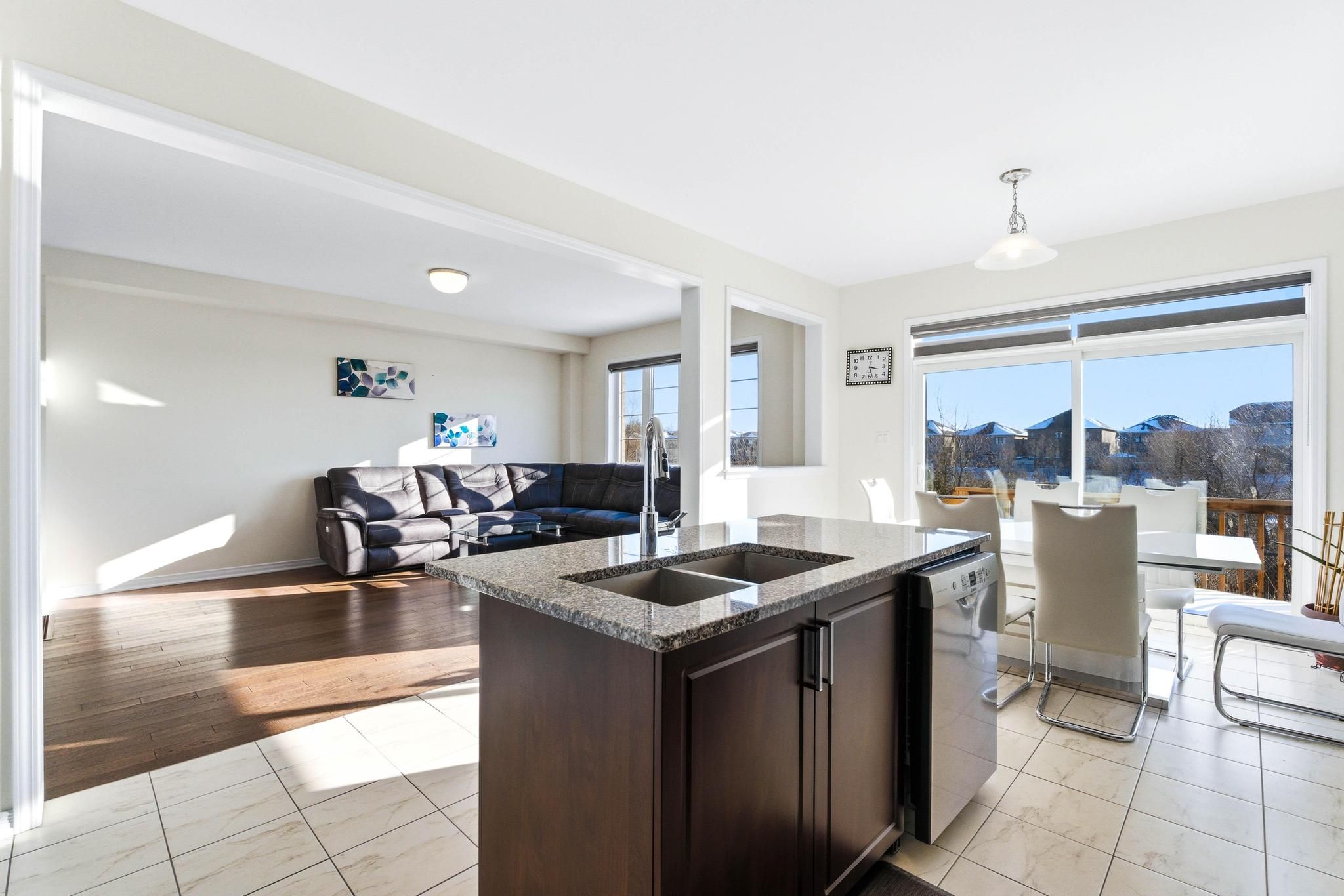 Welcome to this stunning detached 4 bedroom home in stoney creek mountain, located in one of the area's newest and most desirable communities. This very well maintained home offers over 2,600 sq ft of living space plus a lookout basement with a highly functional layout, ideal for families or investors. The main floor features 9 ft ceilings and a bright open-concept floor plan connecting the living room, family room, and modern kitchen. The kitchen includes ample cabinetry and opens to a walk-out deck from the kitchen, perfect for entertaining or everyday use. Enjoy ravine and pond views with exceptional privacy, as there are no houses in the front or back. Large windows throughout the home bring in plenty of natural light and showcase the peaceful surroundings. Upstairs offers two master bedrooms, each with its own ensuite bathroom and walk-in closet, along with additional spacious bedrooms. Located minutes from the mud street corridor, this home is close to shopping, restaurants, schools, parks, trails, and everyday amenities. Easy access to major highways makes commuting to hamilton, niagara, and the gta convenient. This property is ideal for buyers searching for a stoney creek mountain detached home, ravine lot home, or family home with privacy, deck, and walk-out basement. A rare opportunity combining space, location, nature views, and modern comfort.