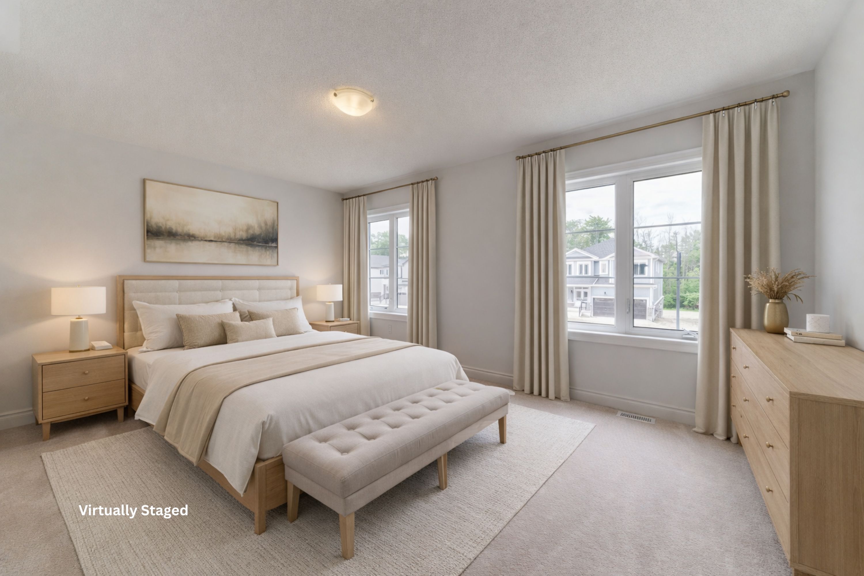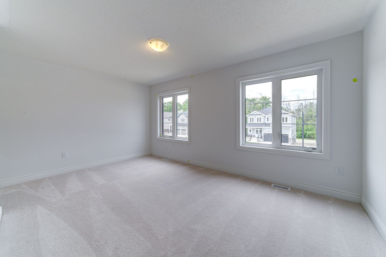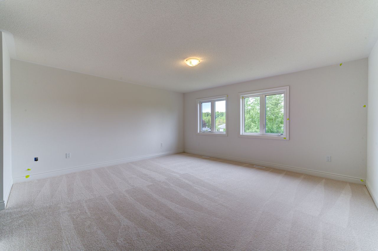Nearly 3,000 sq. Ft. Of thoughtfully designed living space, a rare triple-car garage, and a deep 63' x 160' lot backing onto a tranquil, tree-lined greenspace buffer. Welcome to this brand new, never lived in 4-bedroom, 4-bath all brick and stone home in the villas of upper wasaga by baycliffe communities, set within the highly sought-after wasaga sands neighbourhood. Located on a no-sidewalk street, this redwood model (elevation a) delivers exceptional scale, privacy, and long-term value-perfectly suited to refined, year-round cottage-country living. Inside, the home features a bright, open-concept layout with upgraded 9' ceilings on the main floor, a crisp white kitchen with a 6-ft quartz island, and elegant wrought iron railings. Soaring two-storey ceilings and oversized windows flood the main living area with natural light, while an open second-floor loft overlooking the space below offers flexible space for a home office or secondary living area. Additional highlights include main-floor laundry and direct interior access to the triple car garage, offering outstanding flexibility with ample space for vehicles, storage, and recreational gear. Upstairs, the four-bedroom layout stands apart, with each bedroom offering its own ensuite or semi-ensuite, delivering excellent comfort and privacy. The primary bedroom offers two generous walk-in closets and a well-appointed 5-piece ensuite. The deep backyard, framed by trees and open greenspace, offers peaceful views and endless potential for outdoor living, entertaining, or future landscaping. Set within a quiet, nature-surrounded neighbourhood, this home offers the confidence of modern construction, efficient systems, and a full tarion warranty. Just a short drive to collingwood and blue mountain. Be the first to live in this move-in ready home.