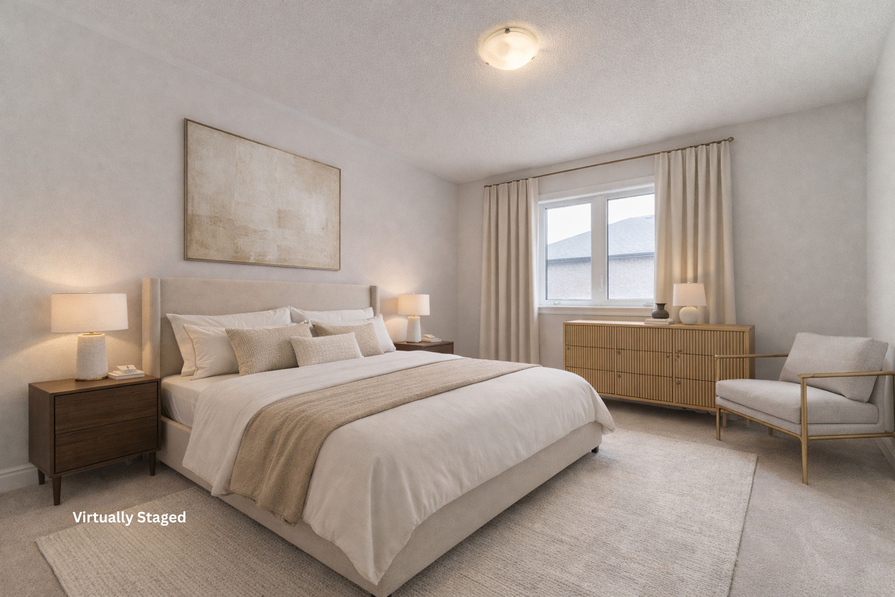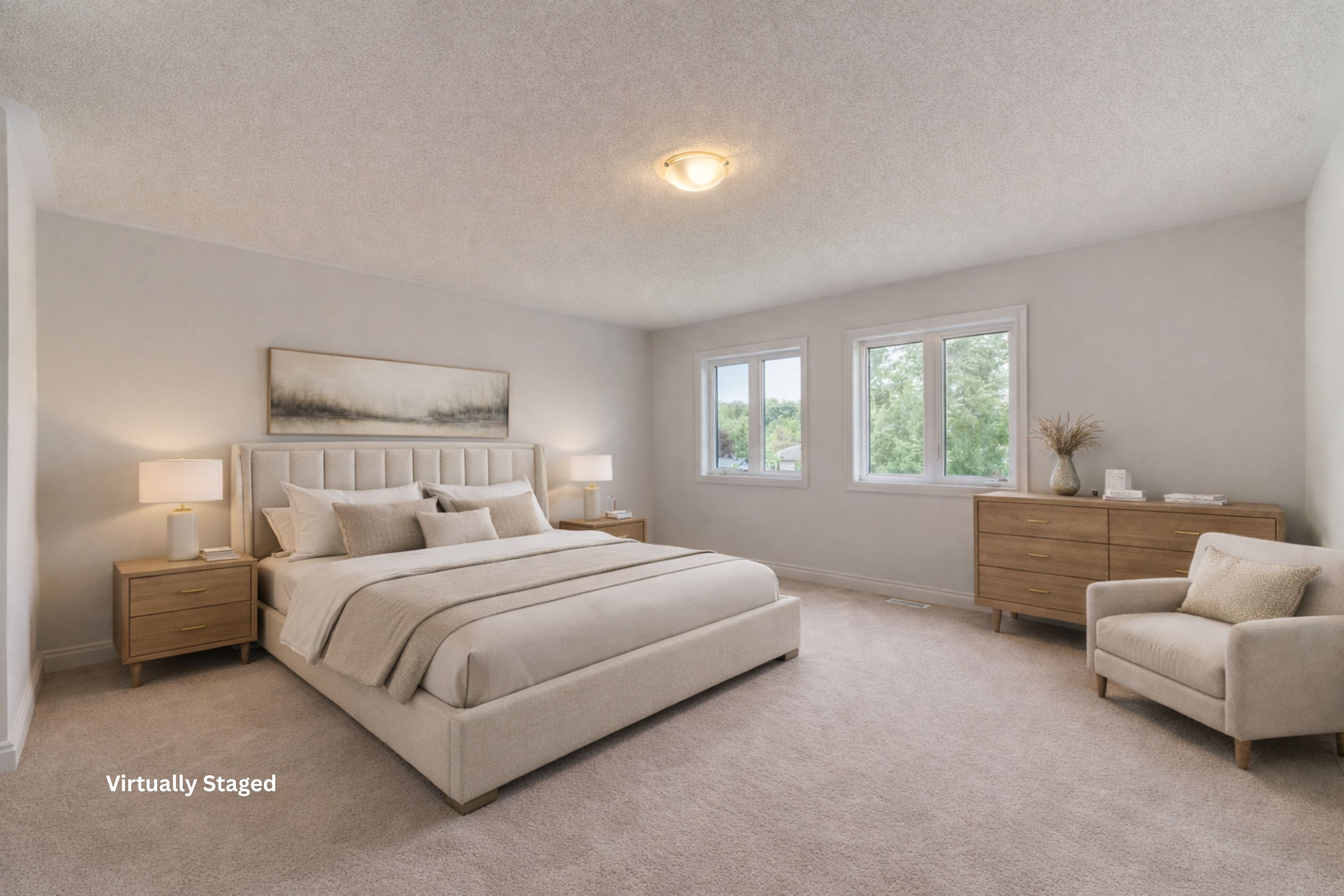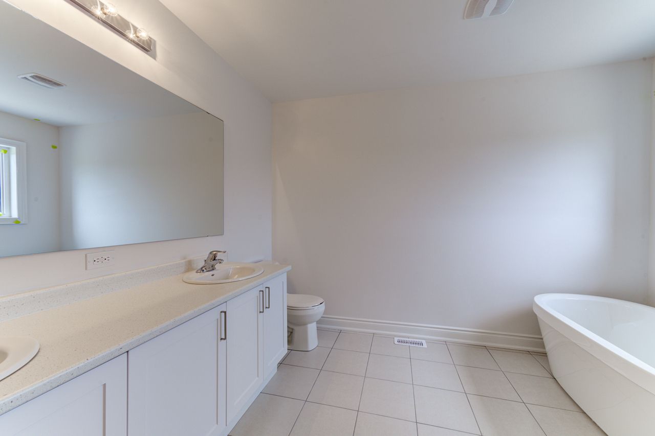 Nearly 3,000 sq. Ft. Of thoughtfully designed living space, a rare triple-car garage, and a deep 63' x 160' lot backing onto a tranquil, tree-lined greenspace buffer. Welcome to this brand new, never lived in 4-bedroom, 4-bath all brick and stone home in the villas of upper wasaga by baycliffe communities, set within the highly sought-after wasaga sands neighbourhood. Located on a no-sidewalk street, this redwood model (elevation a) delivers exceptional scale, privacy, and long-term value-perfectly suited to refined, year-round cottage-country living. Inside, the home features a bright, open-concept layout with upgraded 9' ceilings on the main floor, a crisp white kitchen with a 6-ft quartz island, and elegant wrought iron railings. Soaring two-storey ceilings and oversized windows flood the main living area with natural light, while an open second-floor loft overlooking the space below offers flexible space for a home office or secondary living area. Additional highlights include main-floor laundry and direct interior access to the triple car garage, offering outstanding flexibility with ample space for vehicles, storage, and recreational gear. Upstairs, the four-bedroom layout stands apart, with each bedroom offering its own ensuite or semi-ensuite, delivering excellent comfort and privacy. The primary bedroom offers two generous walk-in closets and a well-appointed 5-piece ensuite. The deep backyard, framed by trees and open greenspace, offers peaceful views and endless potential for outdoor living, entertaining, or future landscaping. Set within a quiet, nature-surrounded neighbourhood, this home offers the confidence of modern construction, efficient systems, and a full tarion warranty. Just a short drive to collingwood and blue mountain. Be the first to live in this move-in ready home.