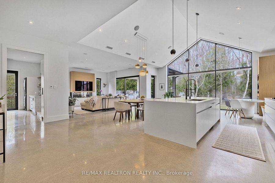 Welcome to an extraordinary property where modern living meets the natural beauty of its surroundings. This recently constructed bungalow sits on nearly 0. 7 acres, offering a perfect blend of eco-friendly construction, sophisticated design and spacious outdoor areas. Built with insulated concrete forms (icf), the home is energy-efficient, soundproof and highly durable. Inside, polished concrete floors provide a sleek, low-maintenance aesthetic that complements the home's custom design. Hydronic (water-based) radiant floor heating throughout nearly every room, including the garage, ensures year-round comfort and reduced energy costs. Smart home living is enhanced by a state-of-the-art home technology system controlling lighting, climate and motorized shades in select areas of the home. A built-in speaker system throughout the house enhances the atmosphere, providing high-quality sound in every room for an immersive experience. The open-concept kitchen is a chefs dream, complete with premium miele built-in appliances, modern cabinetry, a 5-burner gas cooktop, a walk-in pantry and a large central island ideal for both entertaining and everyday living. The primary bedroom offers a peaceful retreat with a spa-inspired ensuite and a generous walk-in closet. An additional flex space, which could be used as a private office, den, or 4th bedroom, provides a quiet area for work or relaxation. Large european tilt-and-turn windows flood the home with natural light and offer uninterrupted views of the surrounding landscape. Step outside to a custom outdoor kitchen, perfect for alfresco dining and enjoy landscaped grounds that create a tranquil oasis with mature trees and gardens. The expansive lot offers a convenient in-ground irrigation system and abundant parking, with space for multiple vehicles, boats, or rvs. This one-of-a-kind home perfectly balances modern luxury, technology and functionality. All exterior doors are european with a multi point, double turn locking system.