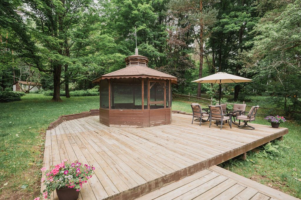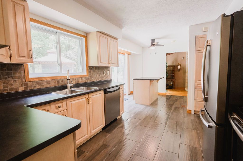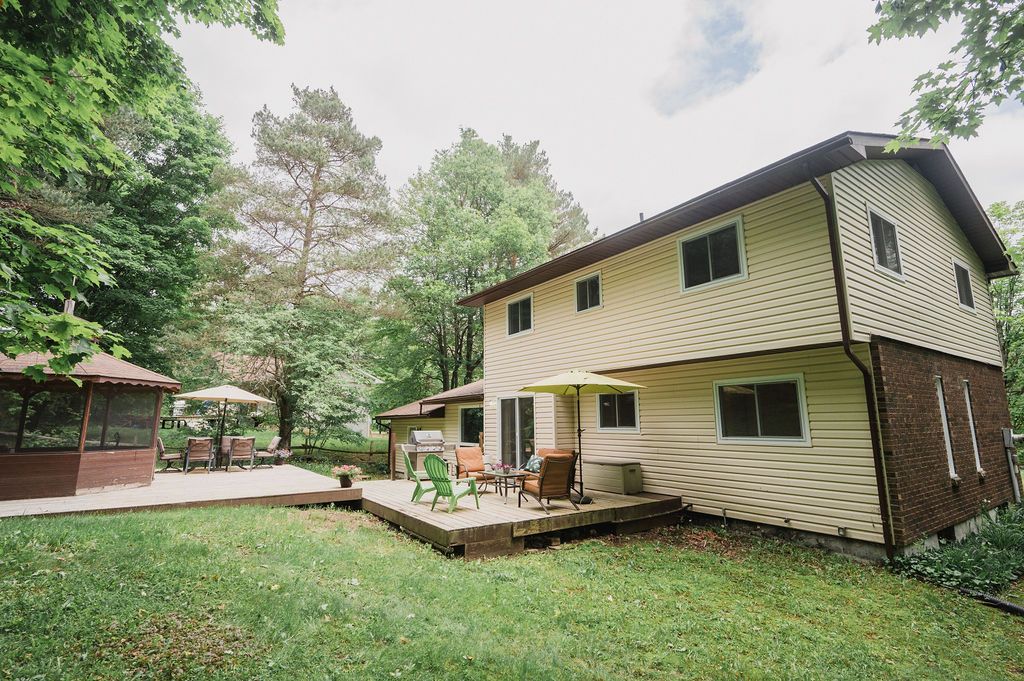Welcome home to this wonderfully appointed four bedroom, four bathroom home in the heart of the resort community of sundridge. This home features custom hardwood flooring on the main level with a bright, open concept layout. Recently upgraded kitchen features in floor heat, a breakfast island/nook, and walk out to a huge tiered deck and equally impressive and private rear yard with tons of room for kids and entertaining. There's ample room in the dining room and formal living room for everyone during the visits and the extra family/rec. Room on the main floor exudes a comforting warmth with its wood cathedral ceiling and natural gas fireplace. Main floor guest bath is a great feature as is the laundry room that leads to the large, attached garage with an extra entrance at the rear of the garage to the lower level utility room of the home - an attention to detail not seen in most homes. Walk upstairs to the primary bedroom with full ensuite and walk-in closet. Second floor also features an additional three bedrooms and another full bath - more than enough room. Lower level hosts a room which could be used as a theatre room or games room and two more additional rooms/bedrooms as well as a three piece bathroom and utility room for all your tools and any extra storage you may need. Well set back from the road, there are mature trees for privacy and a circular, paved driveway for easy entry/exit and to add extra vehicle space.