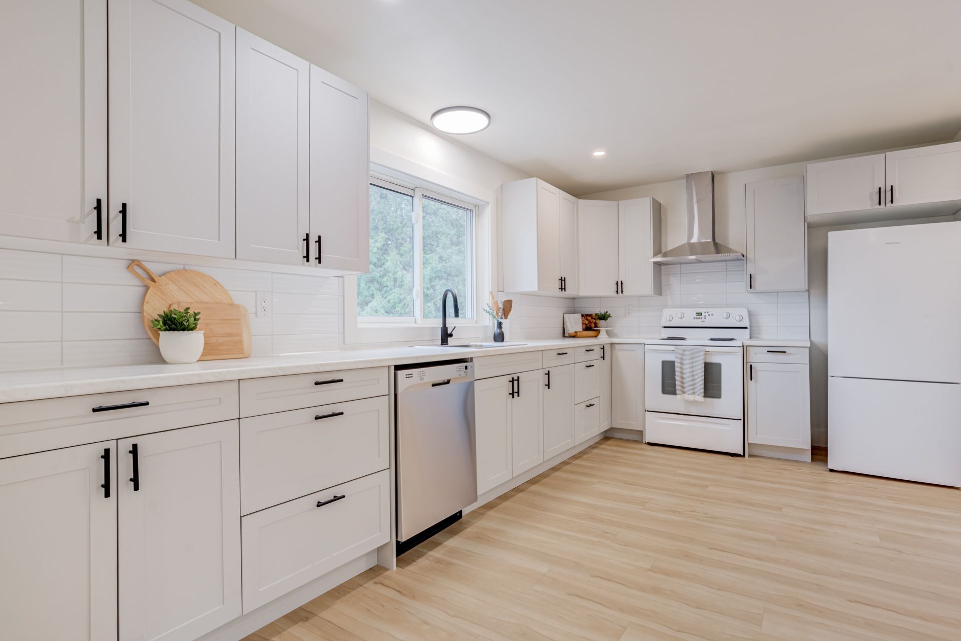 • Updated kitchen with new cabinetry, countertops, and appliances.
