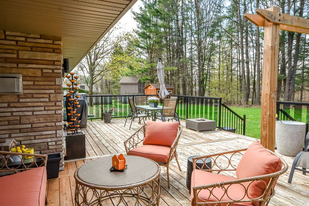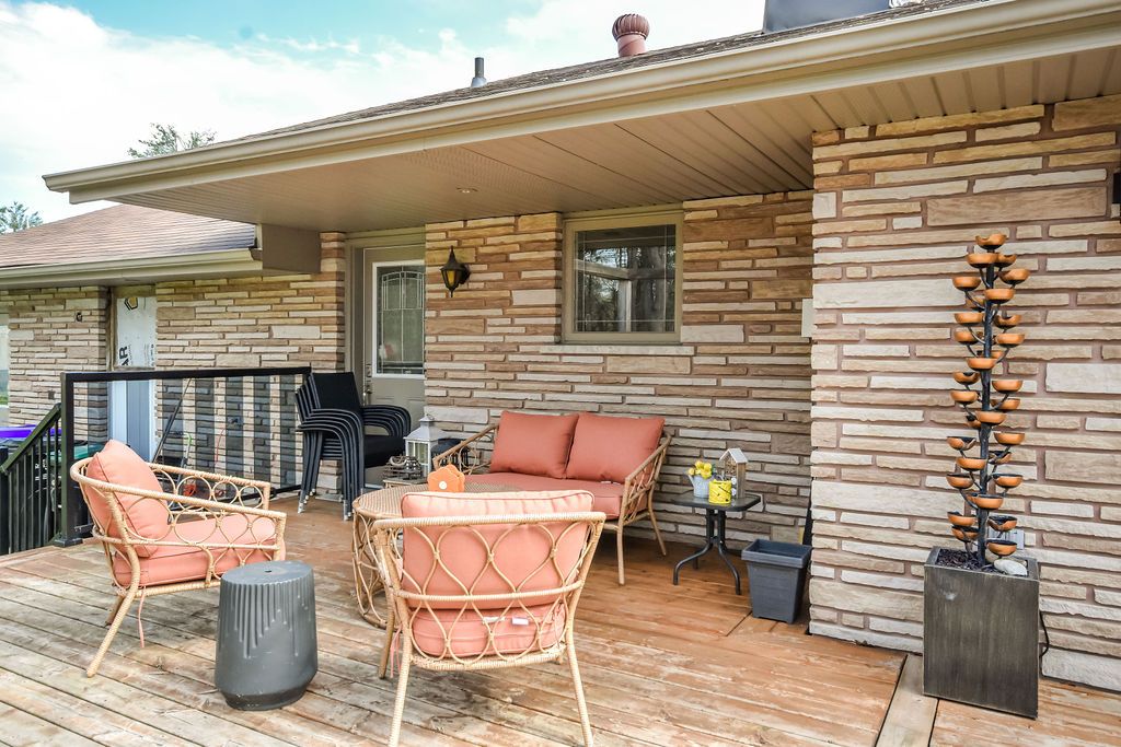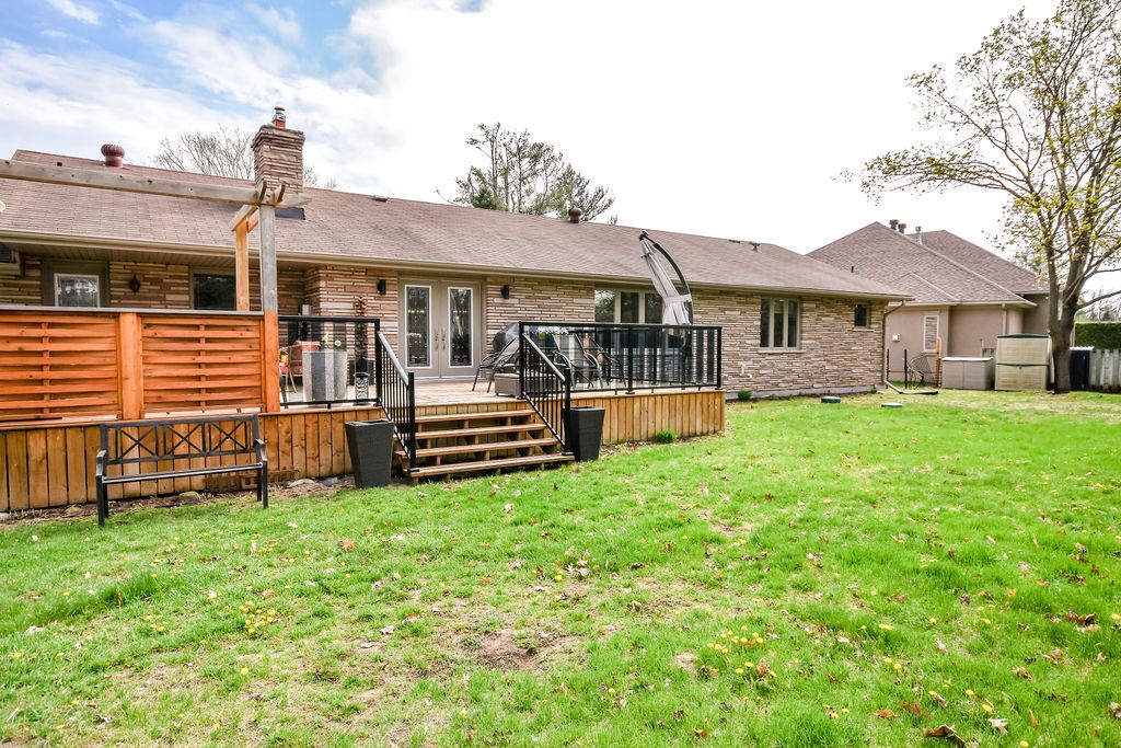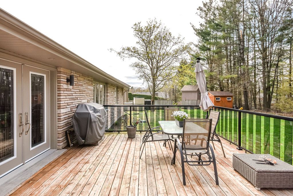 Welcome to this beautiful ranch bungalow. As you pull up to the home, you are greeted with a large covered front porch and beautifully landscaped front yard. The home is on an oversized 140 x 280 ft irregular lot. Once you step inside, you are walking into an elegant style home. Hardwood floors, zebra blinds, a cozy gas fireplace, and large spacious rooms throughout. The kitchen is every chefs dream. With an oversized island, granite countertops, high end appliances, and an abundance of pantry and cupboard space. As you walk through the home, you will come across a therapeutic sauna, perfect to use to unwind, with a 3 piece bathroom. A beautiful dining room perfect for hosting, and a large and spacious family room, perfect for family gatherings. The primary bedroom is generously large with a walk-in closet and beautifully updated ensuite bathroom. The additional bedroom offers a walk in closet and a lovely ensuite bathroom as well. In the basement, you have a spacious rec room, large bedroom with a spacious closet, and a stunning 4 piece bathroom with a luxurious soaking tub. The basement offers a walk-up to the garage, and a rough-in for a kitchen, perfect for those looking for multi-generational capabilities. In the rear yard, the home boasts a generous rear wood deck with two entries into the home. Numerous mature trees offer beautiful views as well as lots of privacy. A must see!