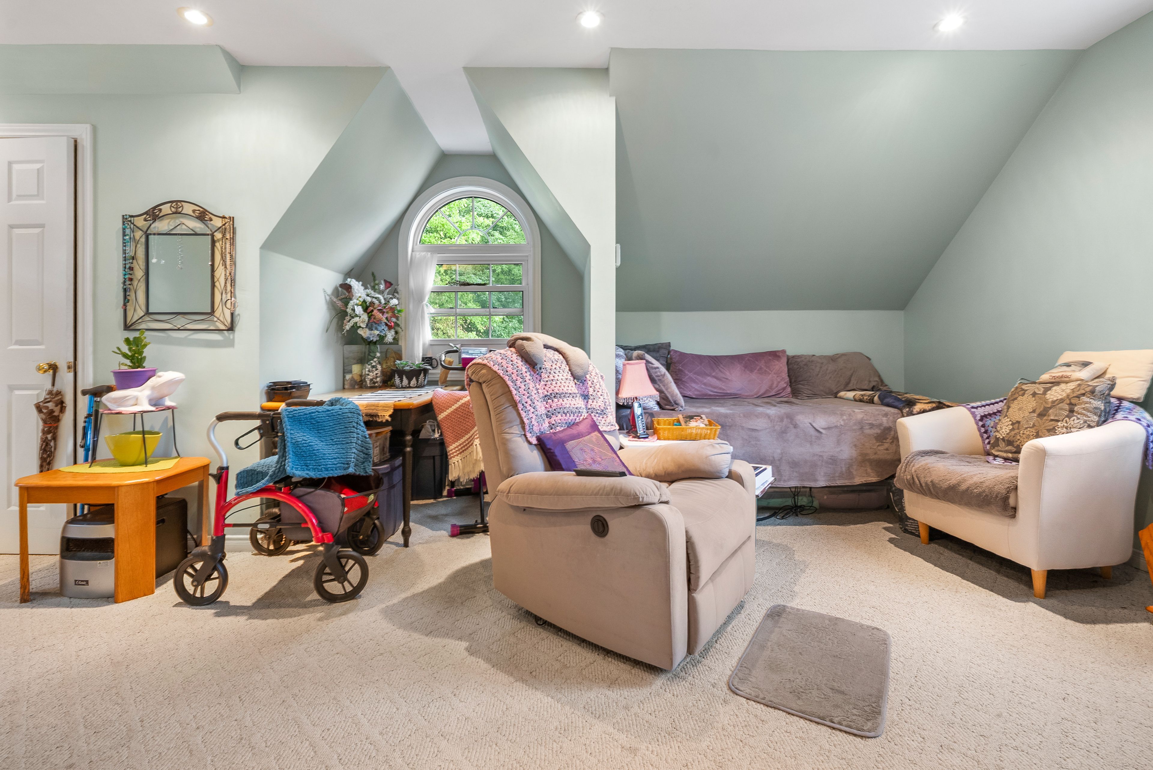 • In-law suite above garage with fireplace and separate entrance.