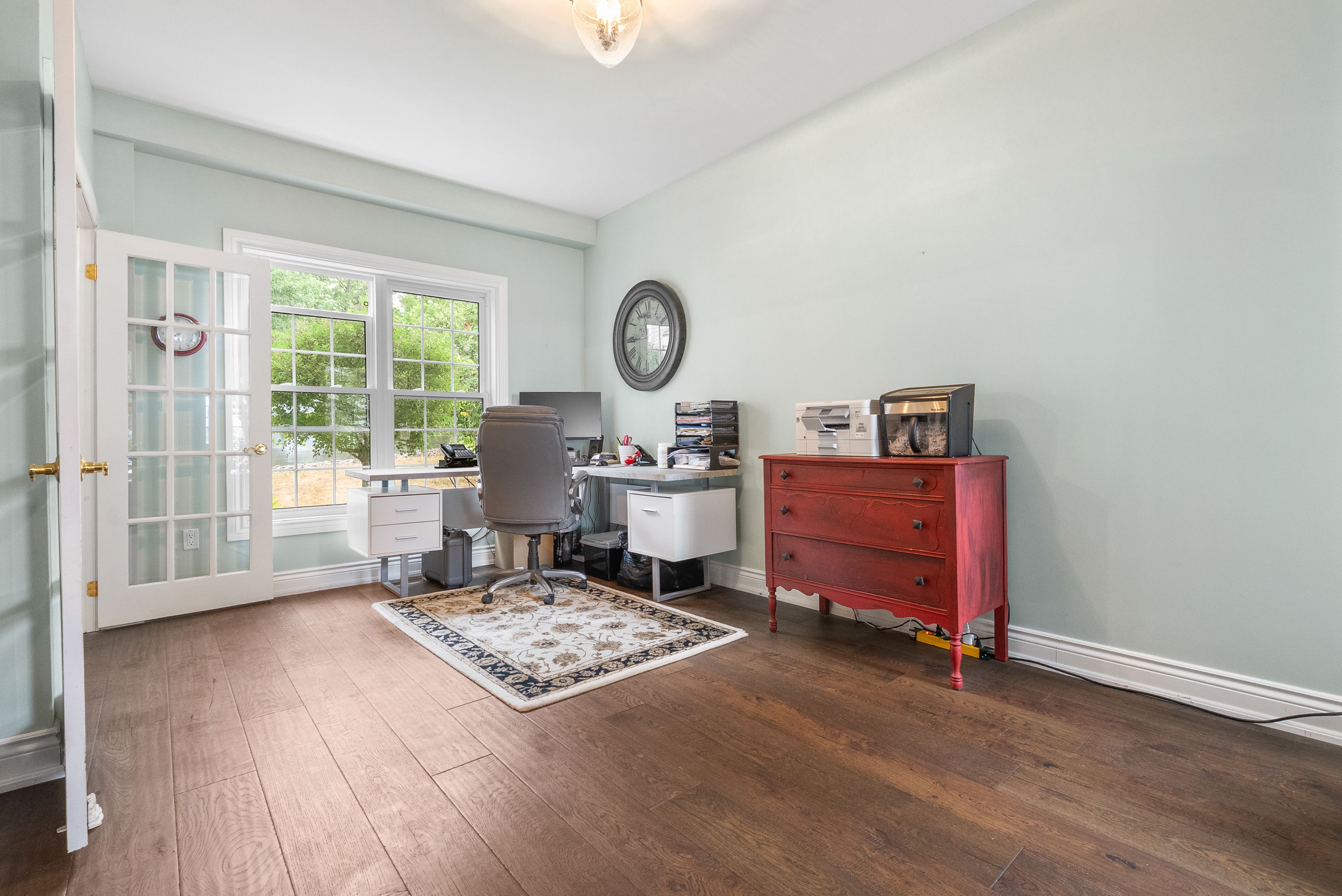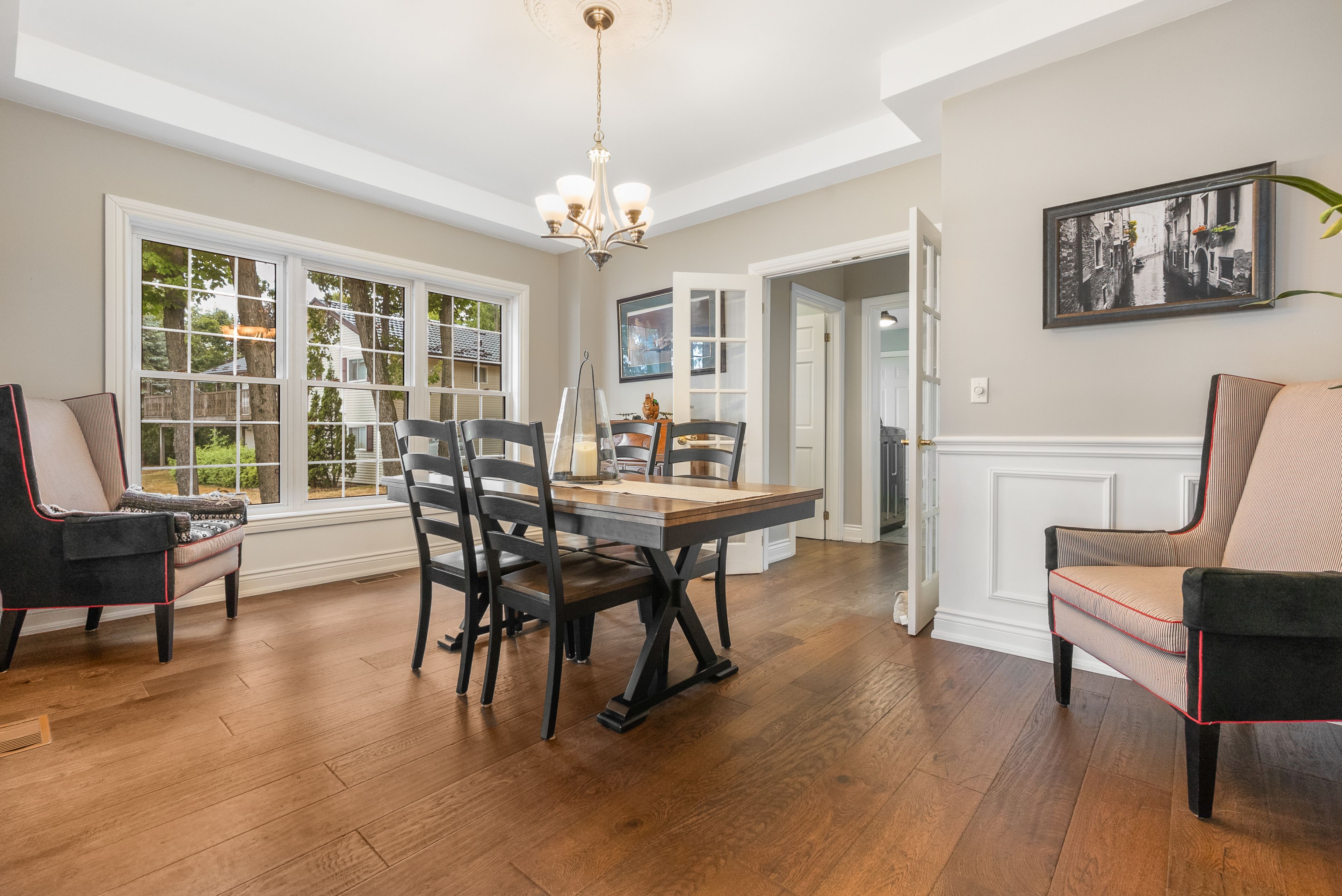 • Custom built home with high ceilings and lovely wood floors.