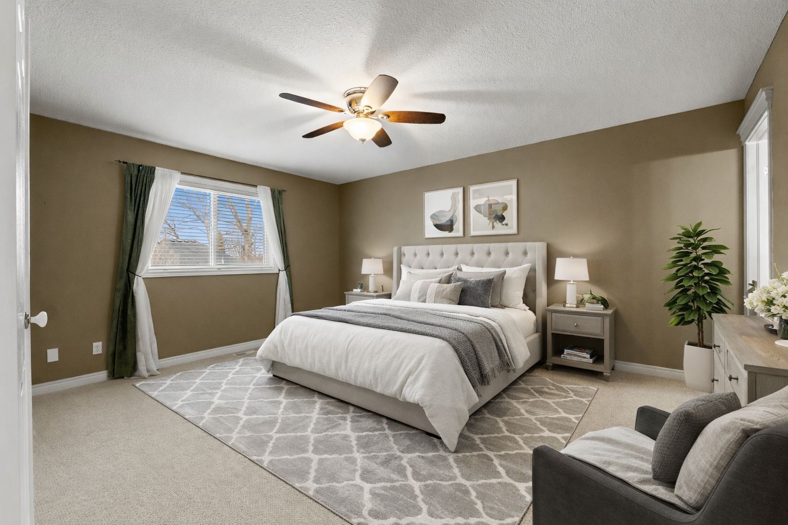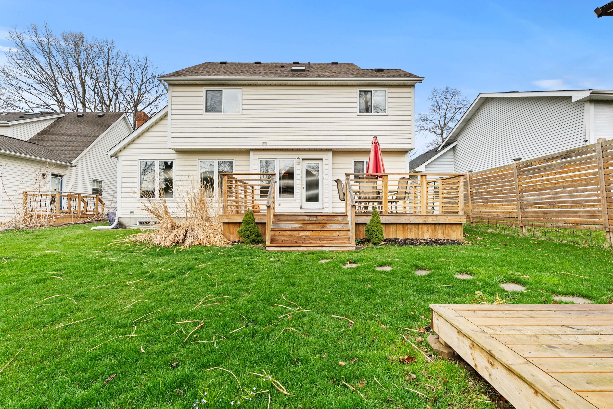 Located just a short walk from the lake, this well maintained home offers a functional layout with great living space throughout. The main floor features a spacious foyer with oak staircase, a dining room with 10 ft ceilings and natural wood flooring, and a bright kitchen with ample cabinetry, valance lighting, and a dinette with walkout to a raised wood deck. The primary bedroom includes a walk-in closet and a full ensuite with soaker tub and separate shower. Additional highlights include an attached 2-car garage, front porch. Other features include central air, high-efficiency gas furnace, tankless water heater and an extra-large laundry/mudroom for added convenience.