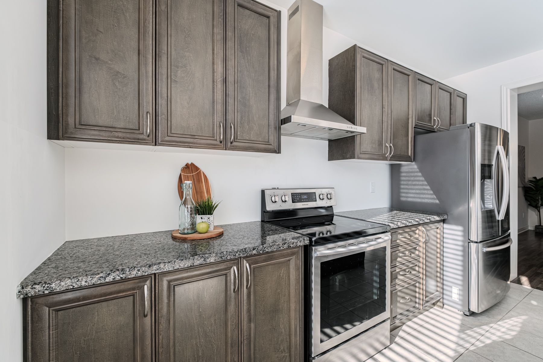 • Large kitchen featuring granite countertops and stainless steel appliances.