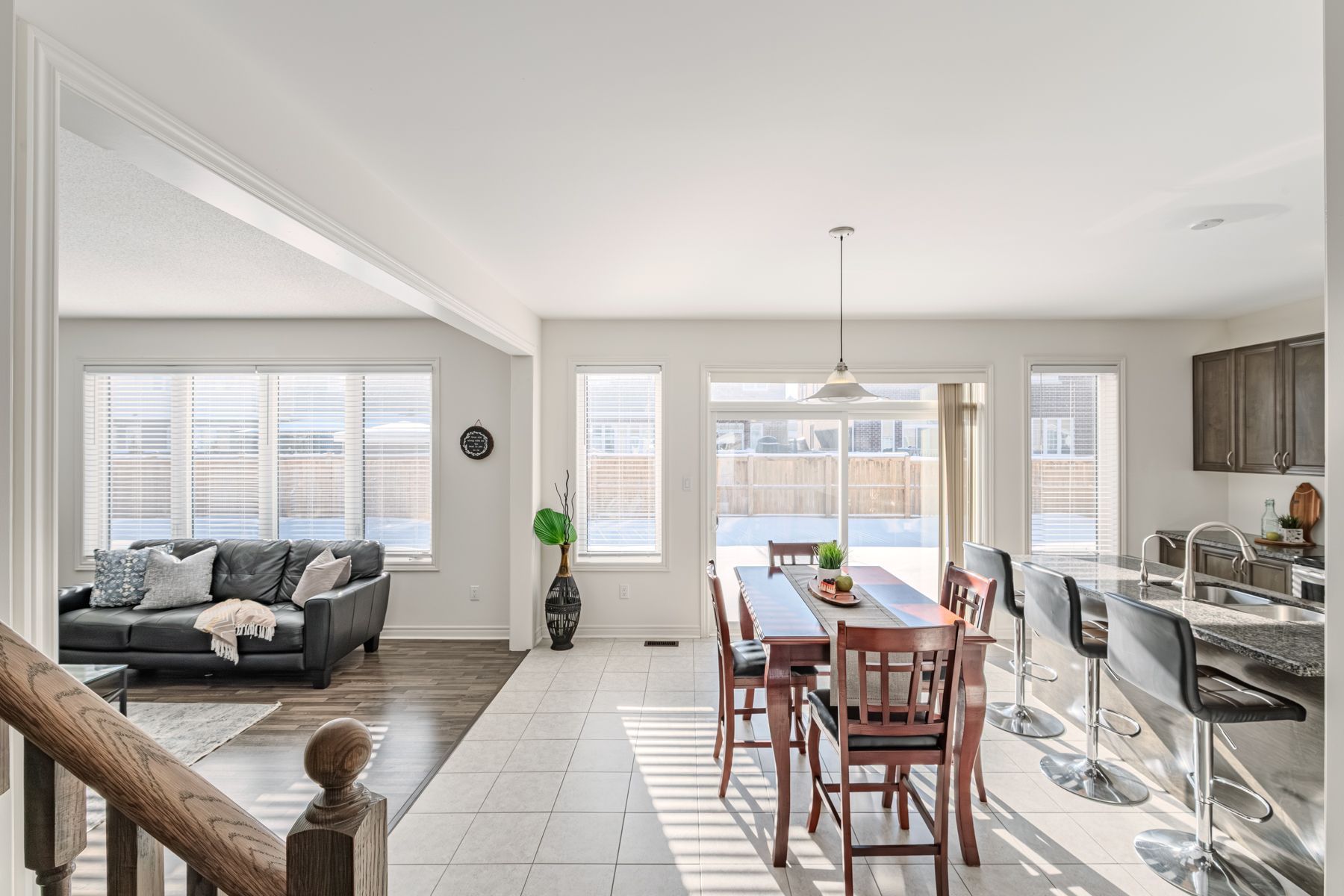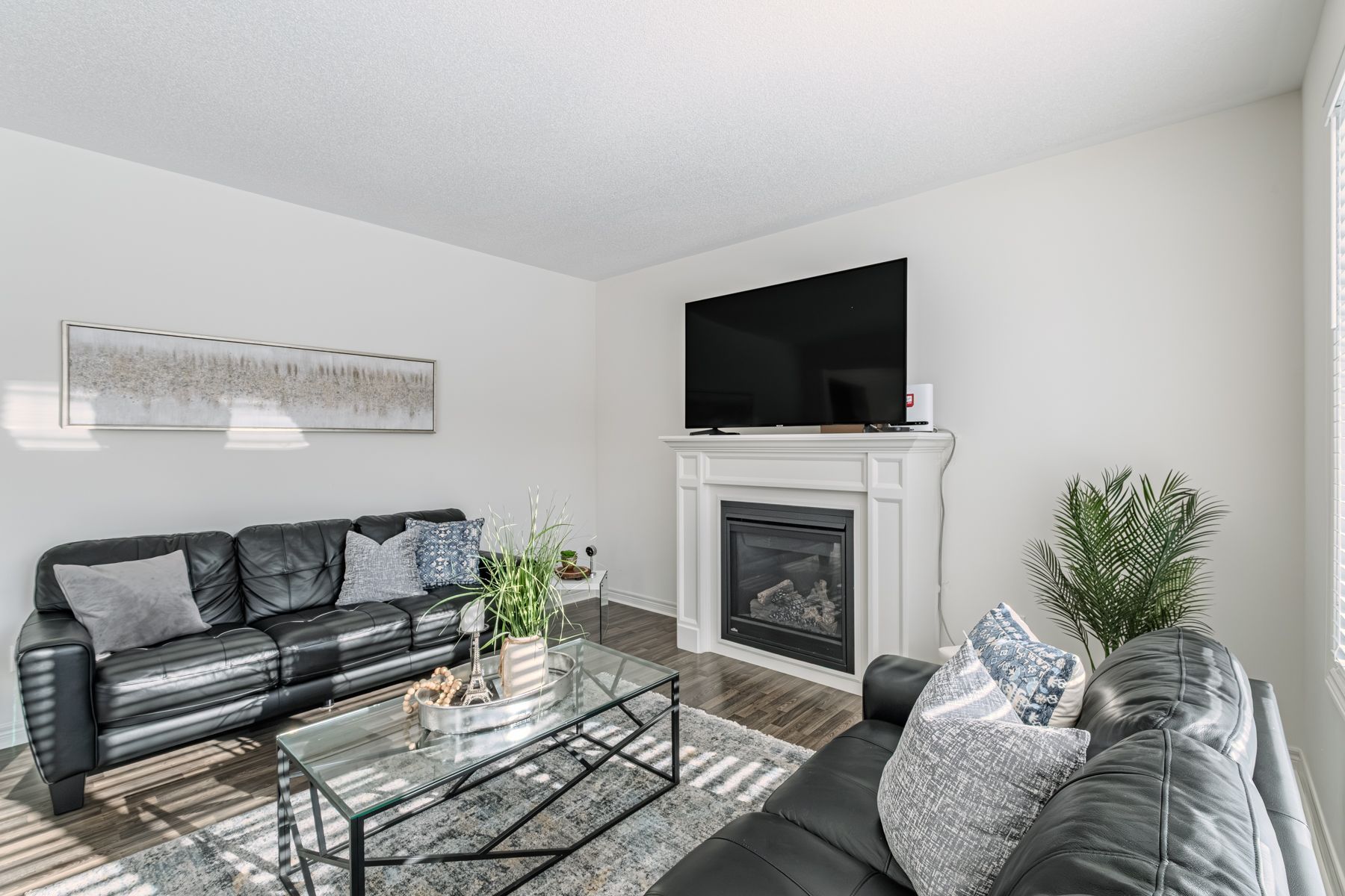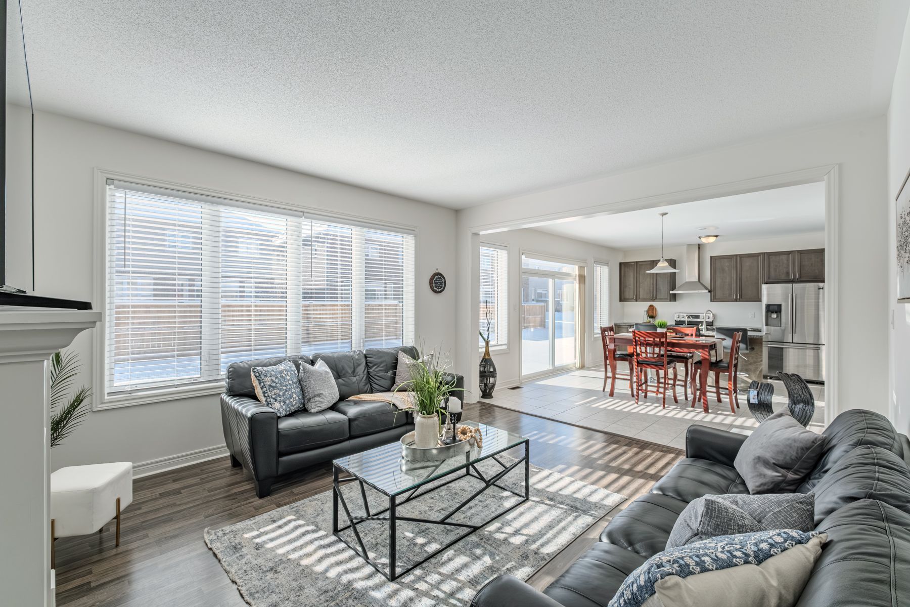 • Bright family room with lots of natural light and a gas fireplace.