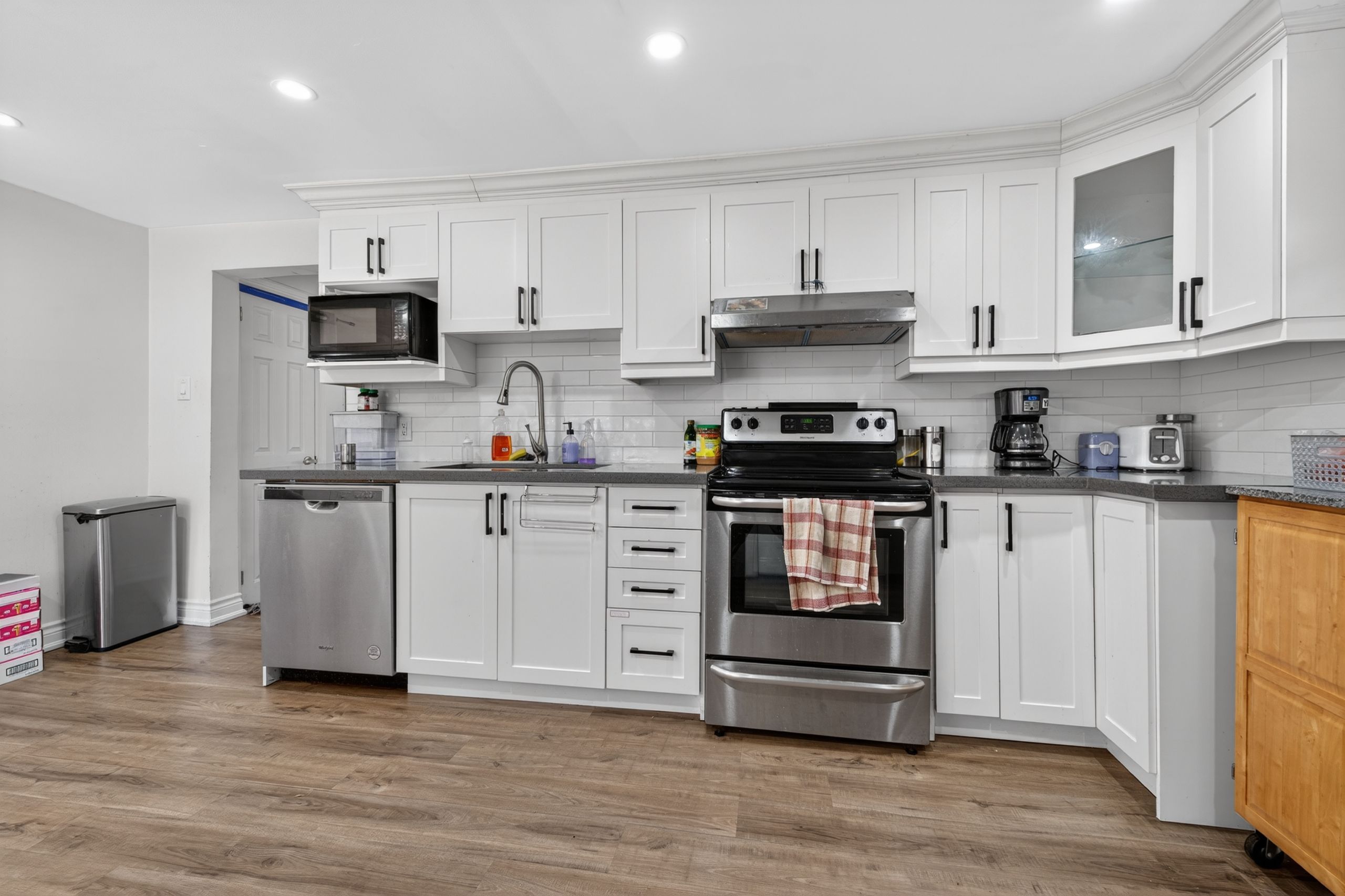 • Bright main level with eat-in kitchen and large living room window.