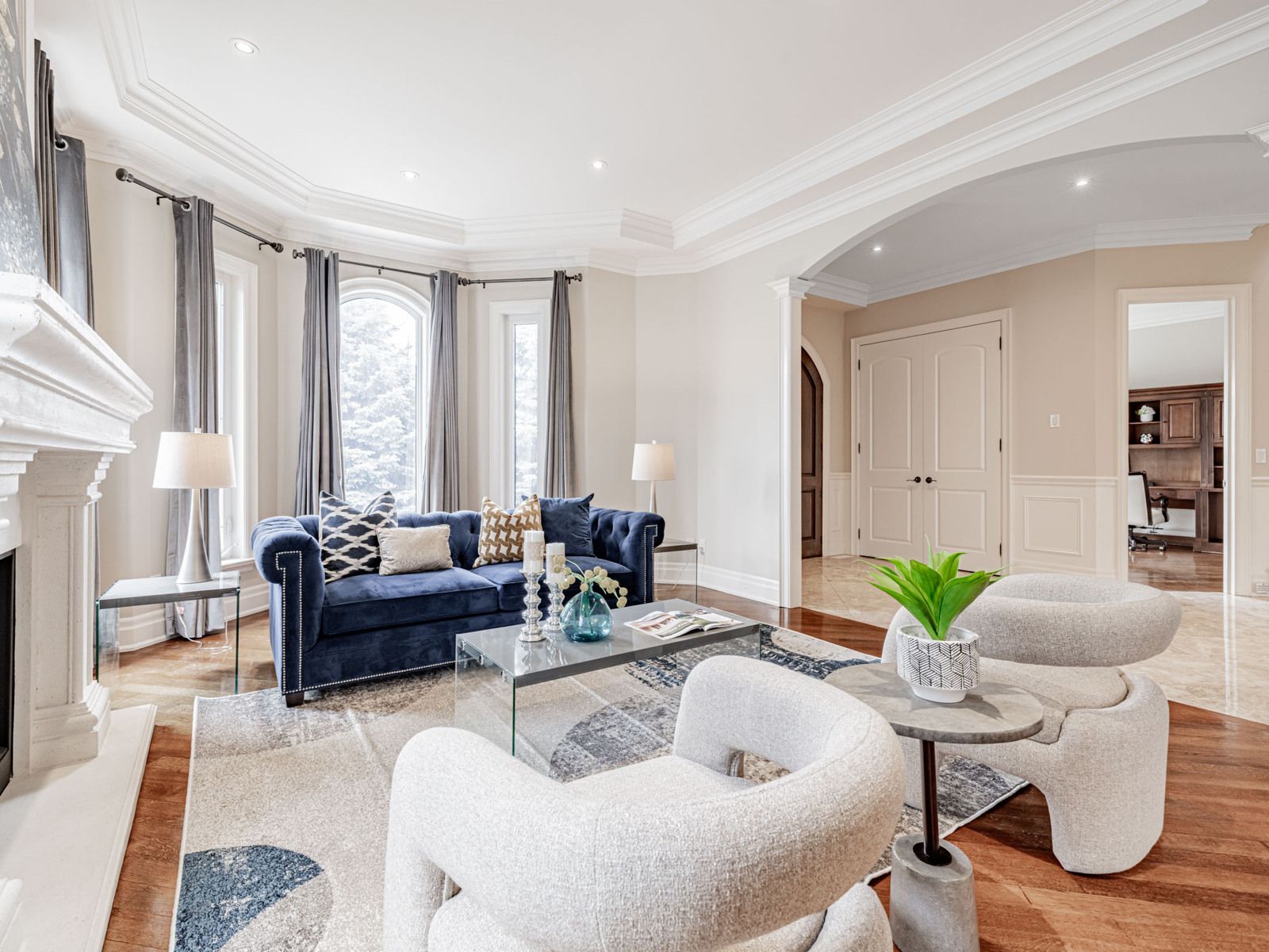 Welcome to an architectural masterpiece in a prestigious estate enclavediscover a one-of-a-kind residence on a premium, quiet crescent in one of the areas most coveted multi-million-dollar neighbourhoods. This custom-built estate offers over 7,000 sq. Ft. Of refined luxury, including a fully finished walkout lower level. Designed with grandeur in mind, the home features soaring 10 & 9 ceilings, a flowing open-concept layout, and impeccable craftsmanship at every turn. From intricate crown mouldings and coffered ceilings to oversized windows that bathe the interiors in natural light, this home exudes elegance and sophistication. The gourmet chefs kitchen showcases granite countertops, top-quality stainless steel appliances, and a seamless walk-out to a large entertainers deck. A private guest suite ensures comfort for extended family or visitors. Retreat to the lavish primary suite, complete with a spa-inspired 7-piece ensuite, double-sided fireplace, and boutique-style finishes. Rich hardwood and marble floors flow throughout, complemented by four dramatic gas fireplaces for warmth and style. Additional highlights include a heated 3-car garage with slate flooring, professional landscaping with interlocked stone, and luxury upgrades such as central air, central vacuum, and remote garage access. The expansive walkout basement mirrors the same high-end finishes, offering versatile living and entertaining space. This is a rare opportunity to own a distinguished estate combining timeless architecture, luxurious finishes, and exceptional value. A motivated seller makes this an opportunity not to be missed.